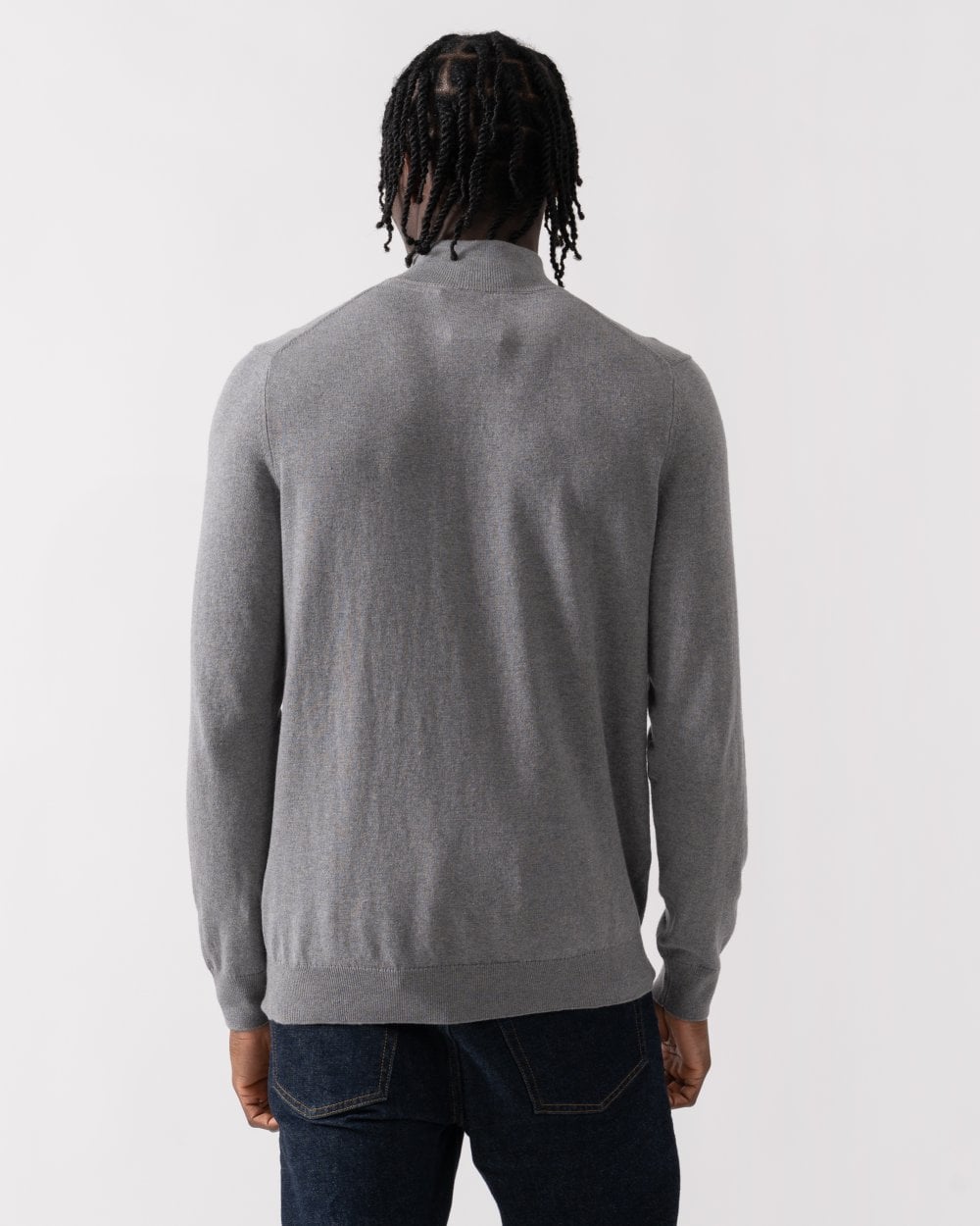 Cotton Merino Mens Quarter Zip Jumper - T28 Mid Grey Marl