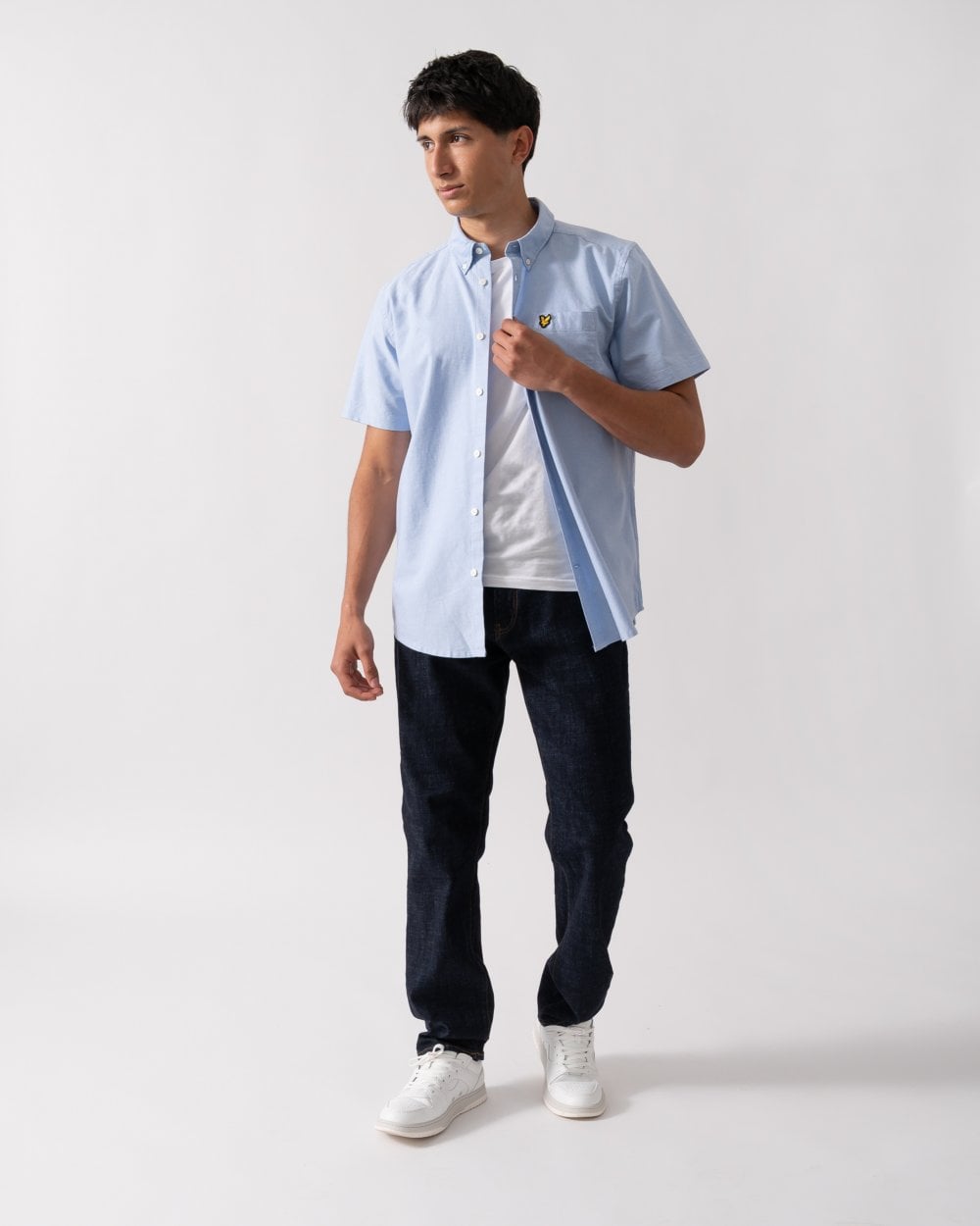 Lyle & Scott Short Sleeve Oxford Mens Shirt in X41 Riviera