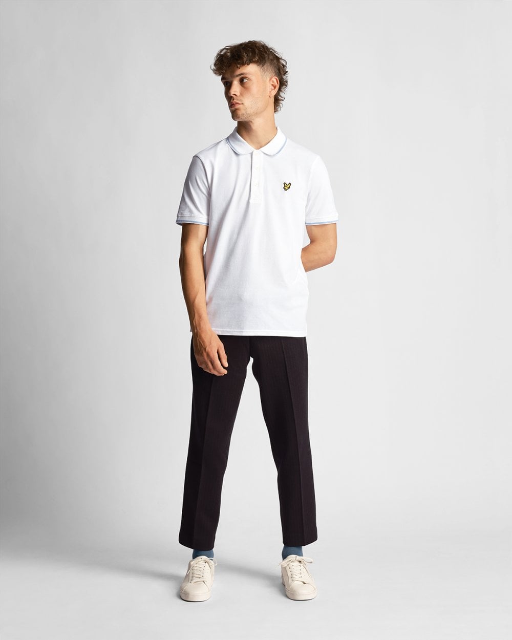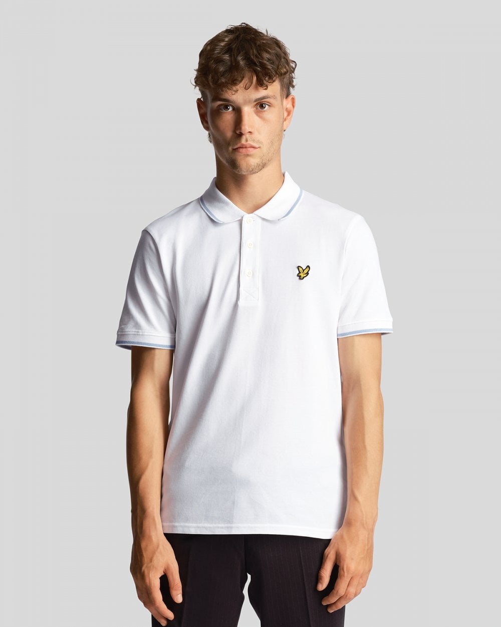 Lyle & Scott Tipped Mens Polo Shirt SP1524VOG in W533 White/ Light Blue