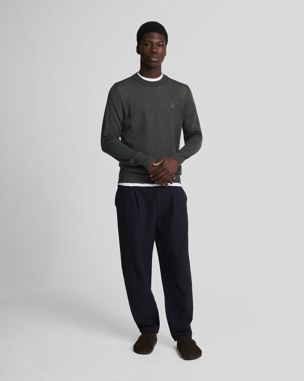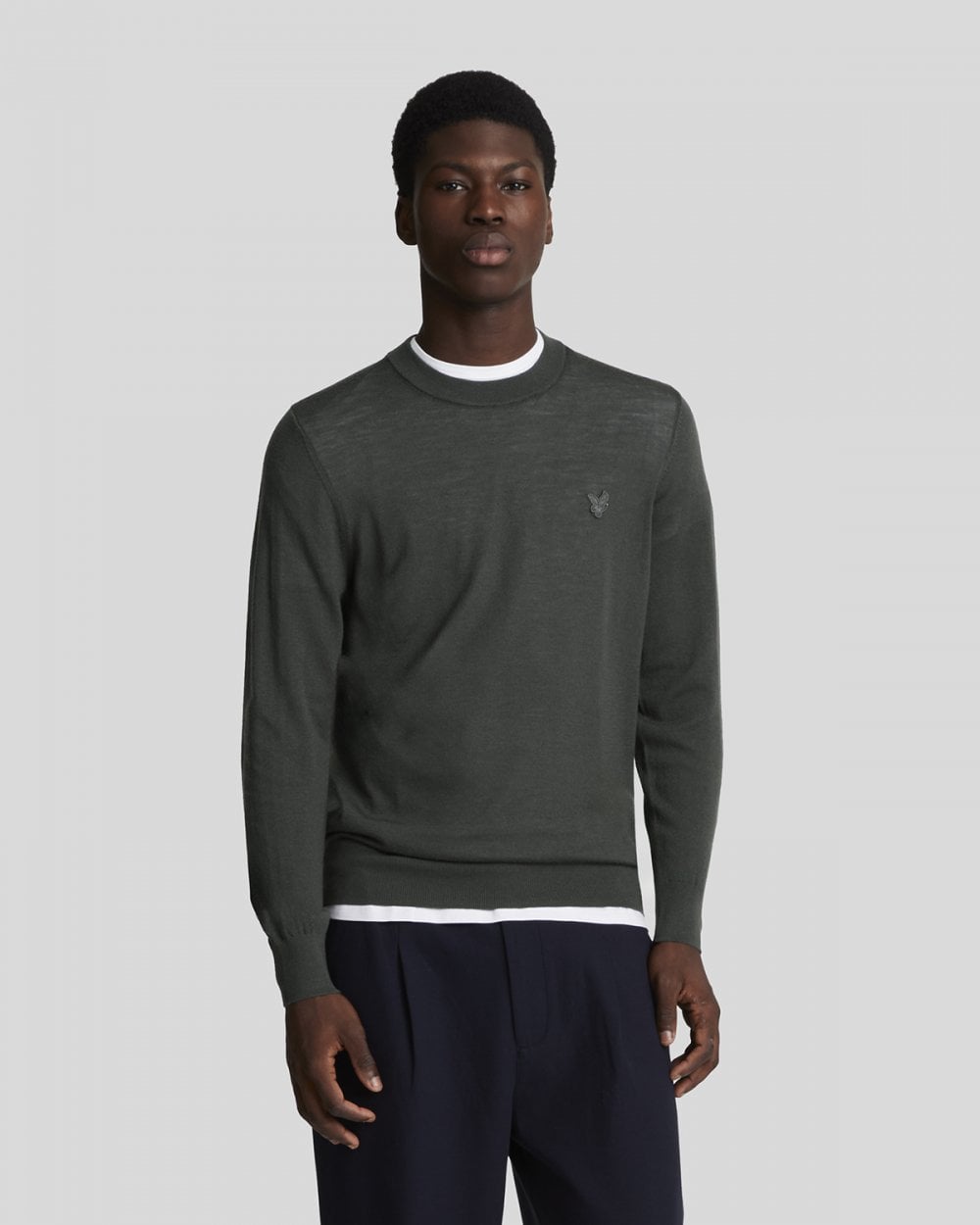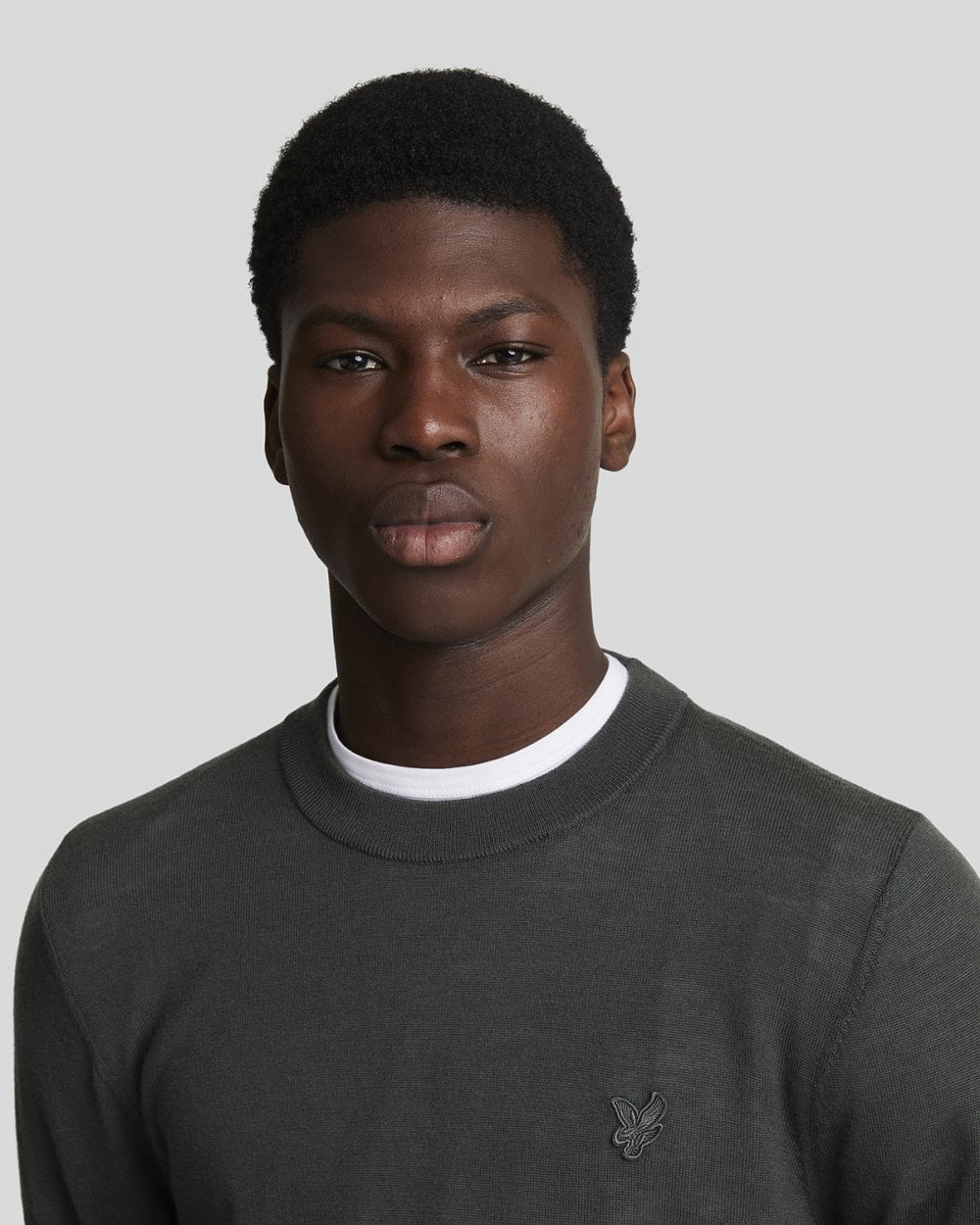 Lyle & Scott Tonal Eagle Merino Mens Crew Neck Jumper in W635 Gunmetal