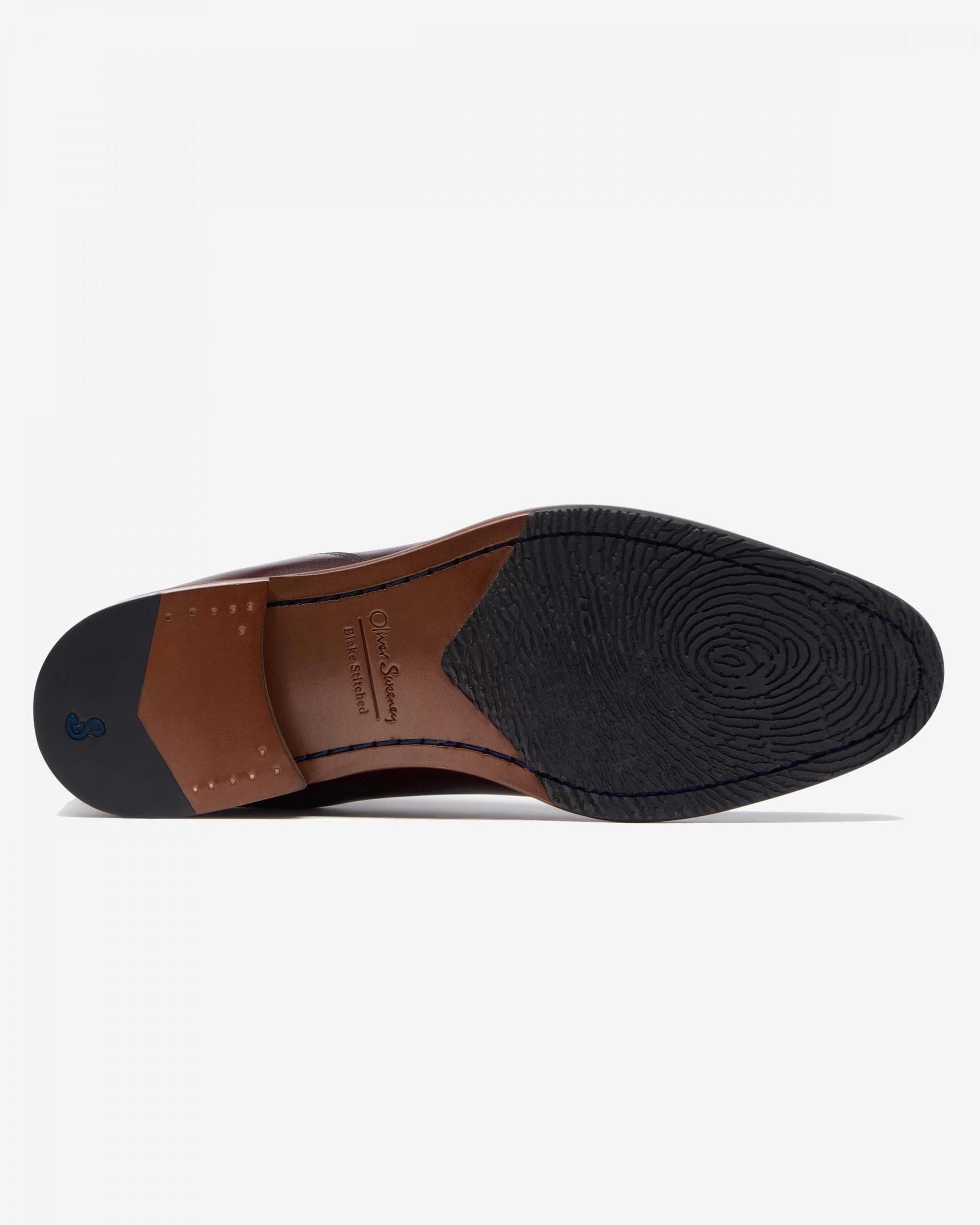 This classic Chelsea boot is made from antique finished, smooth Adigo calf leather with contrasting elastic gussets, a fabric back pull tab and a neatly piped topline. Includes a ½ calf leather lining and cushioned leather heel pad. The upper is Blake stitched to a leather sole with Oliver Sweeney's signature fingerprint rubber top-piece and a rubber insert in the leather stack heel, for extra practicality.