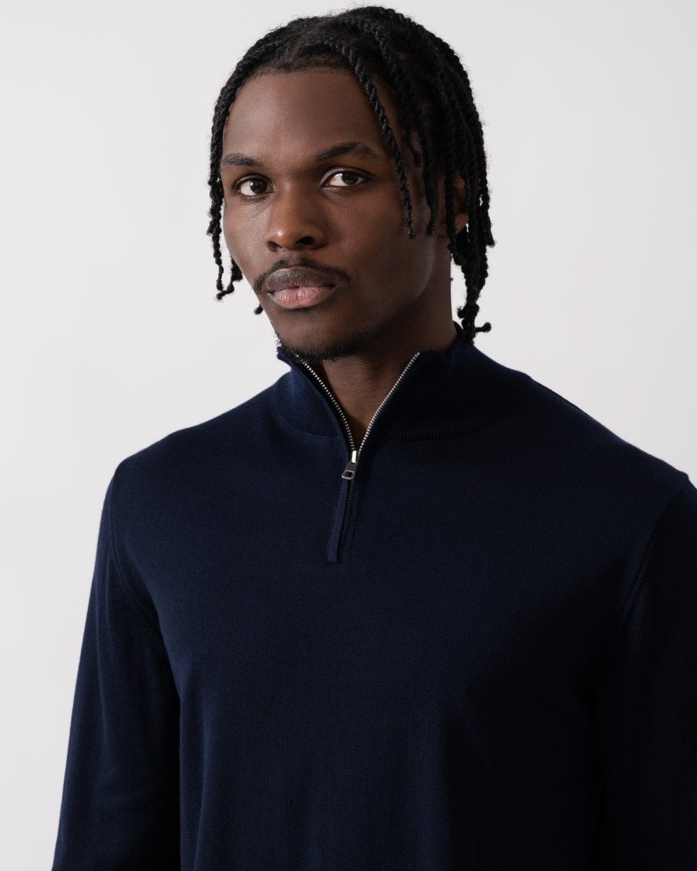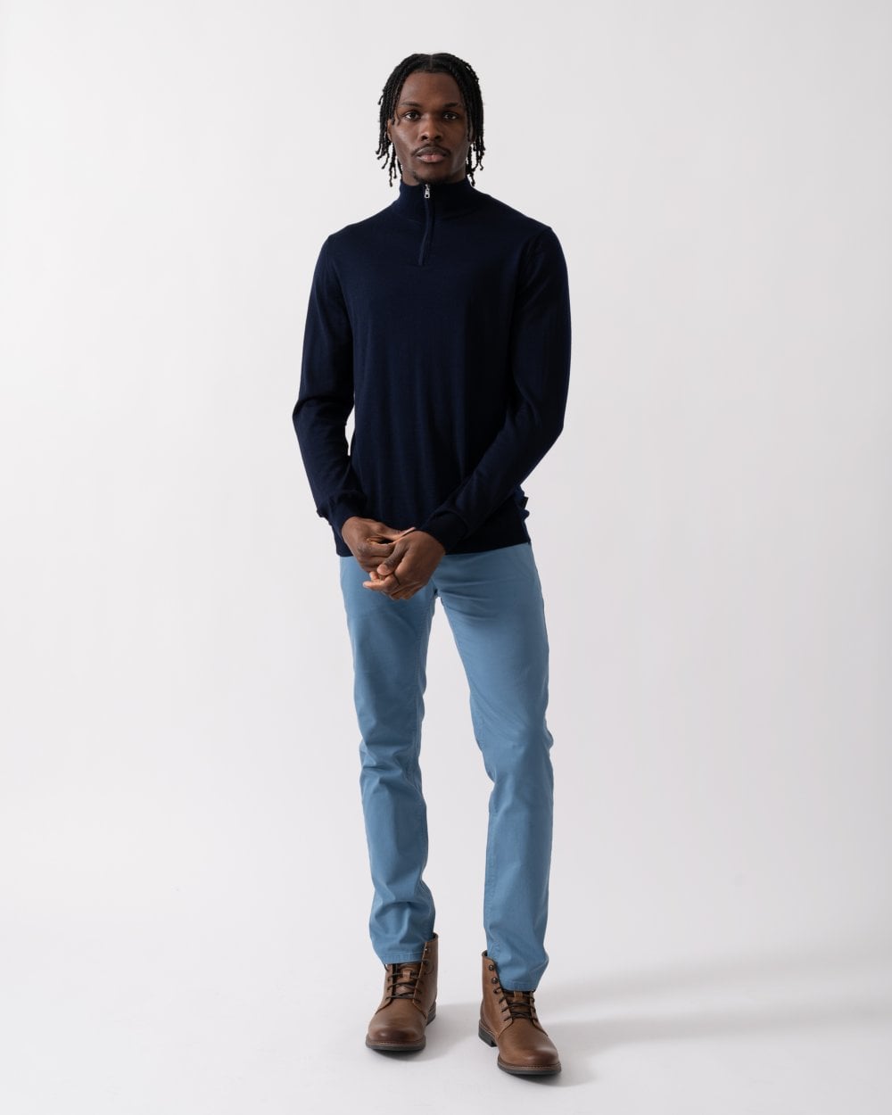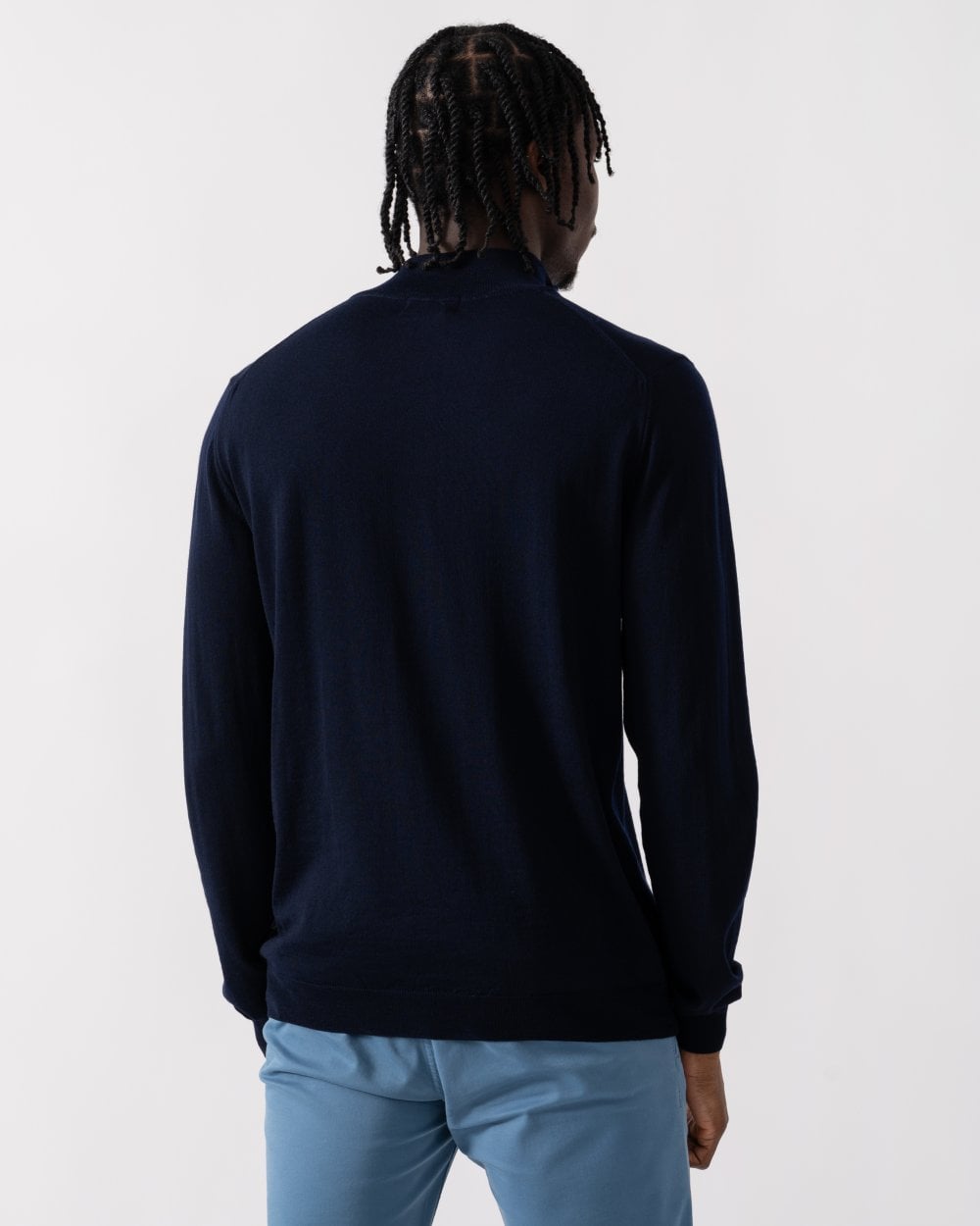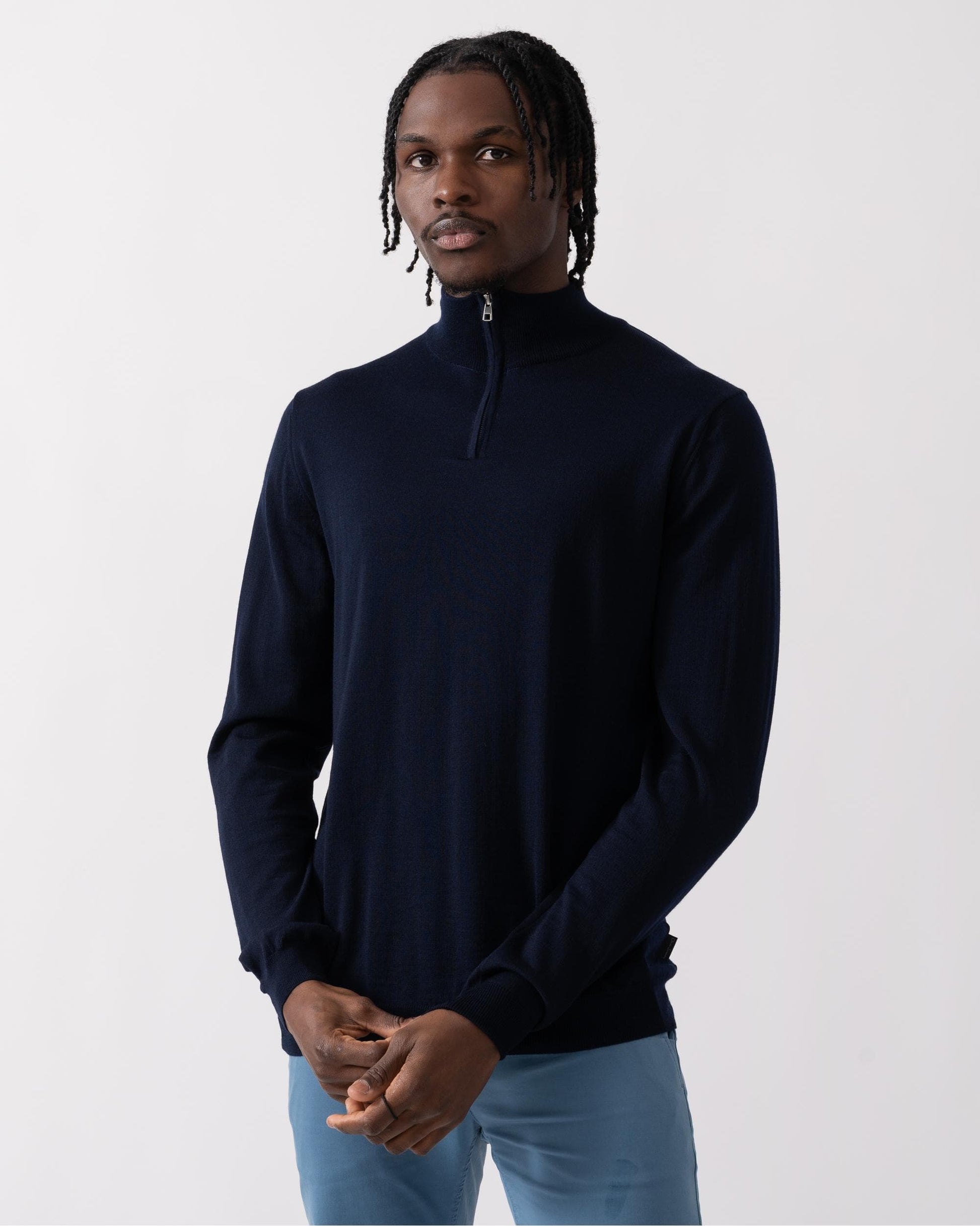 ¼ zip funnel neck jumper in 100% Merino wool from the renowned Zegna Baruffa Mill in Italy. Made with a super fine 27 gauge, fully fashioned with a dropped back shoulder seam and concealed zip placket to create a clean profile. And talking of clean Curragh is also machine washable (woollens cycle with a low spin speed, max 30°C).