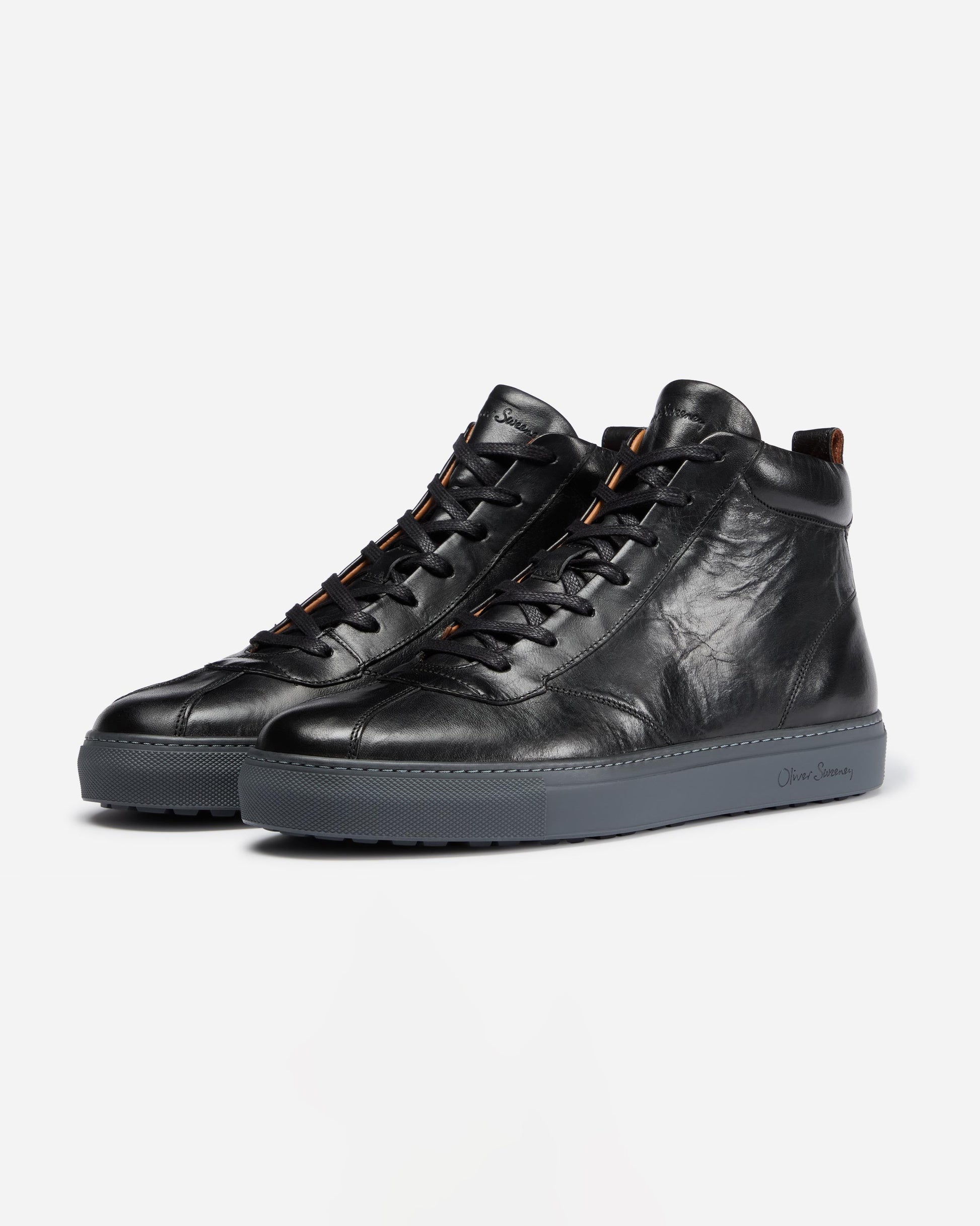 Defeza Mens Calf Leather Retro Hi-Tops - Black