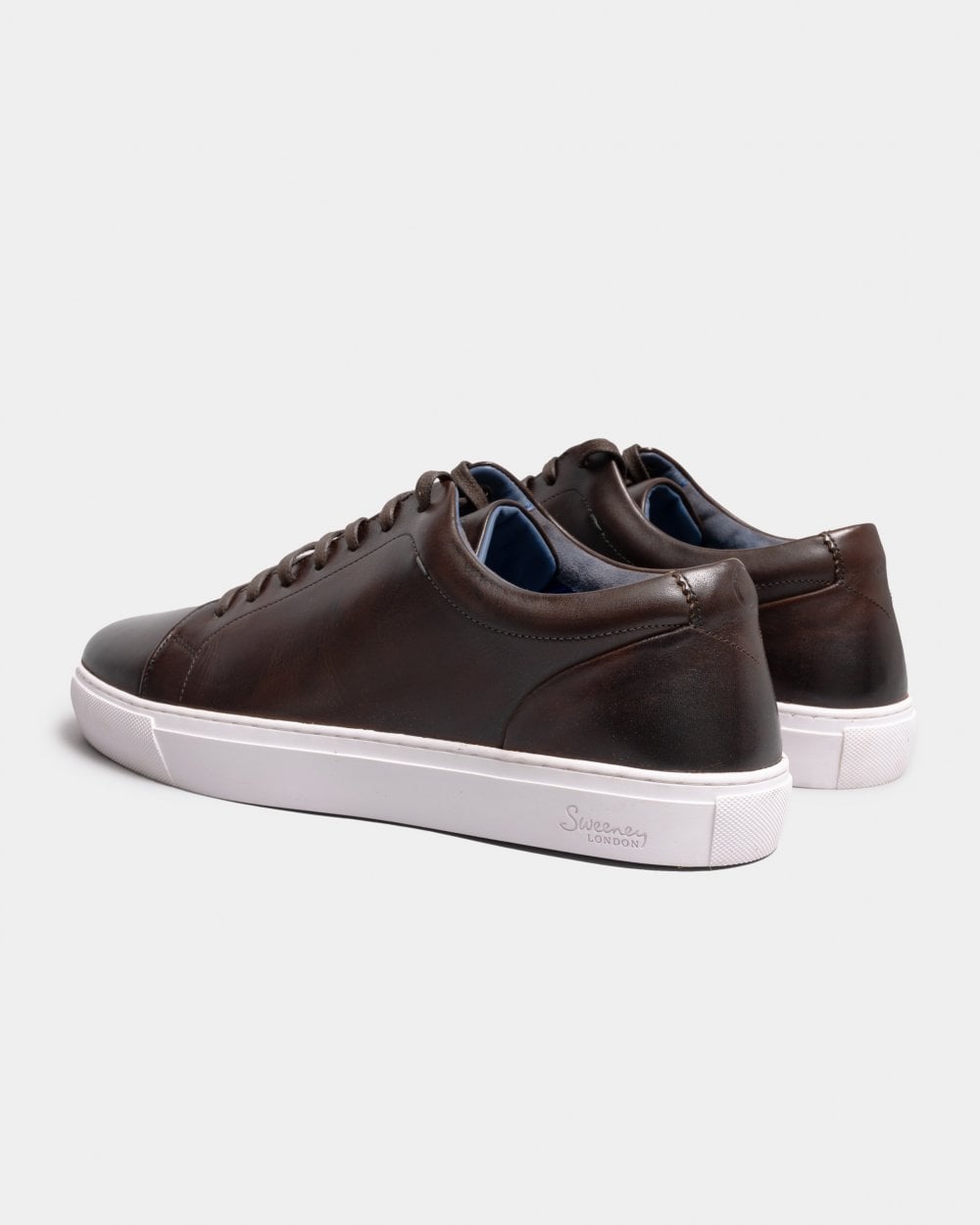 Hayle Antiqued Calf Leather Mens Trainers - Brown