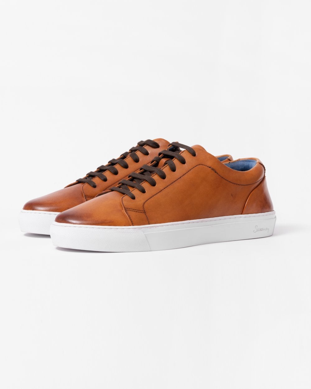Hayle Antiqued Calf Leather Mens Trainers - Cognac