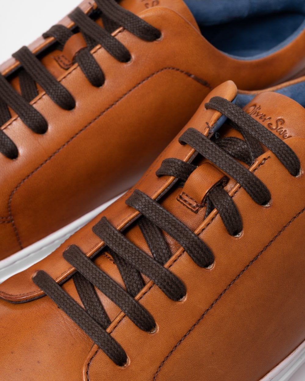 Oliver Sweeney Hayle Antiqued Calf Leather Mens Trainers in Cognac