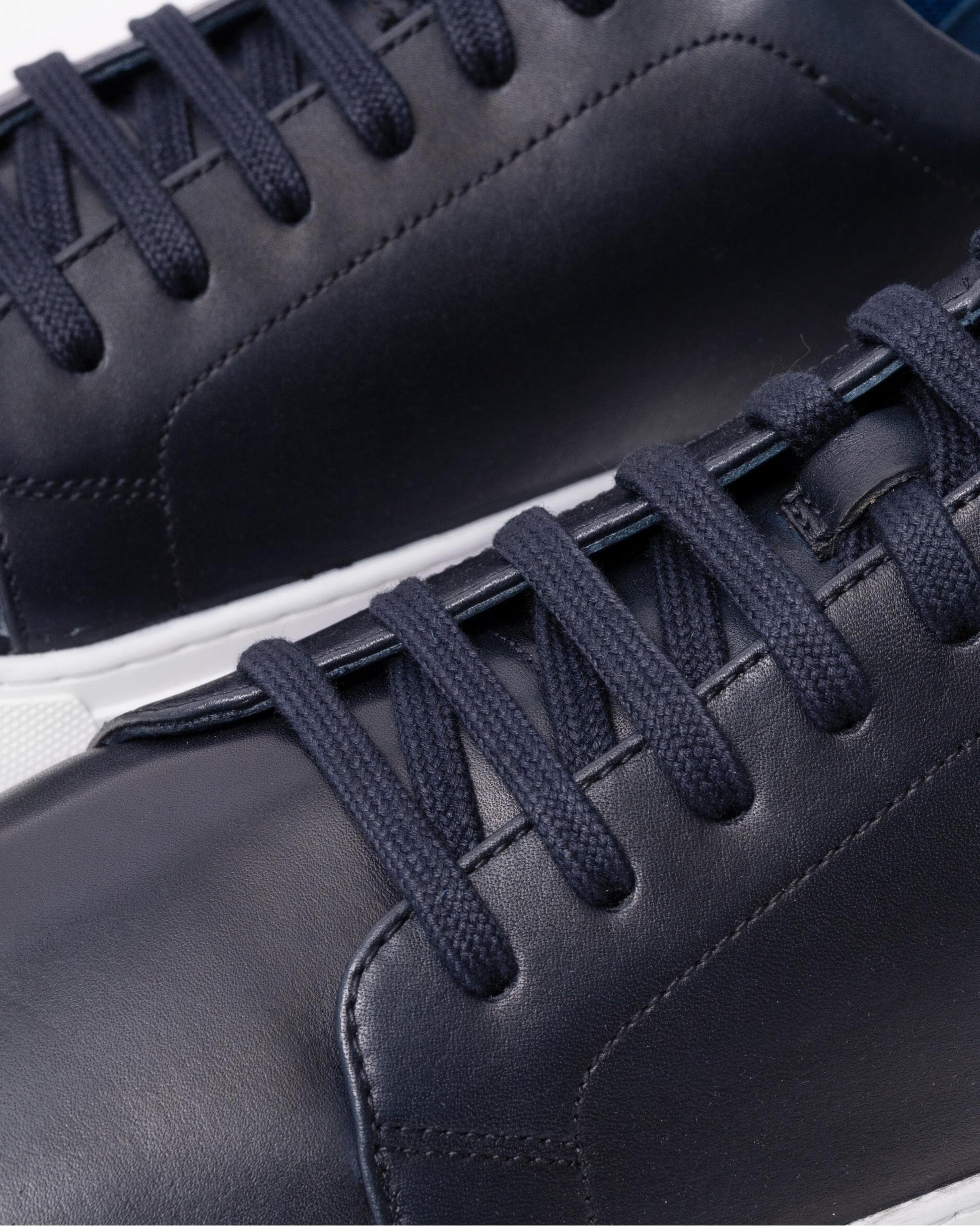 Hayle Antiqued Calf Leather Mens Trainers - Navy