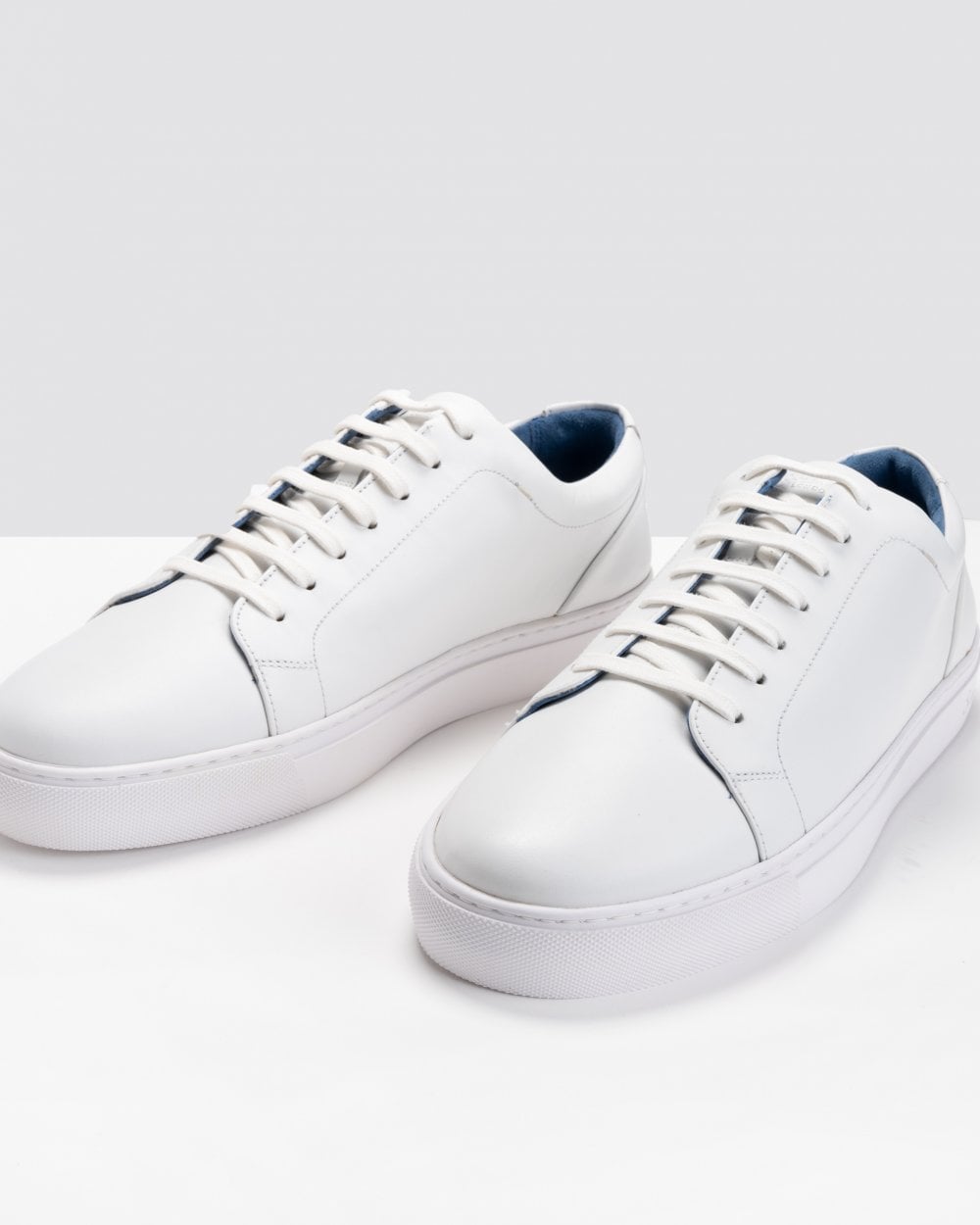 Hayle Antiqued Calf Leather Mens Trainers - White