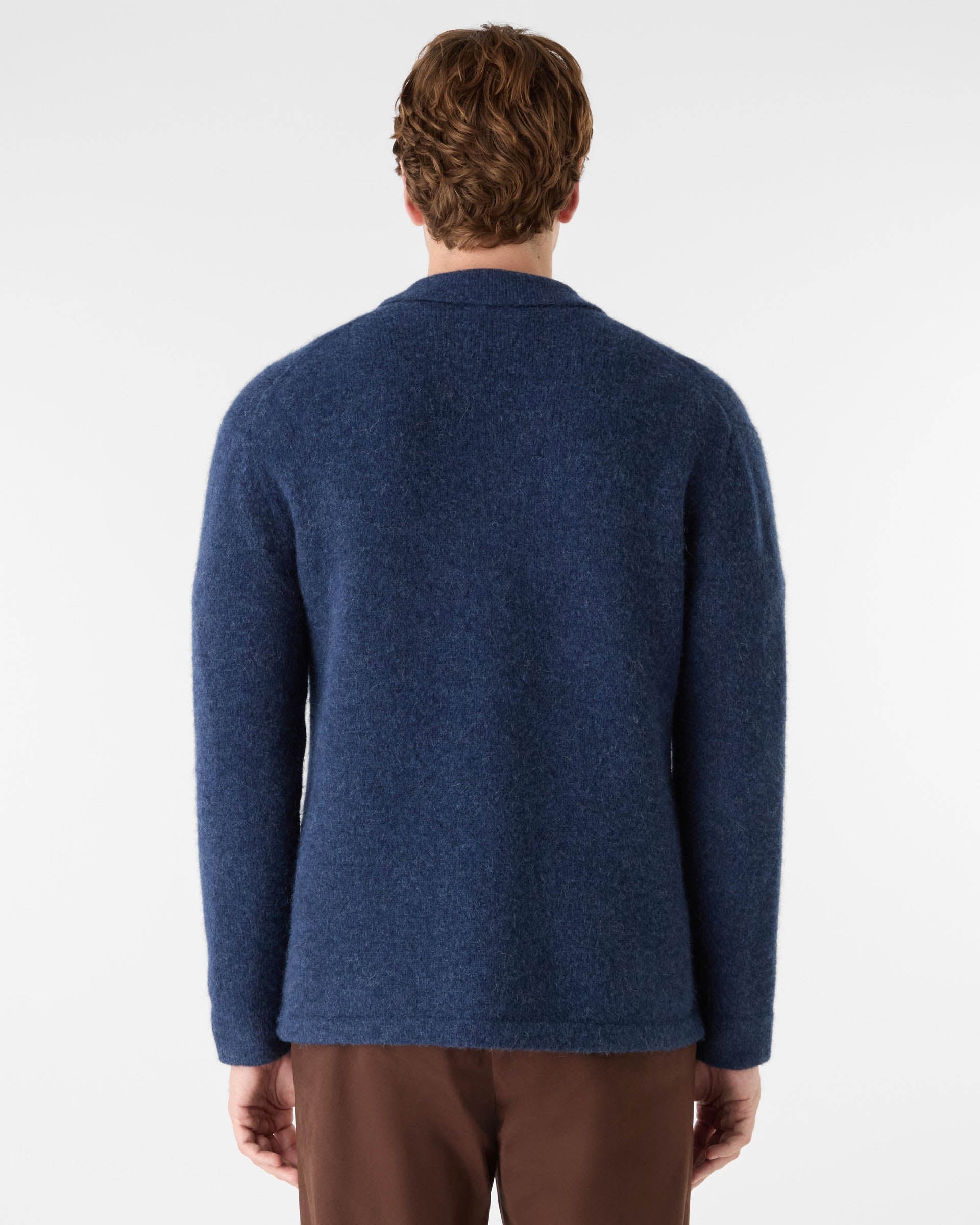 Heywood Mens Alpaca Wool Blend Knitted Overshirt - Navy