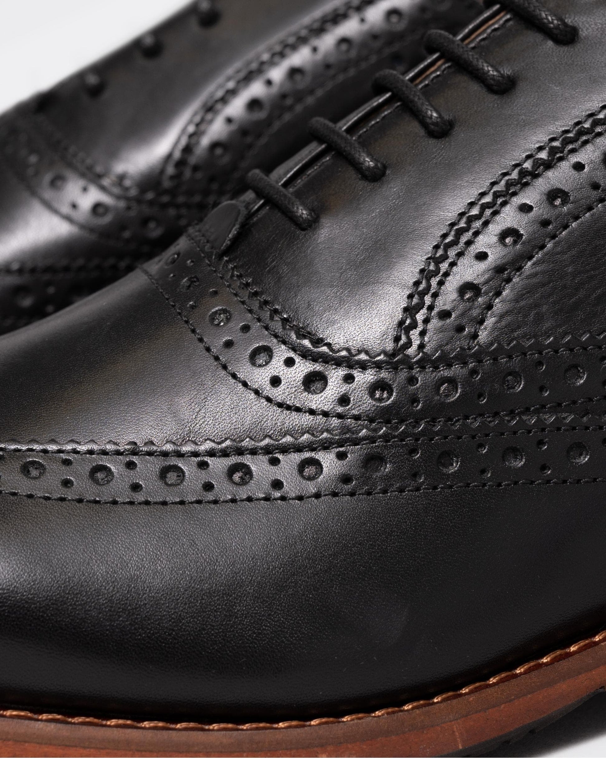 Ledwell Mens Wing Tip Oxford Brogues - Black