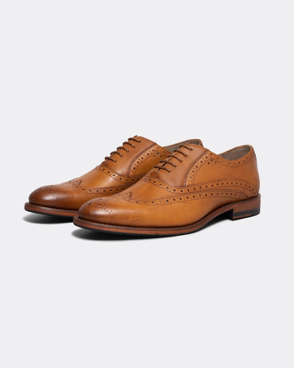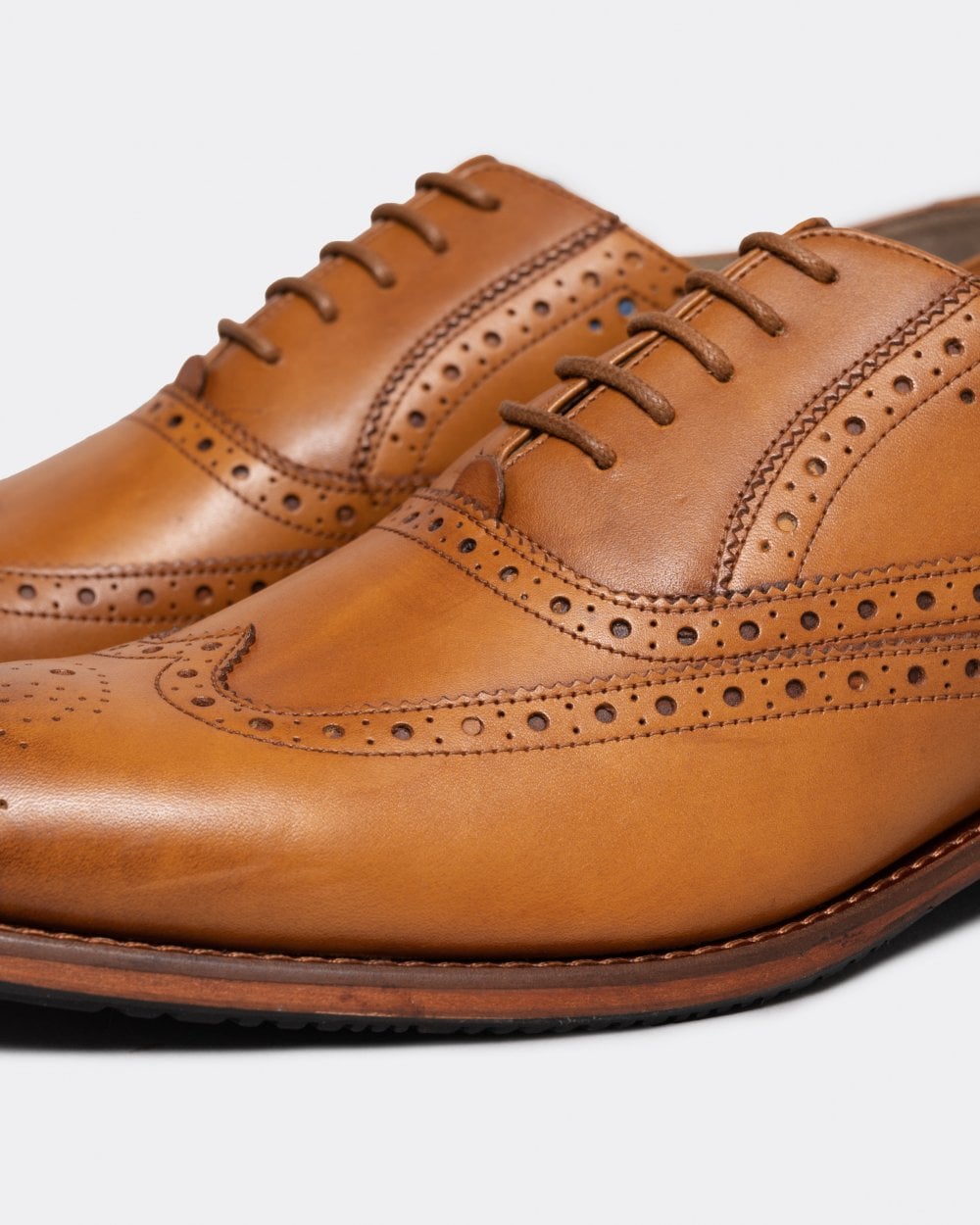 Ledwell Mens Wing Tip Oxford Brogues - Light Tan