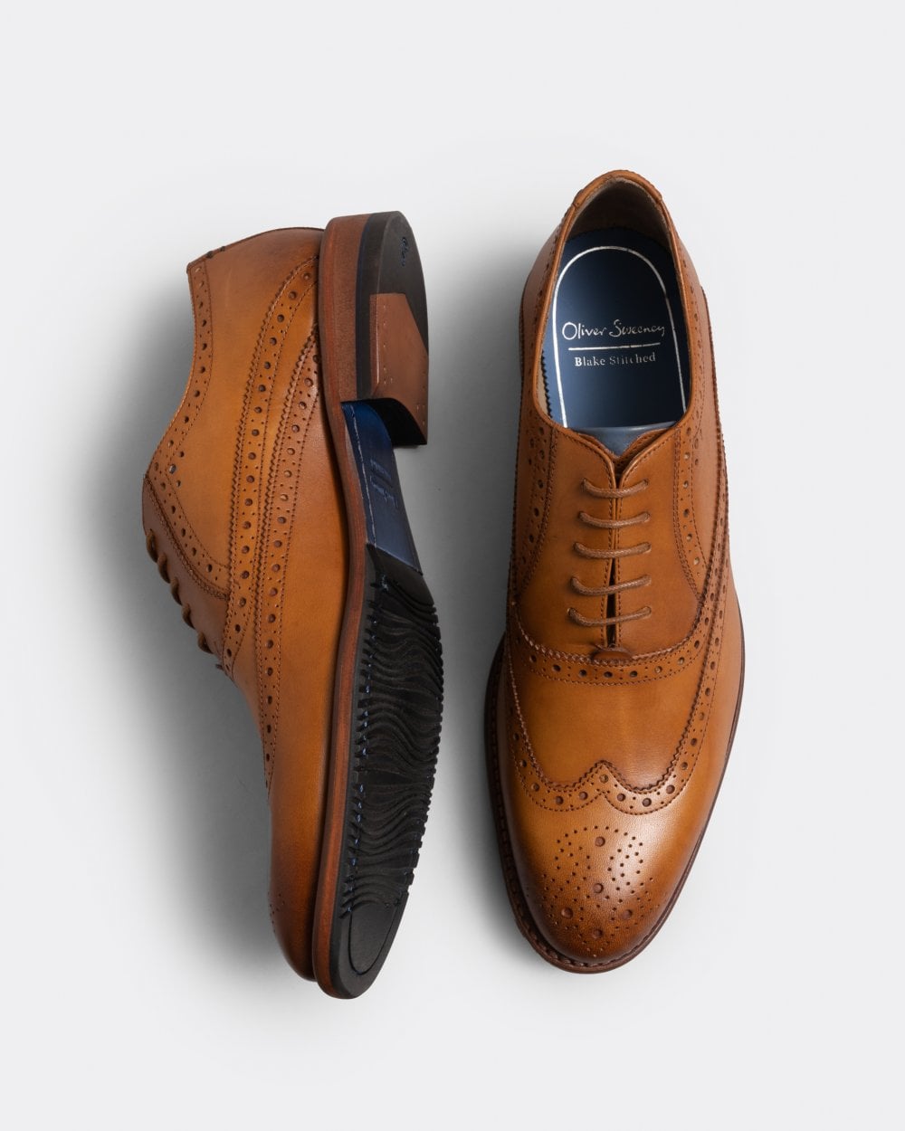 Oliver Sweeney Ledwell Mens Wing Tip Oxford Brogues in Light Tan