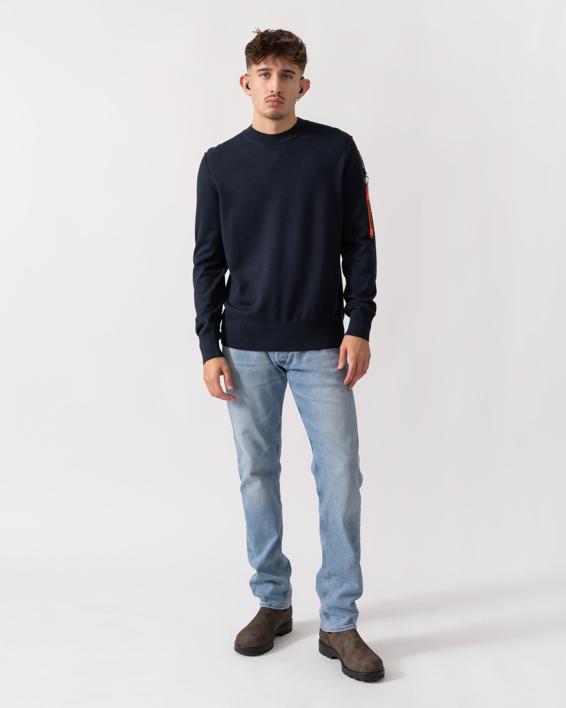 From the Rescue Knit family, Basic Braw is a cotton-bamboo crewneck sweater. The garment-dye technique and refined details make it the standout piece in Parajumpers knitwear.