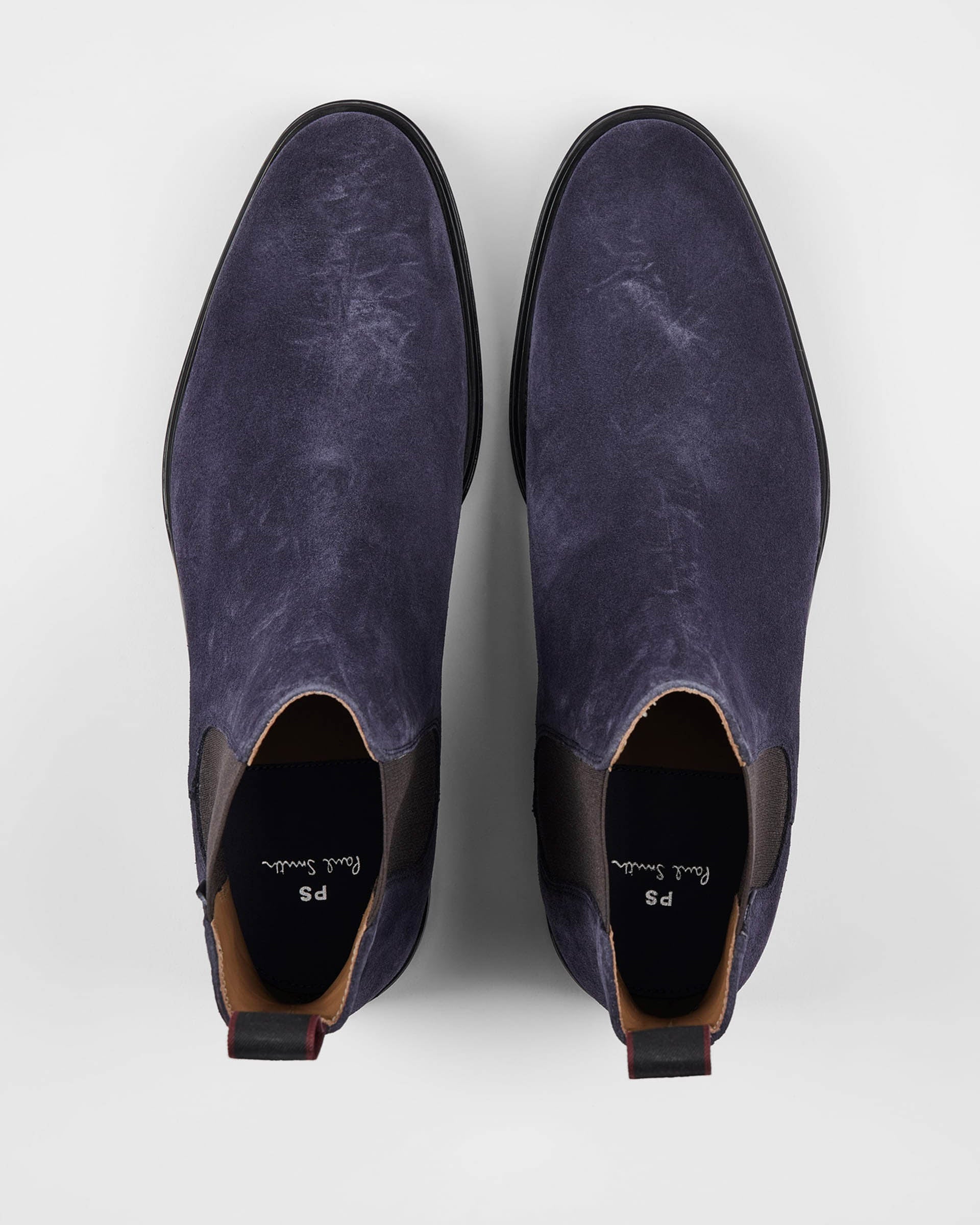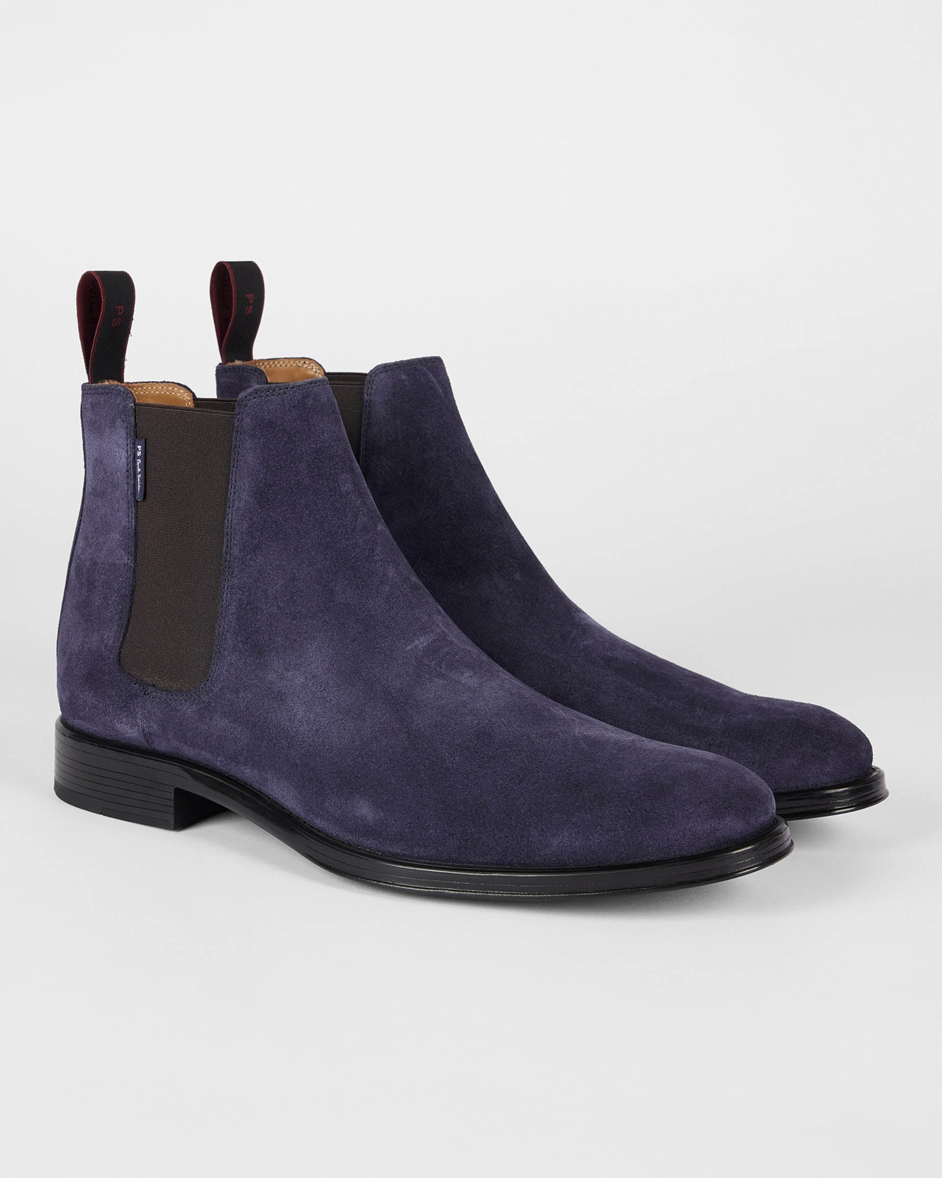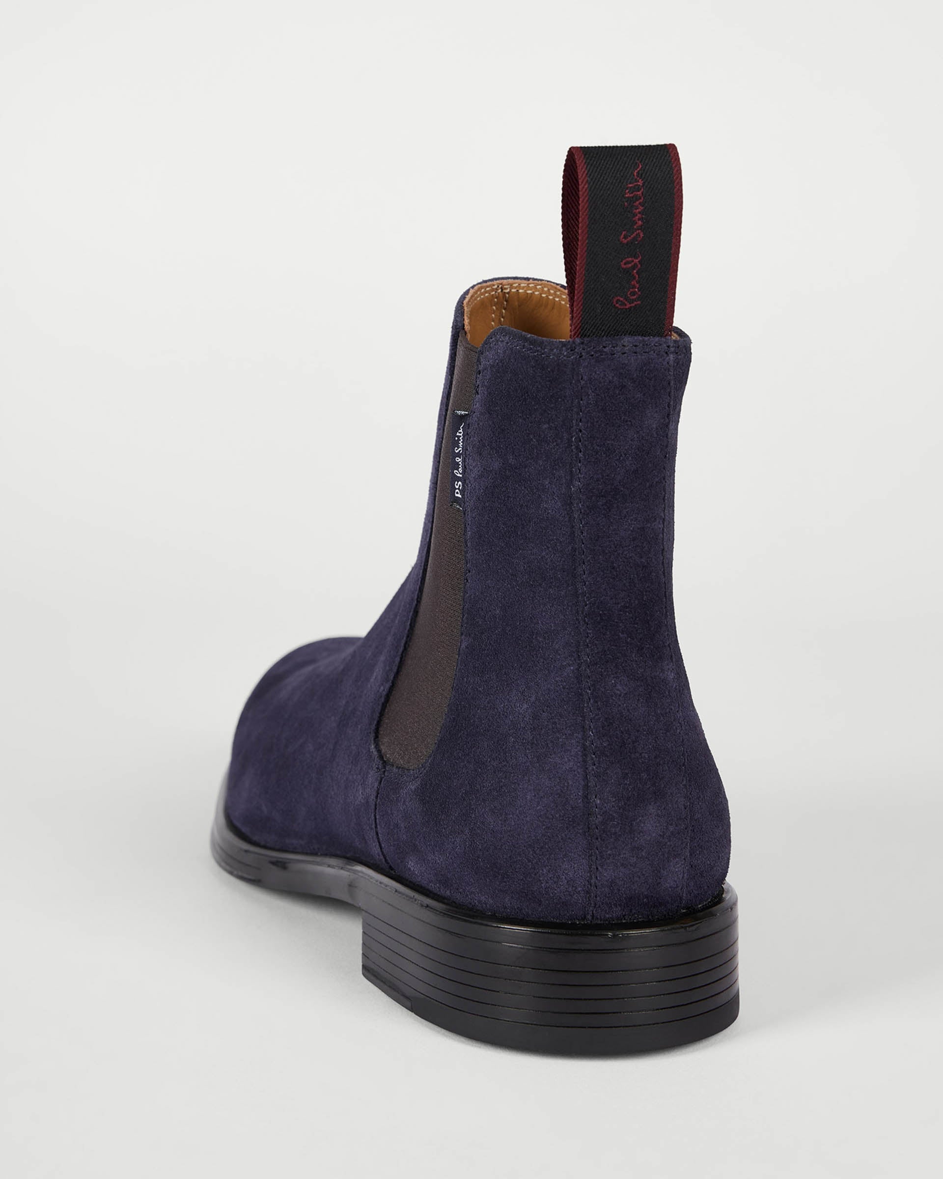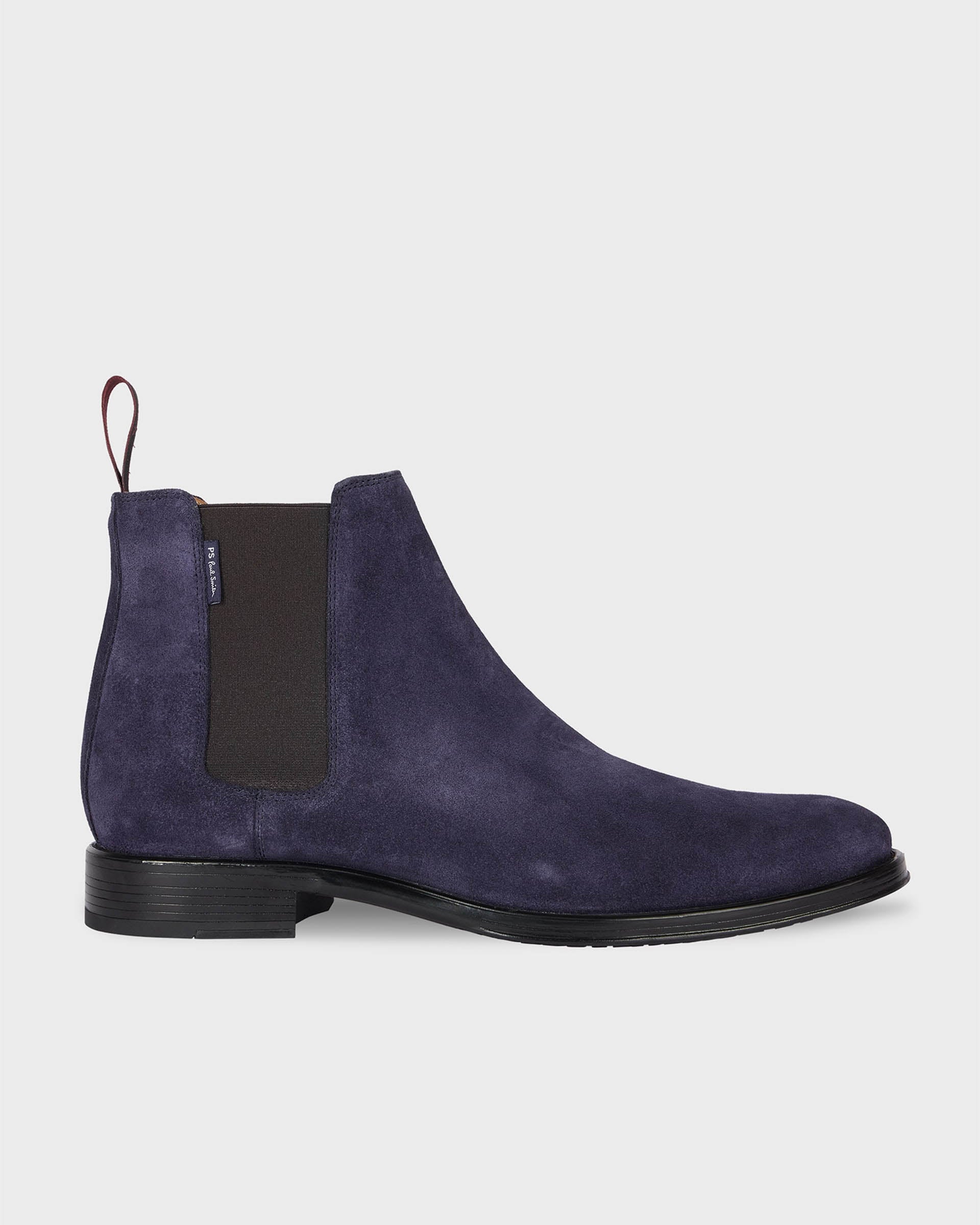 Made from premium suede with a classic Chelsea boot design, these navy 'Augustus' boots feature comfortable rubber soles with a contrast zebra pattern insert. Complete with elasticated side gores and logo heel pulls for ease of wear.