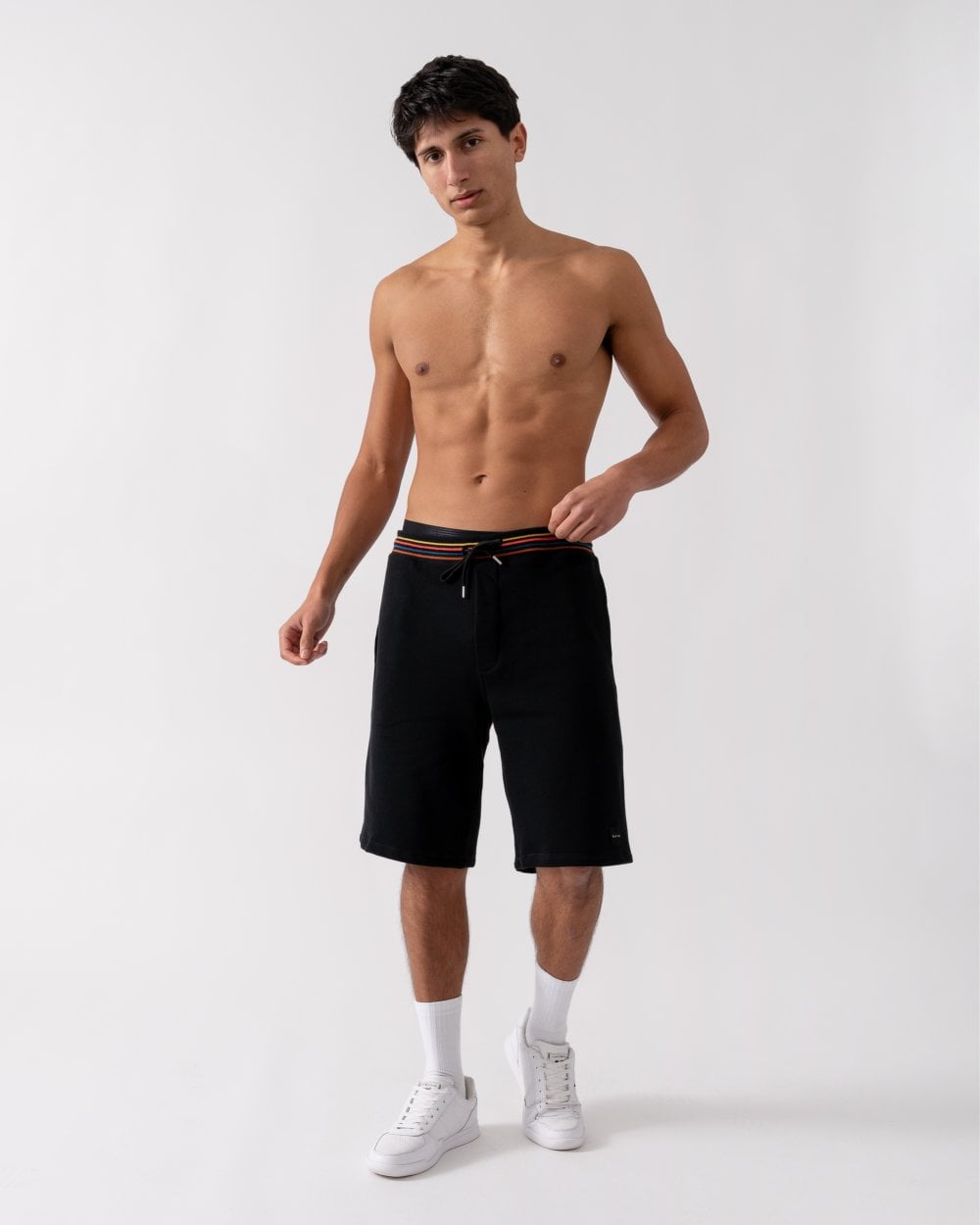 Paul Smith Mens Cotton Jersey Lounge Shorts with Artist Stripe Waistband in 79 Black