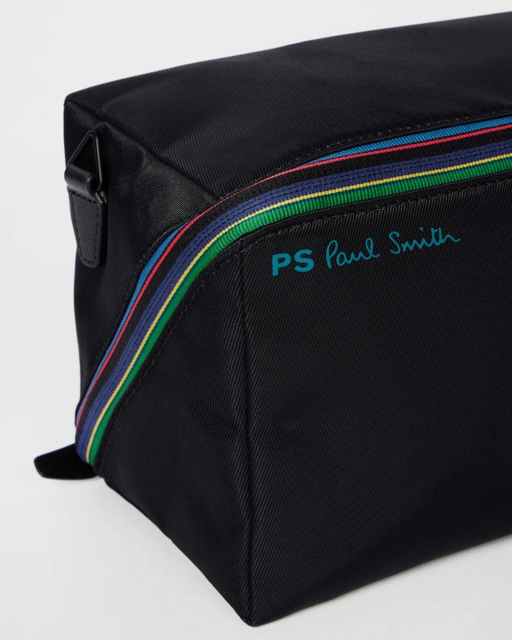 An essential for travelling, this black wash bag is made from a durable textured mesh and features a blue signature Paul Smith logo on the front. Complete with a 'Sports Stripe' pattern across the top, this wash bag is the ideal on the go travel accessory.