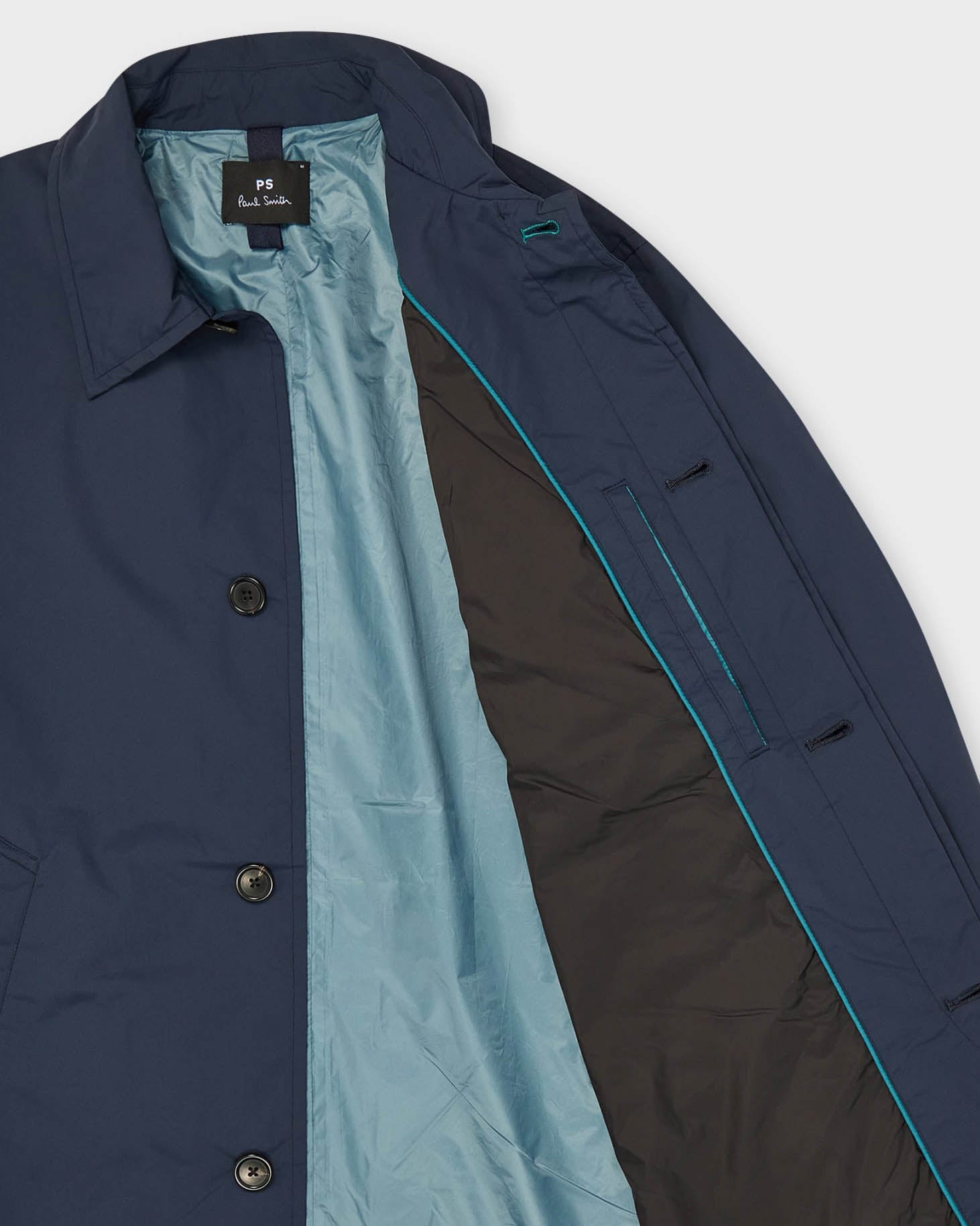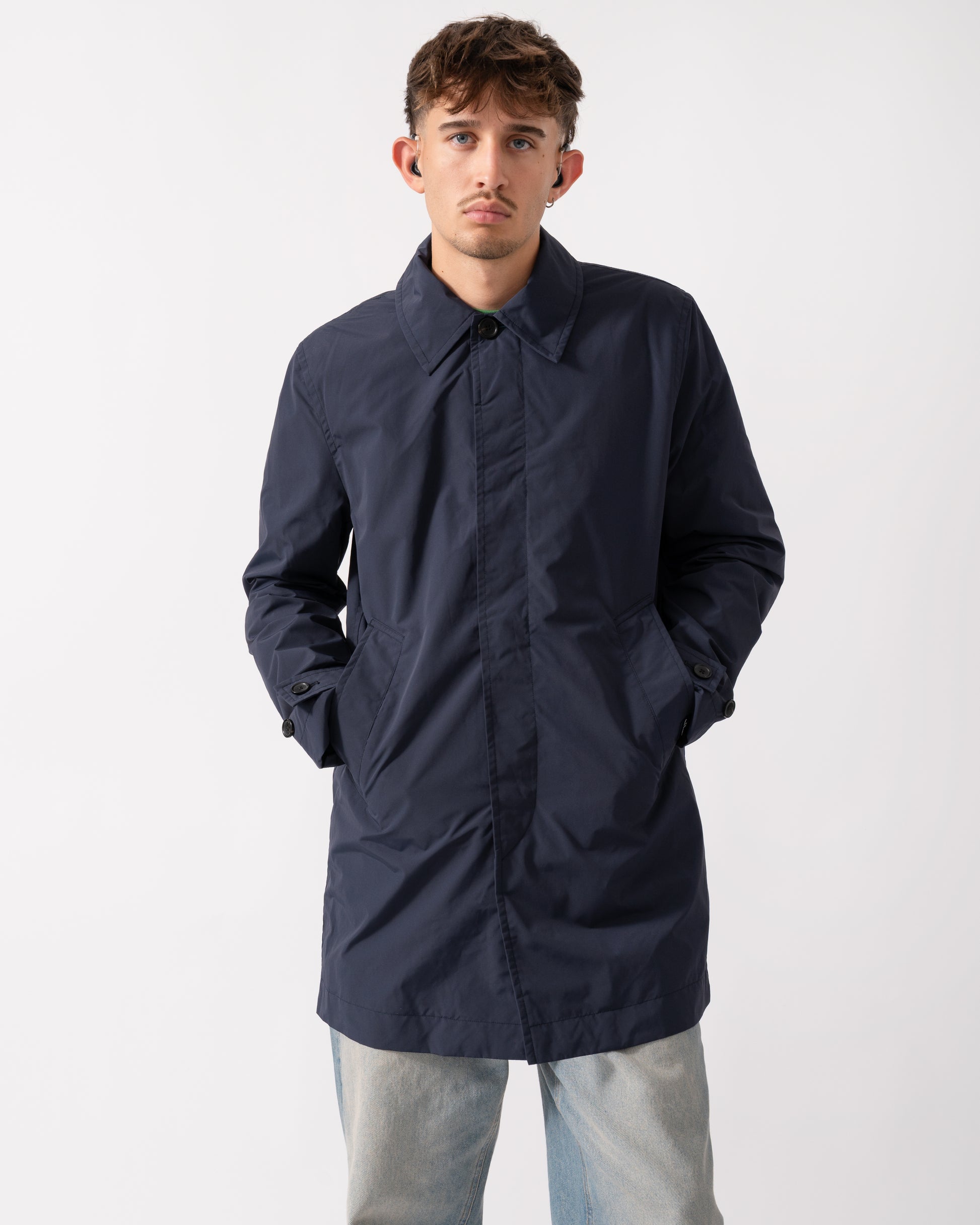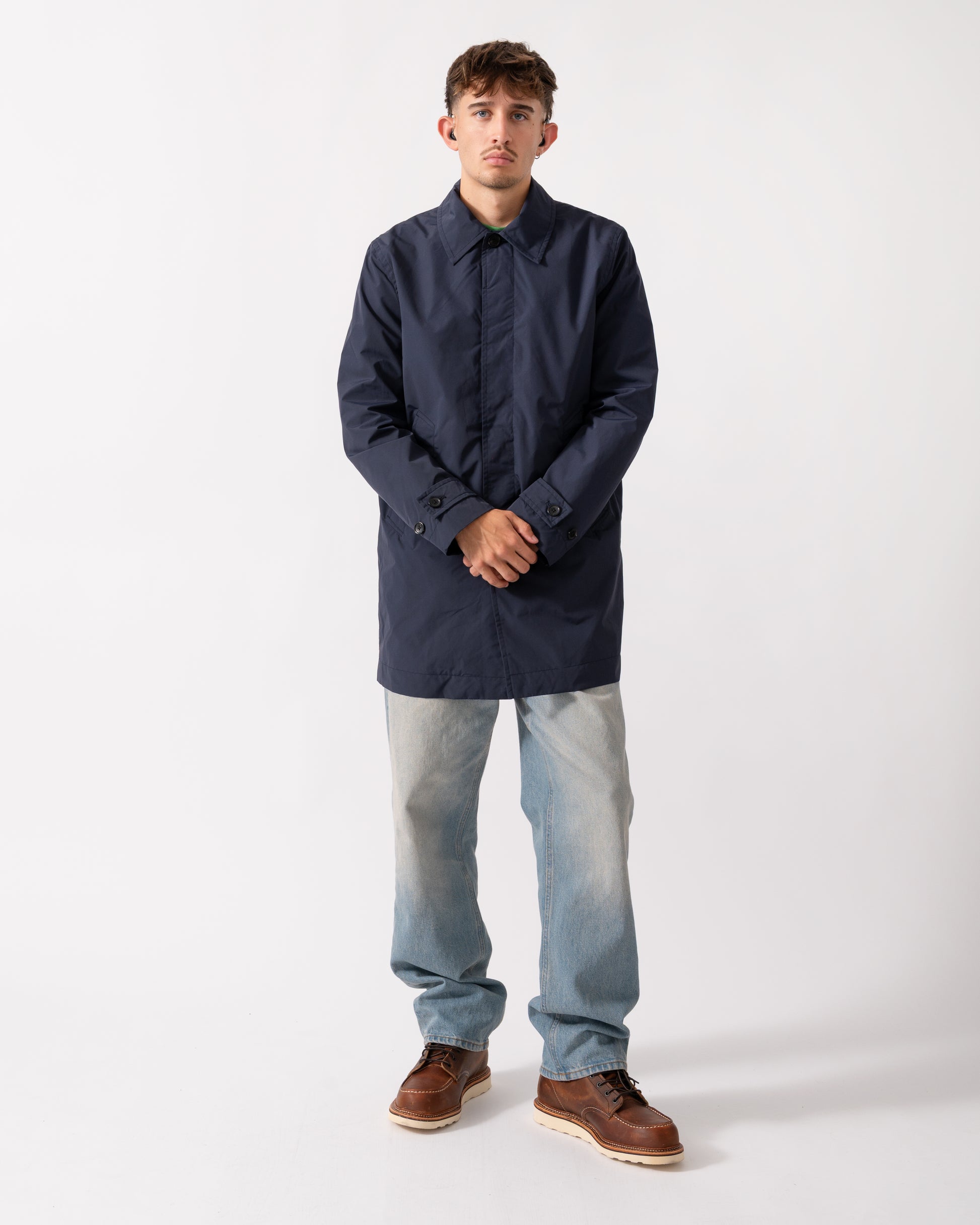 Made from 100% polyester with a water resistant finish, this navy mac features a timeless design. Complete with a full lining for comfort, this coat is finished with a single rear vent and angled front pockets for practicality.