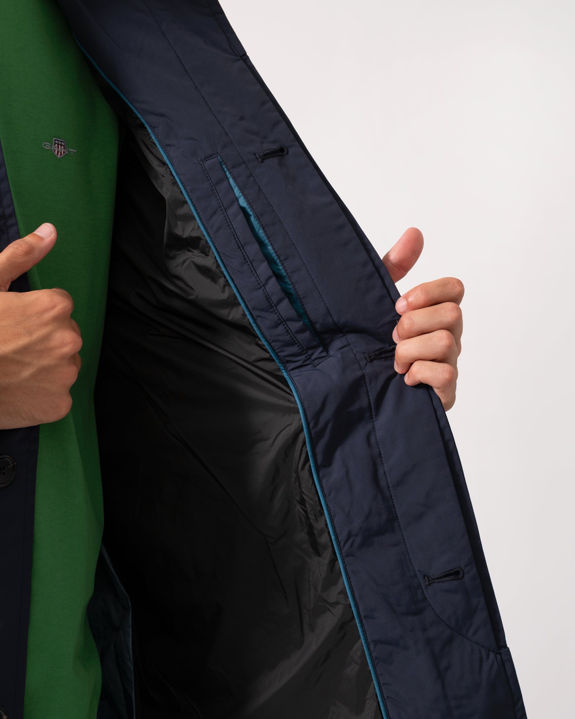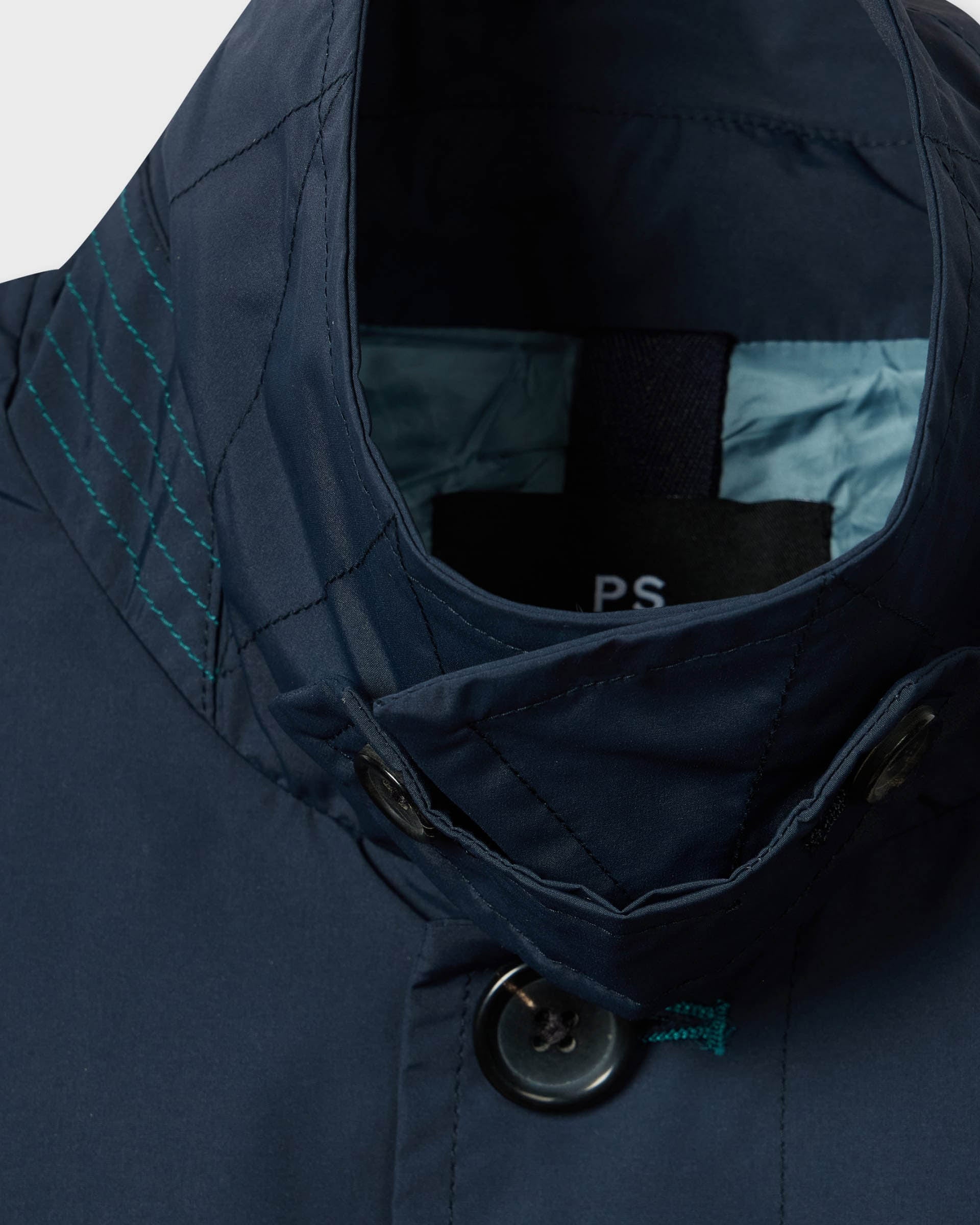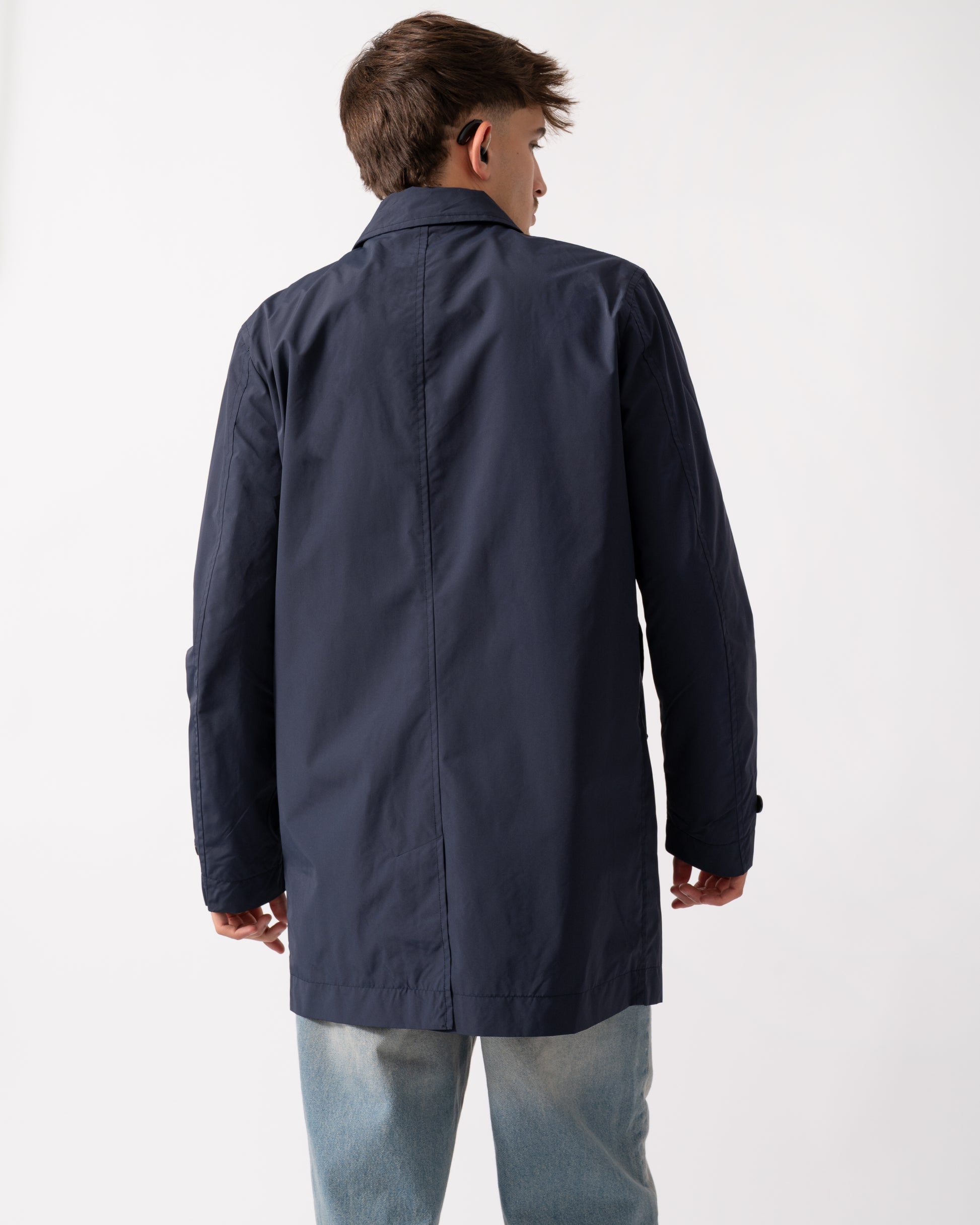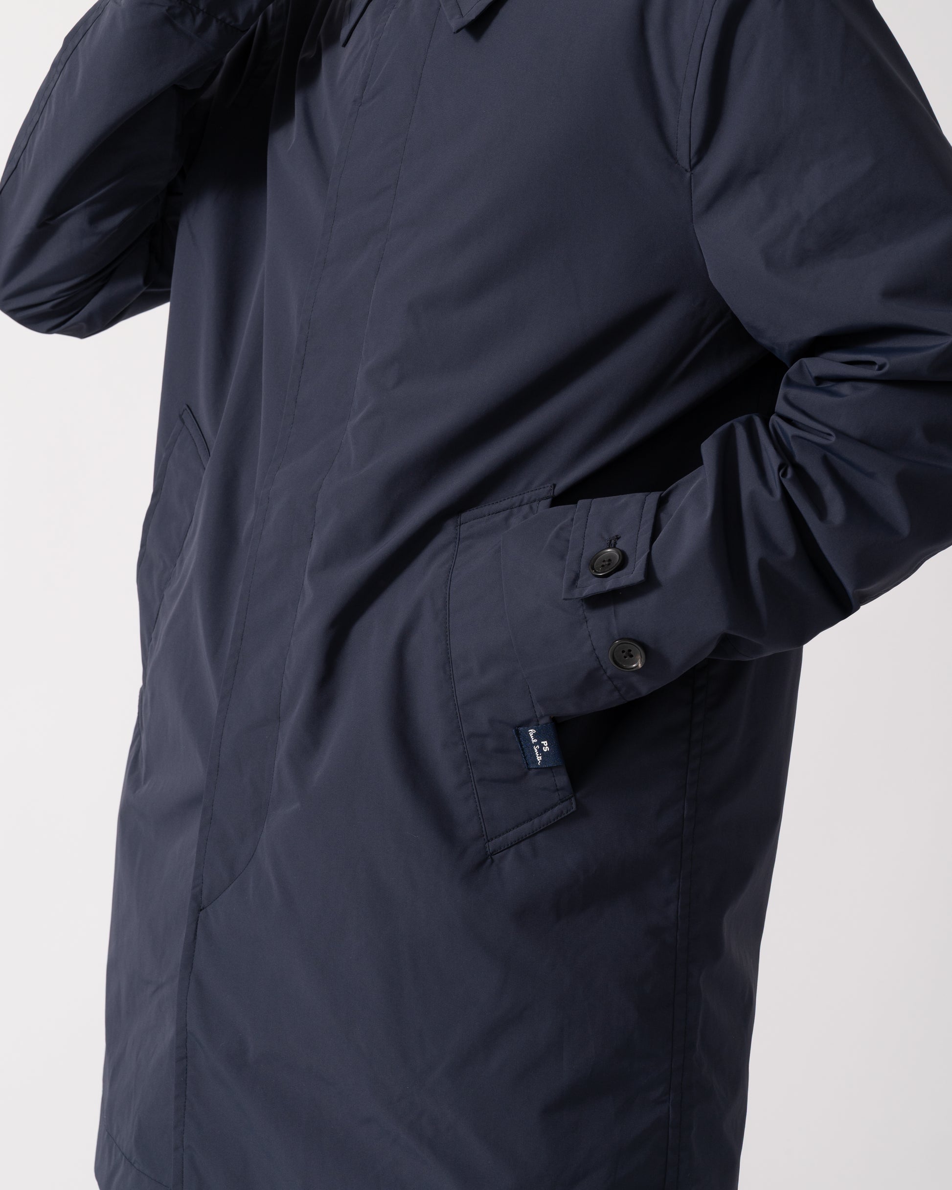 Made from 100% polyester with a water resistant finish, this navy mac features a timeless design. Complete with a full lining for comfort, this coat is finished with a single rear vent and angled front pockets for practicality.