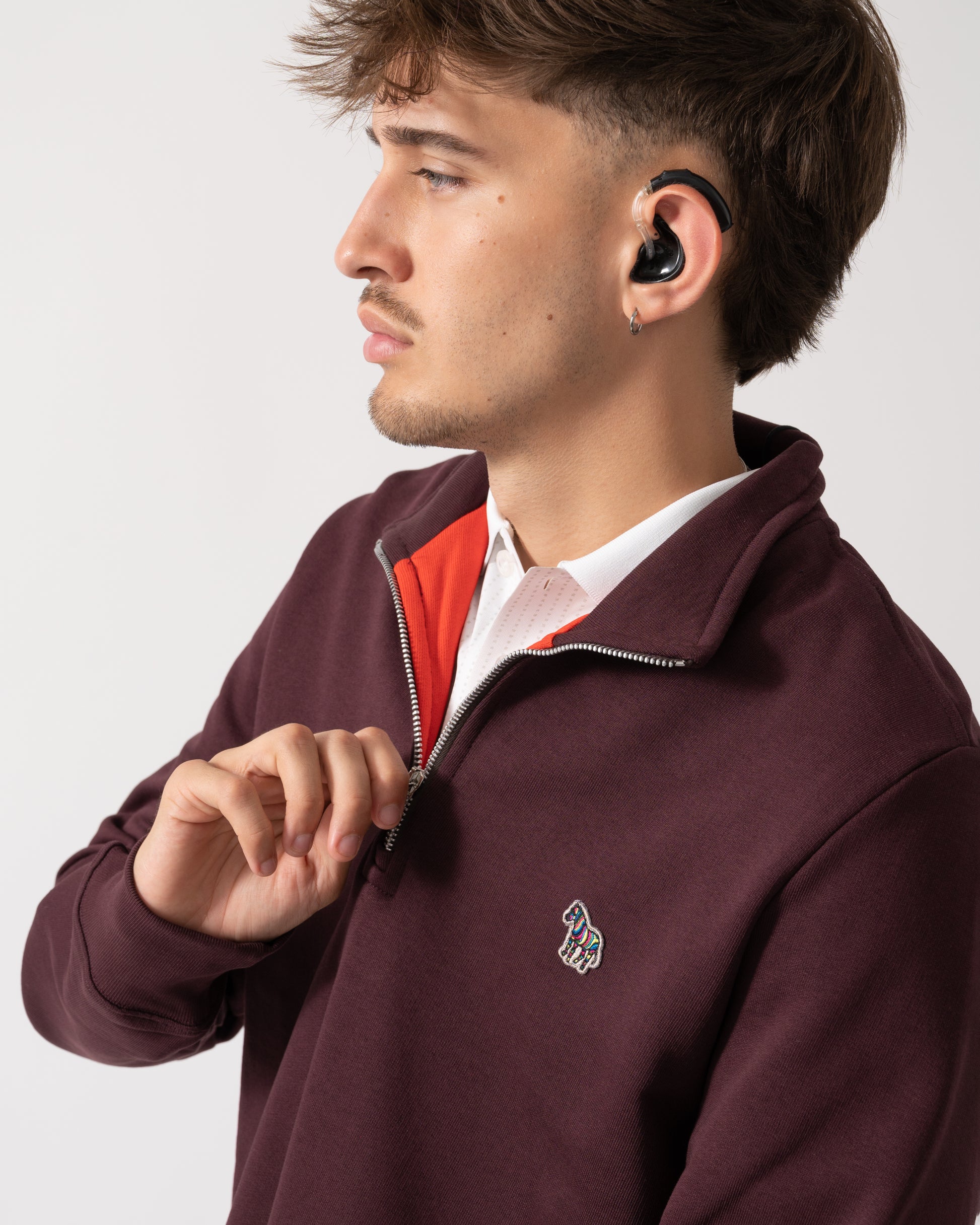 Cut from organic loopback cotton, this sweatshirt features a funnel neck with a half zip fastening. Finished with our classic Zebra logo stitched on the chest.