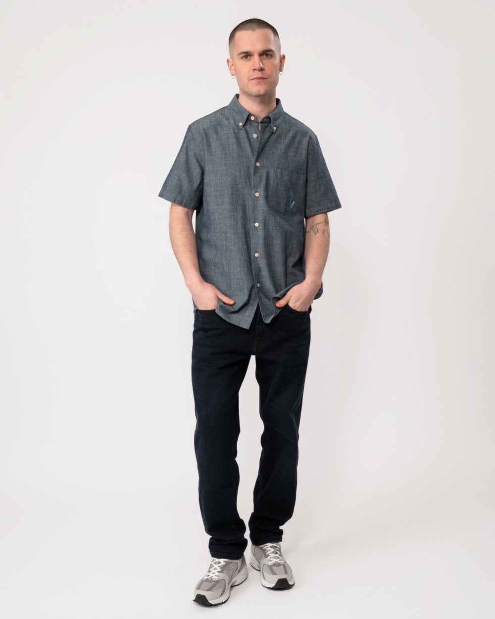 Made from 100% cotton chambray, this short-sleeve shirt features Paul Smith's 'Broad Stripe Zebra' embroidered in tonal stripes. Cut for a regular-fit, this shirt is finished with a chest patch pocket and button down collar.