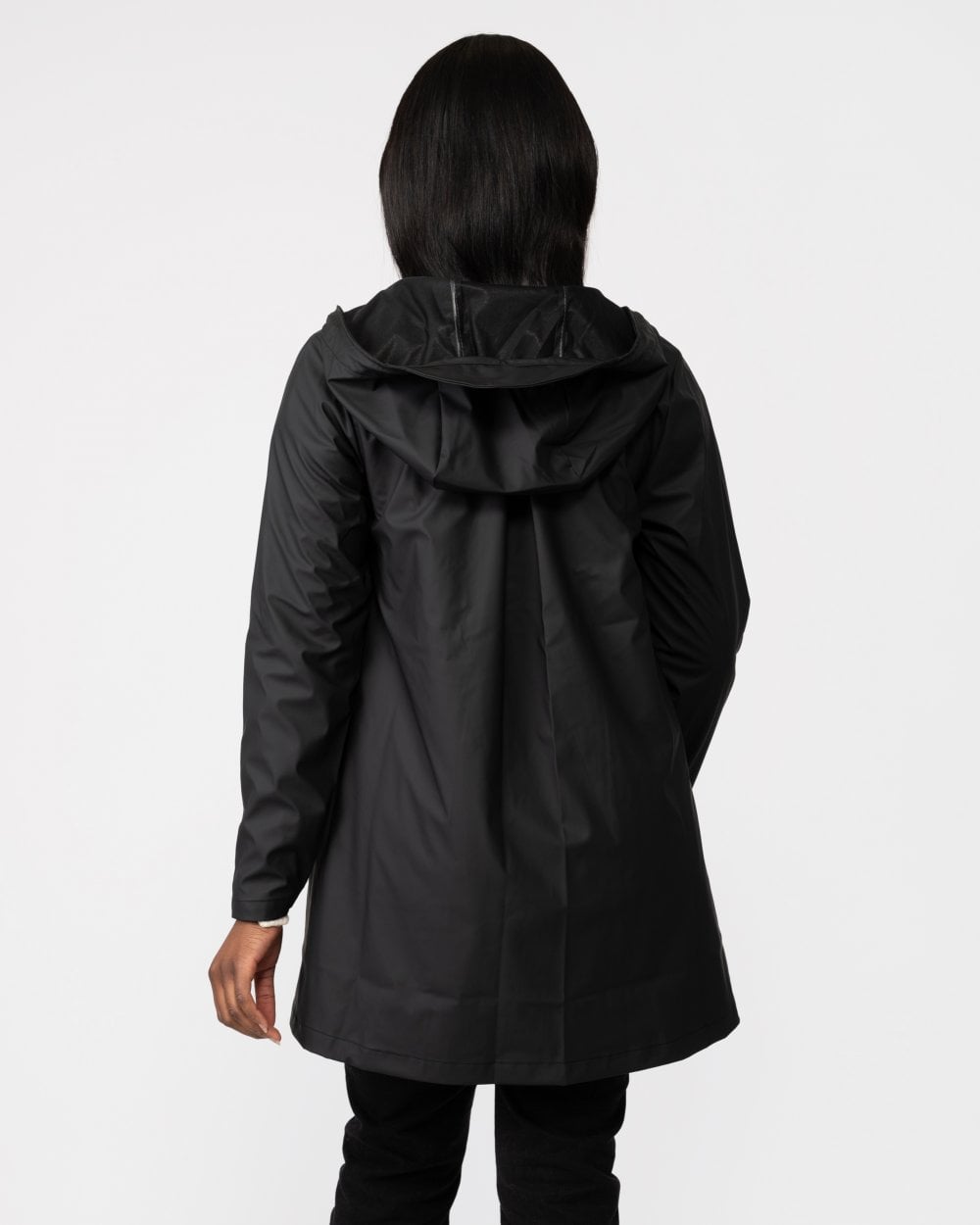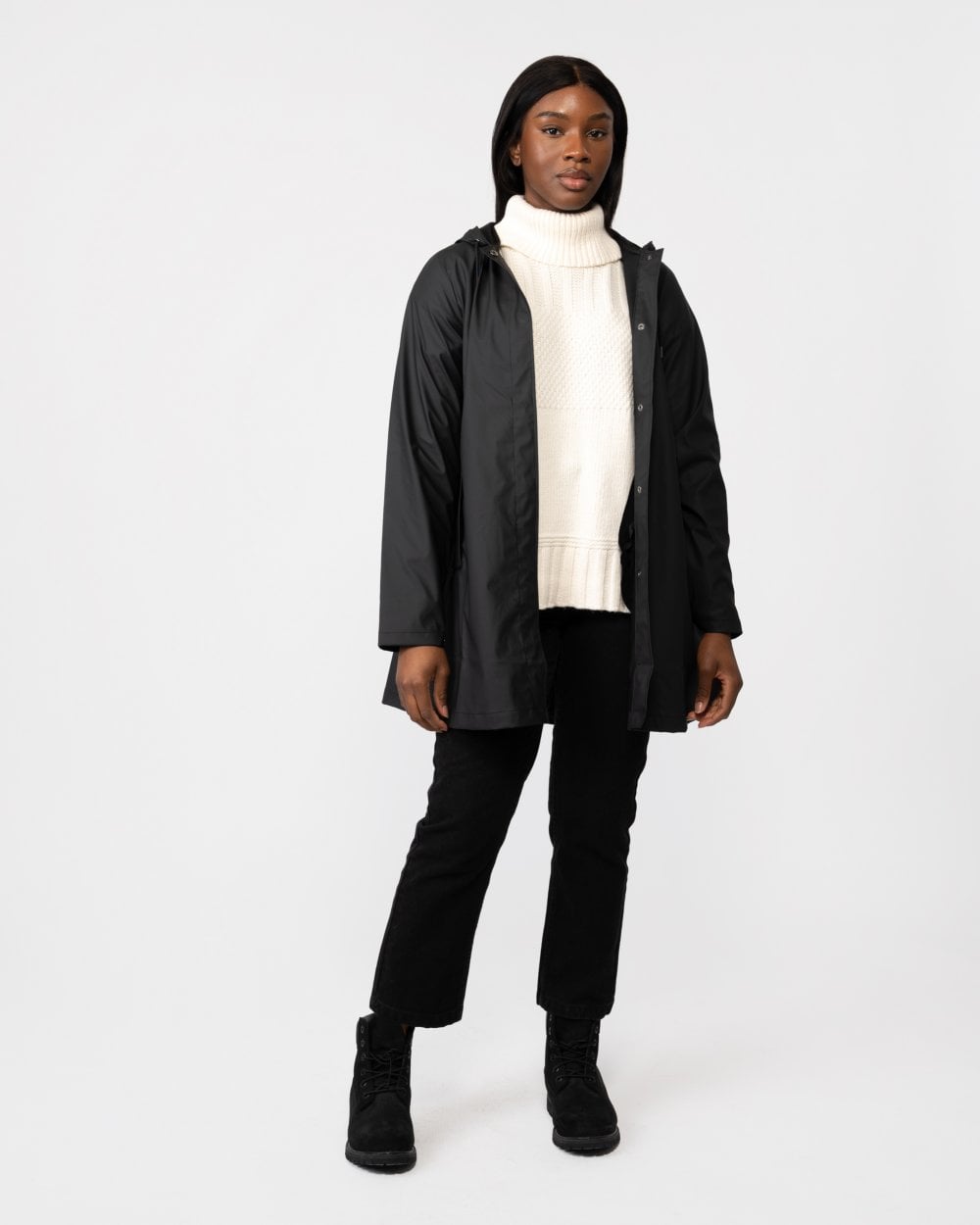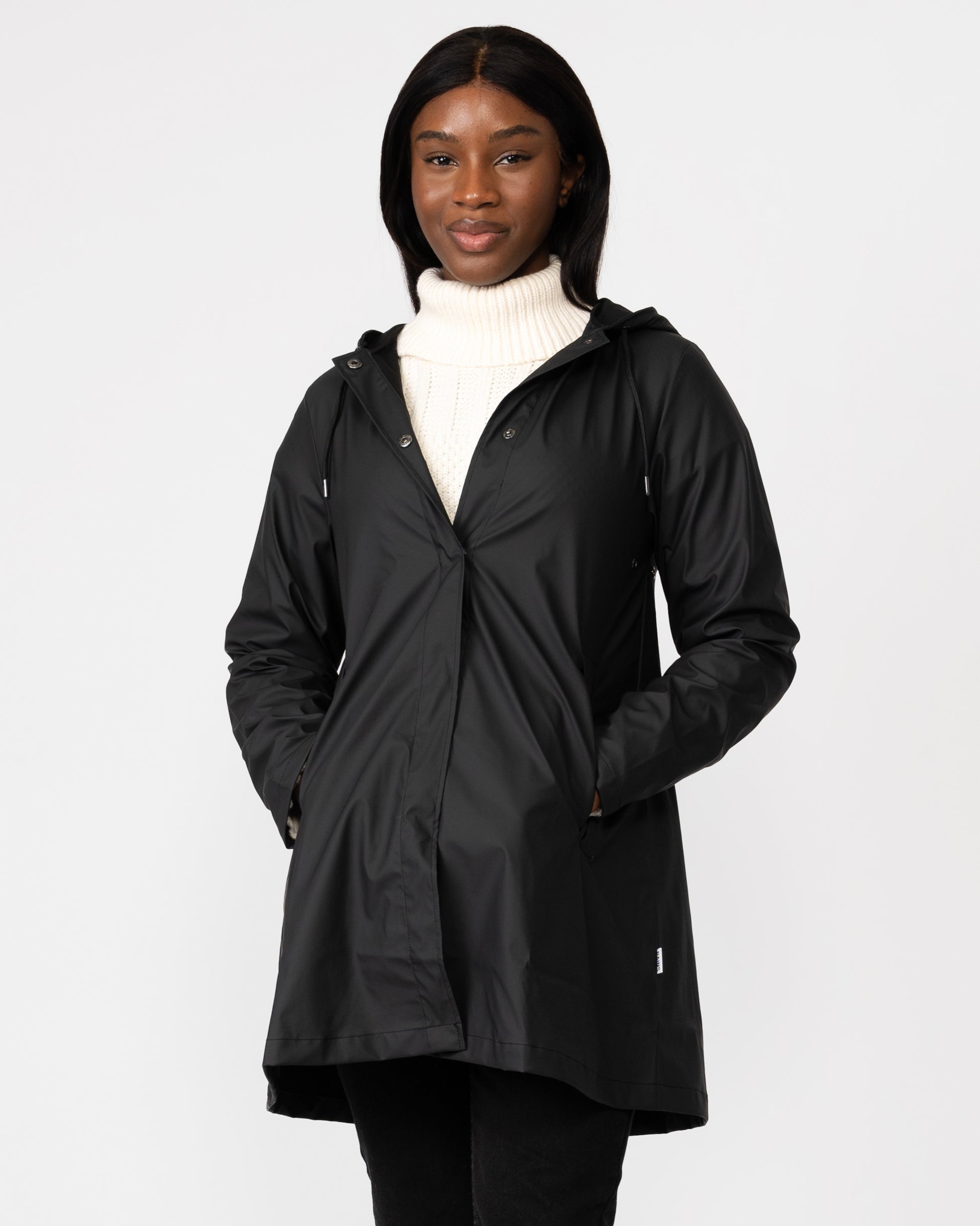 A-line Jacket is a women’s raincoat characterized by its A-shaped silhouette that gradually builds in volume from chest to hem. A-line Jacket features a drawstring hood with built-in cap, two side pockets and snap adjustable cuffs. The jacket is completed with hidden snap buttons and a front placket.
