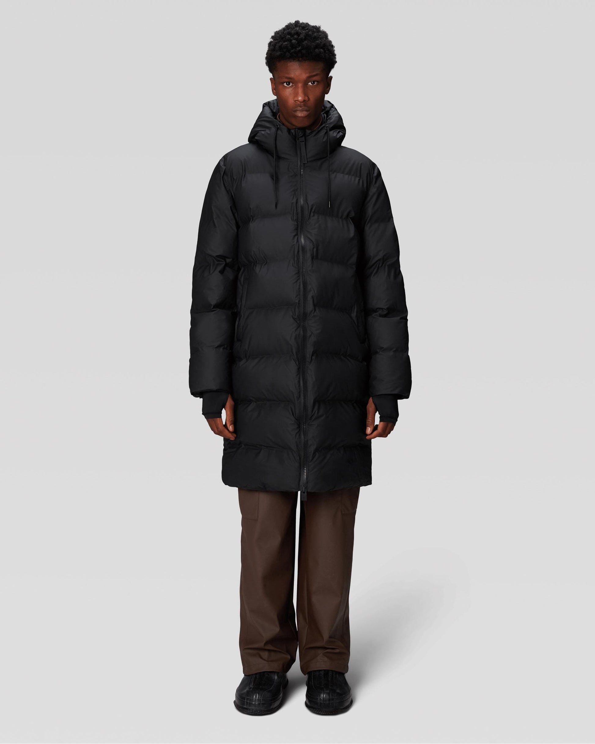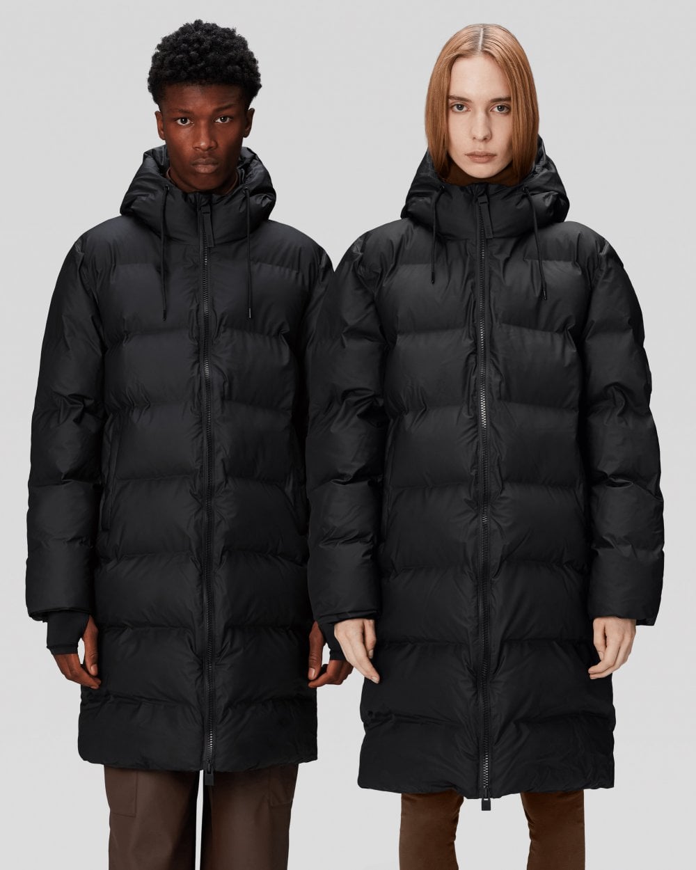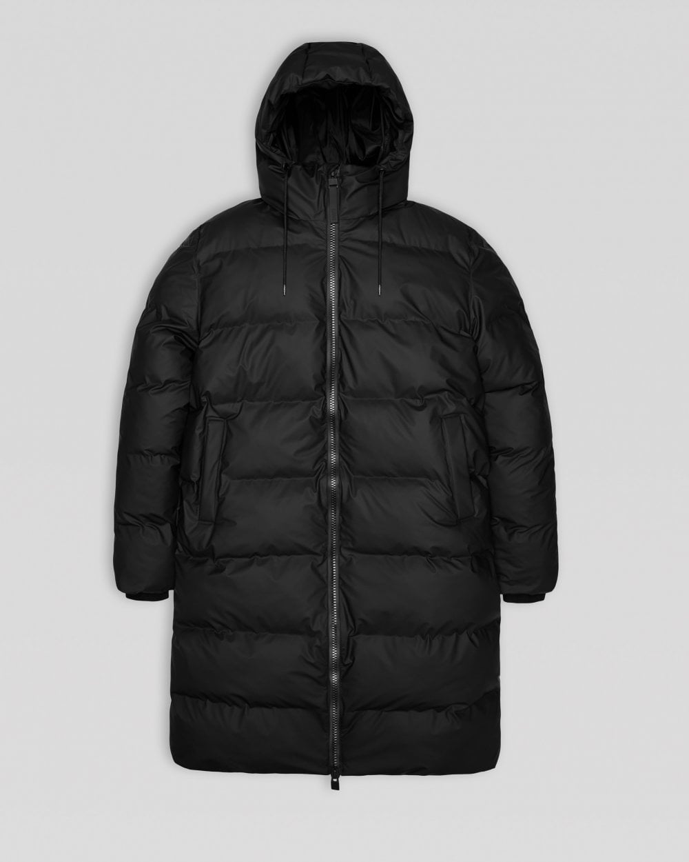 Rains Alta Long Unisex Puffer Jacket in 01 Black