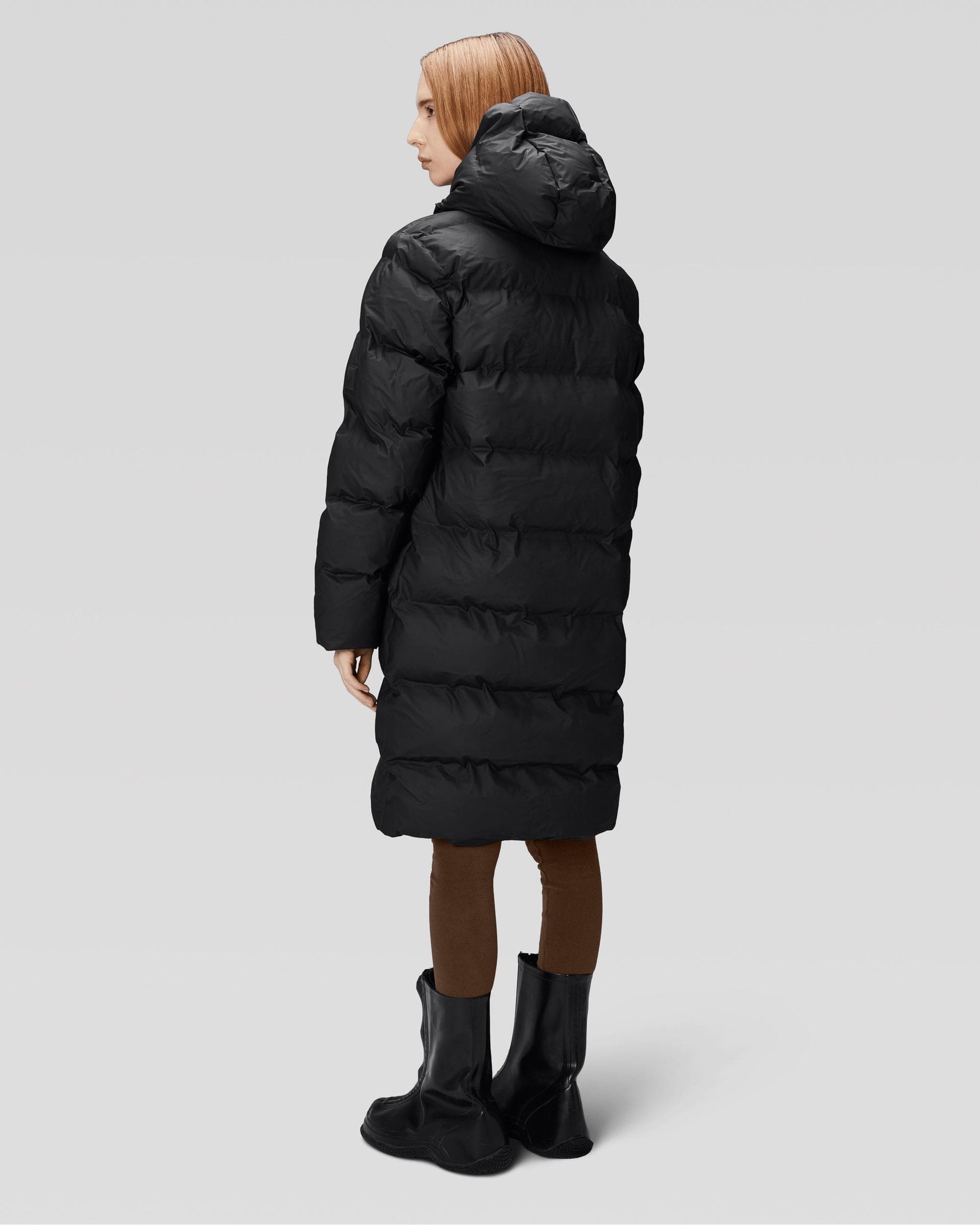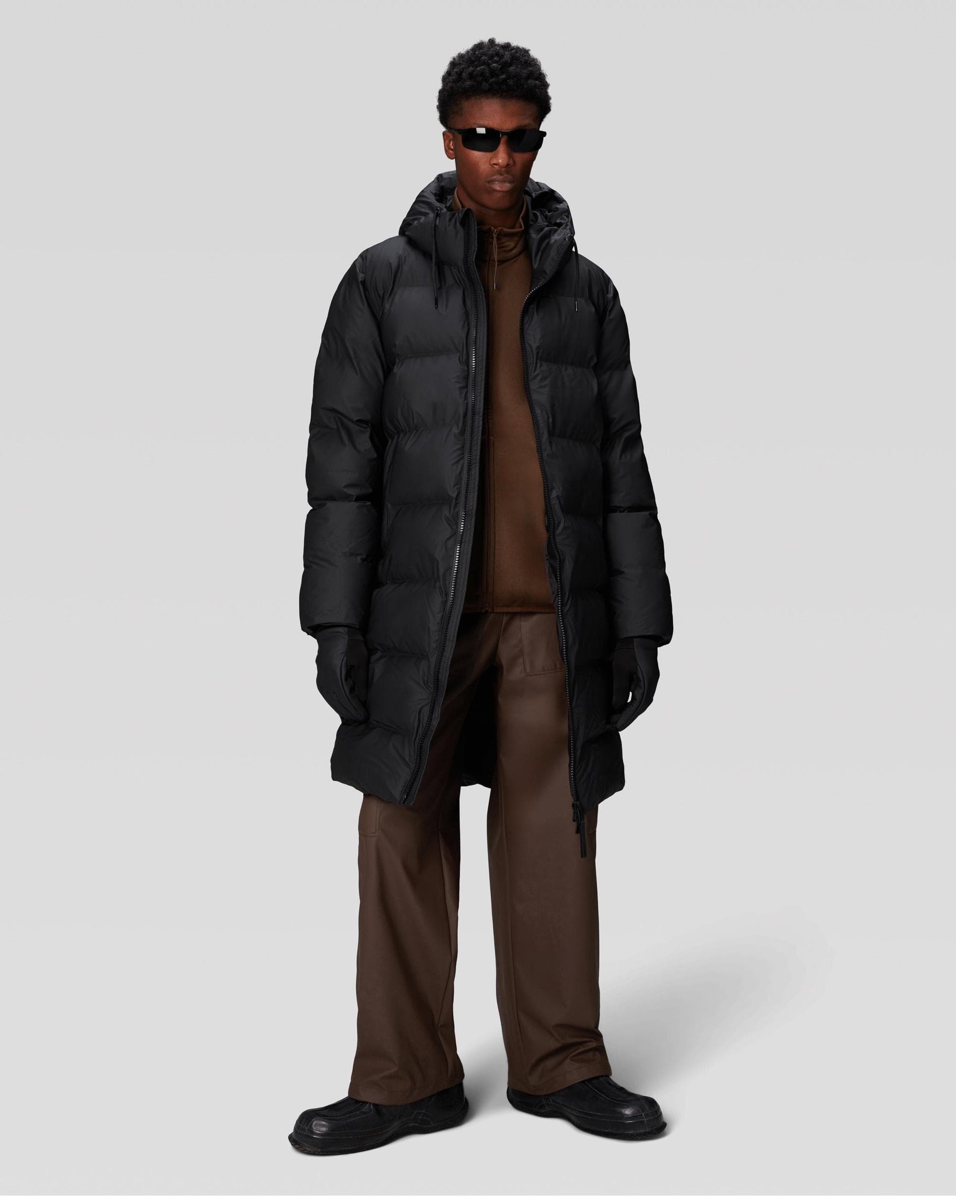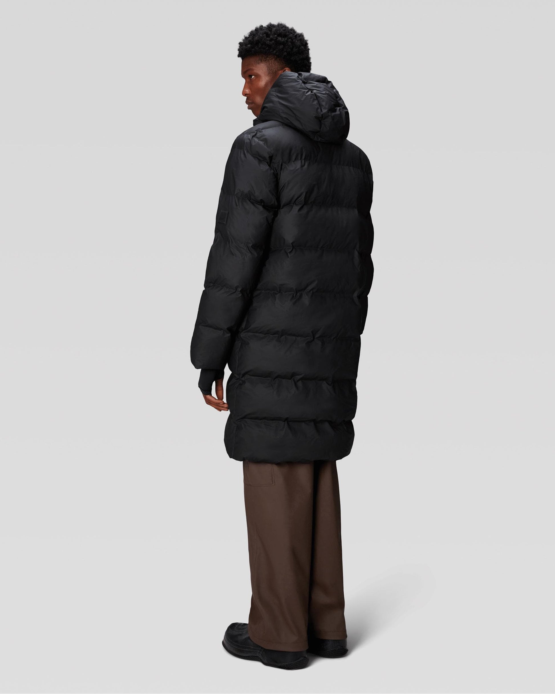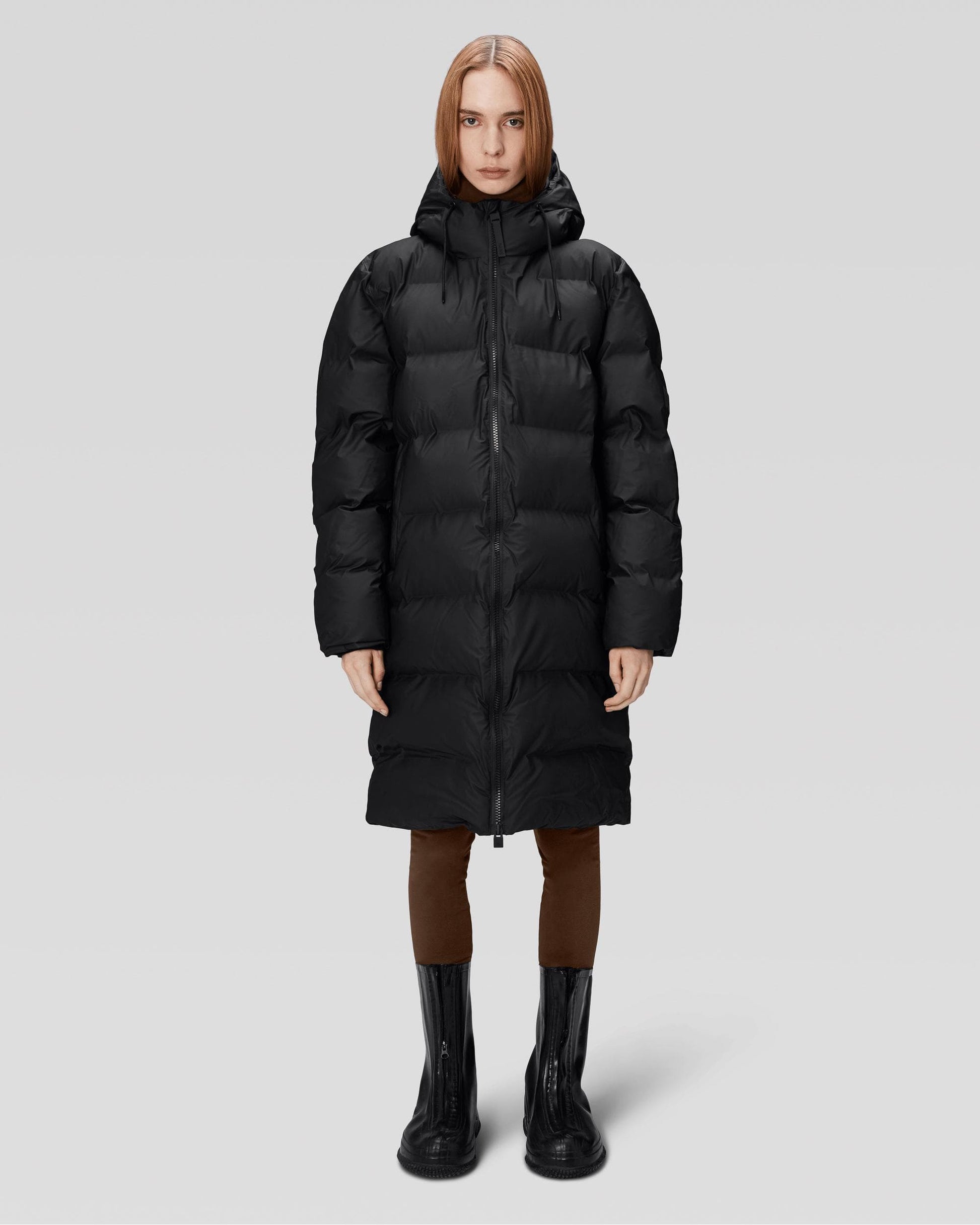 Rains Alta Long Unisex Puffer Jacket in 01 Black