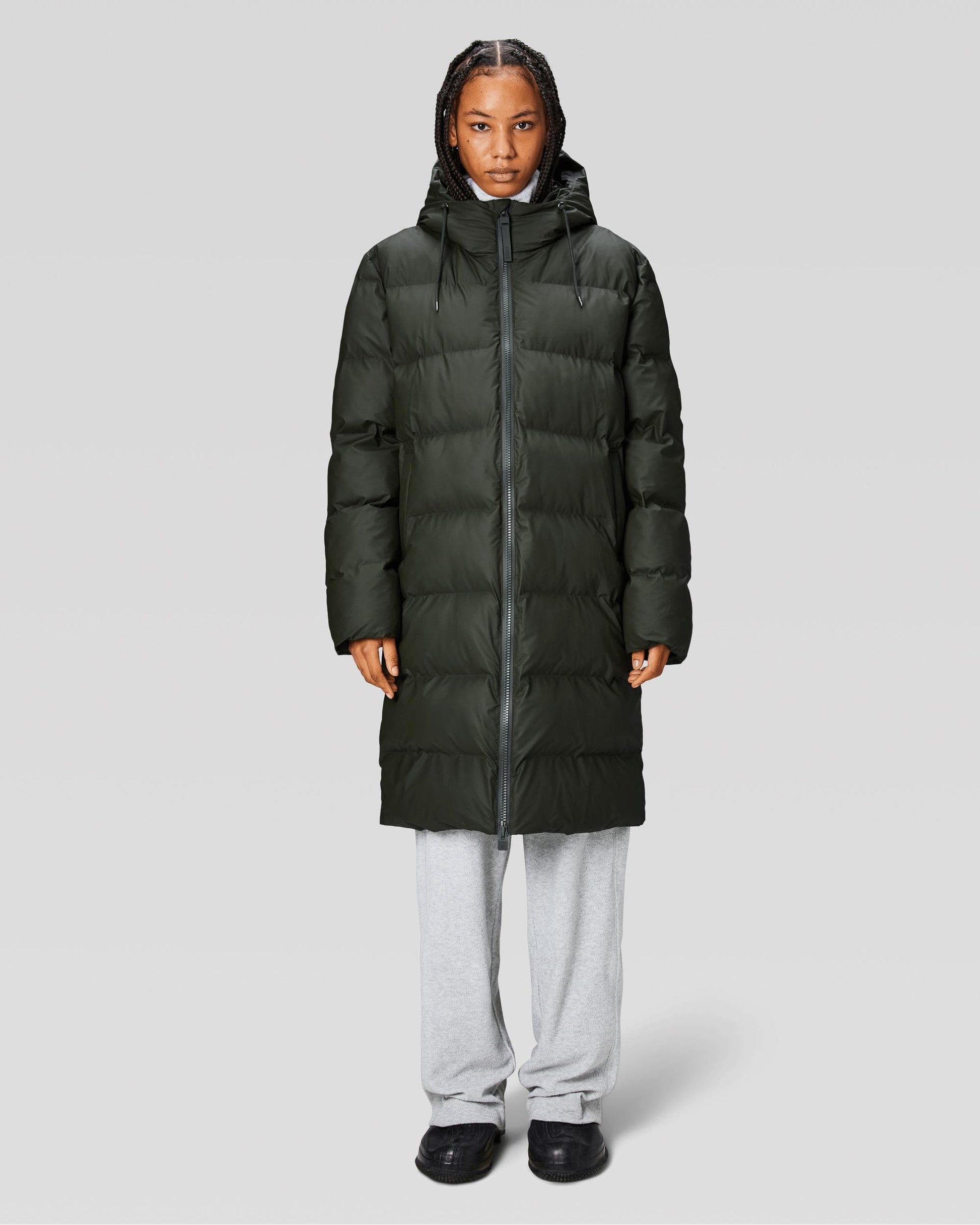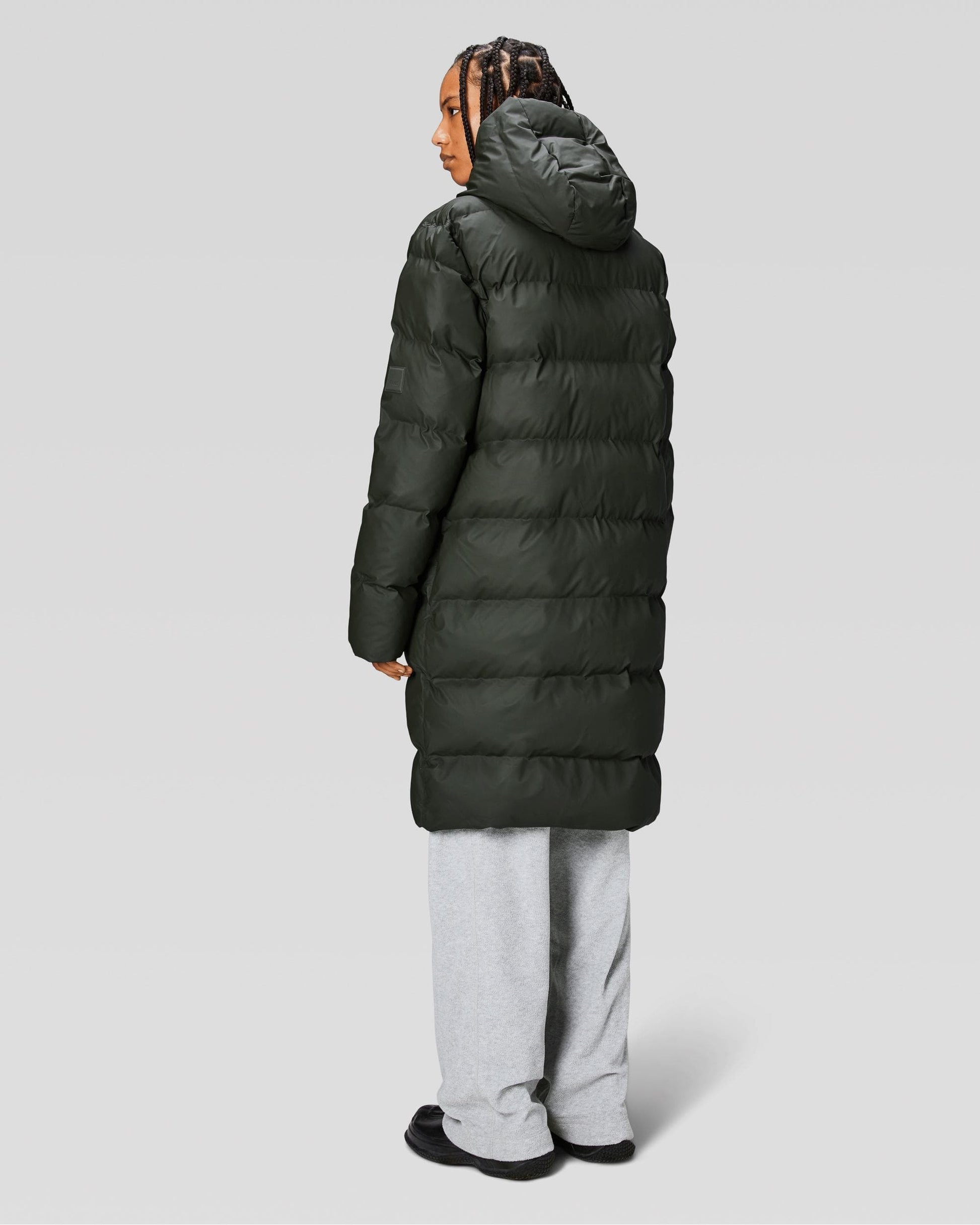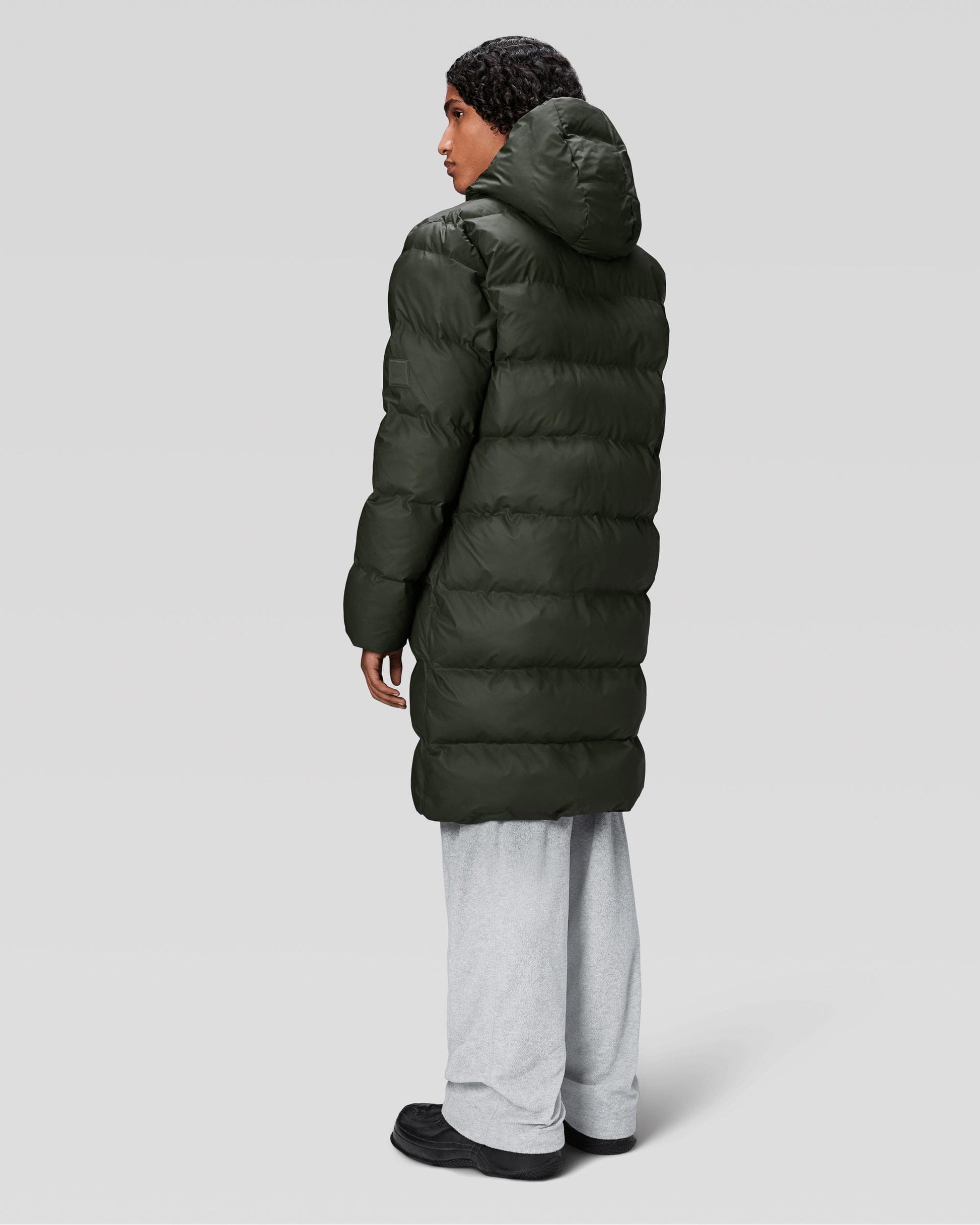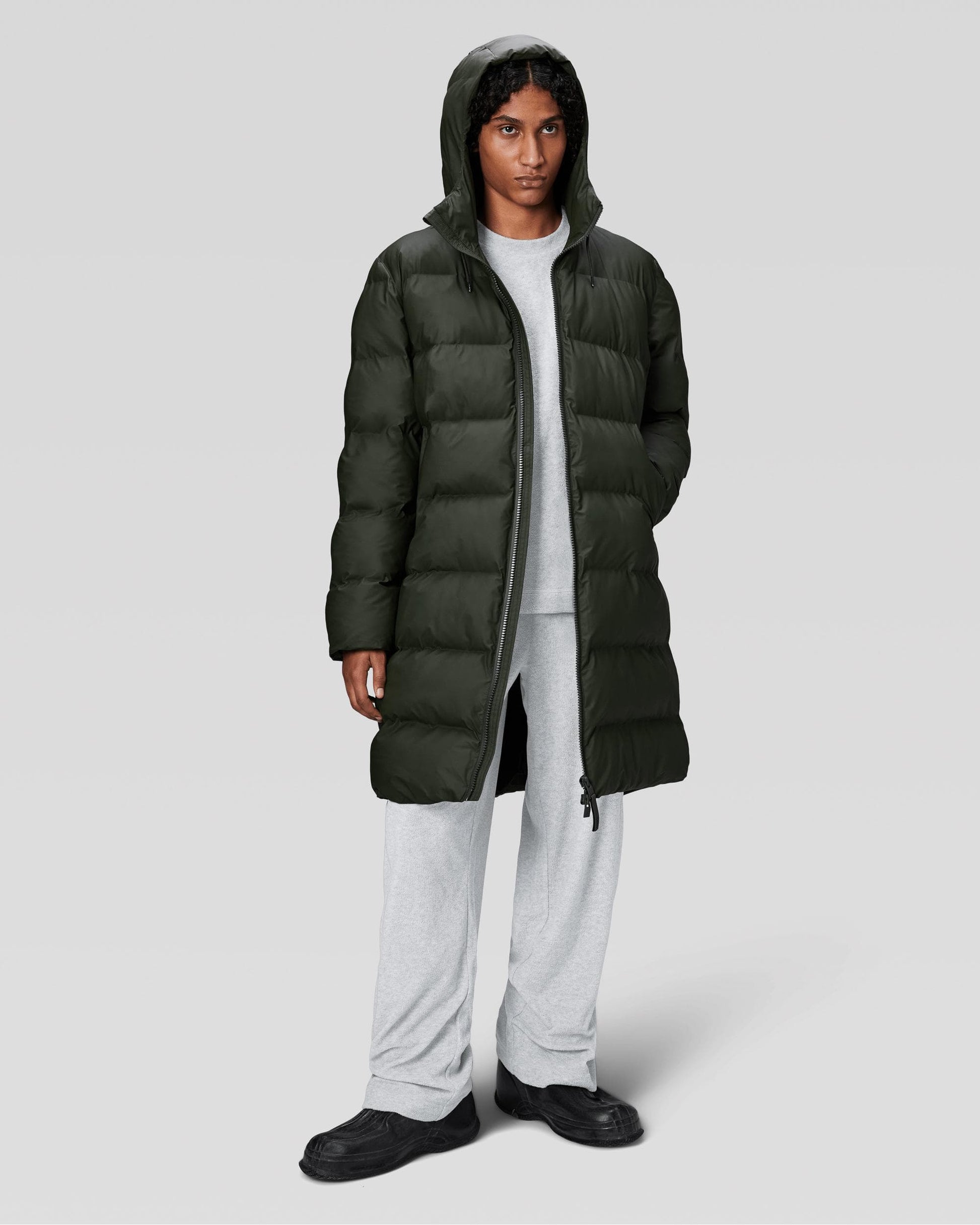Rains Alta Long Unisex Puffer Jacket in 03 Green