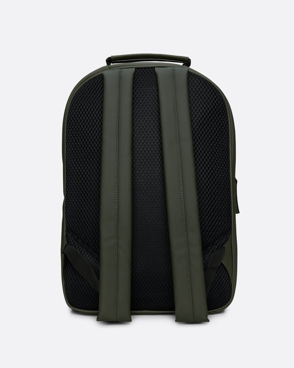 Book Daypack Large features a carrying handle on top, breathable mesh panel on the back and adjustable backstraps for comfort. The padded pocket fits a 16” laptop making this waterproof design a perfect tech-ready staple for commuting on bike or by foot.
