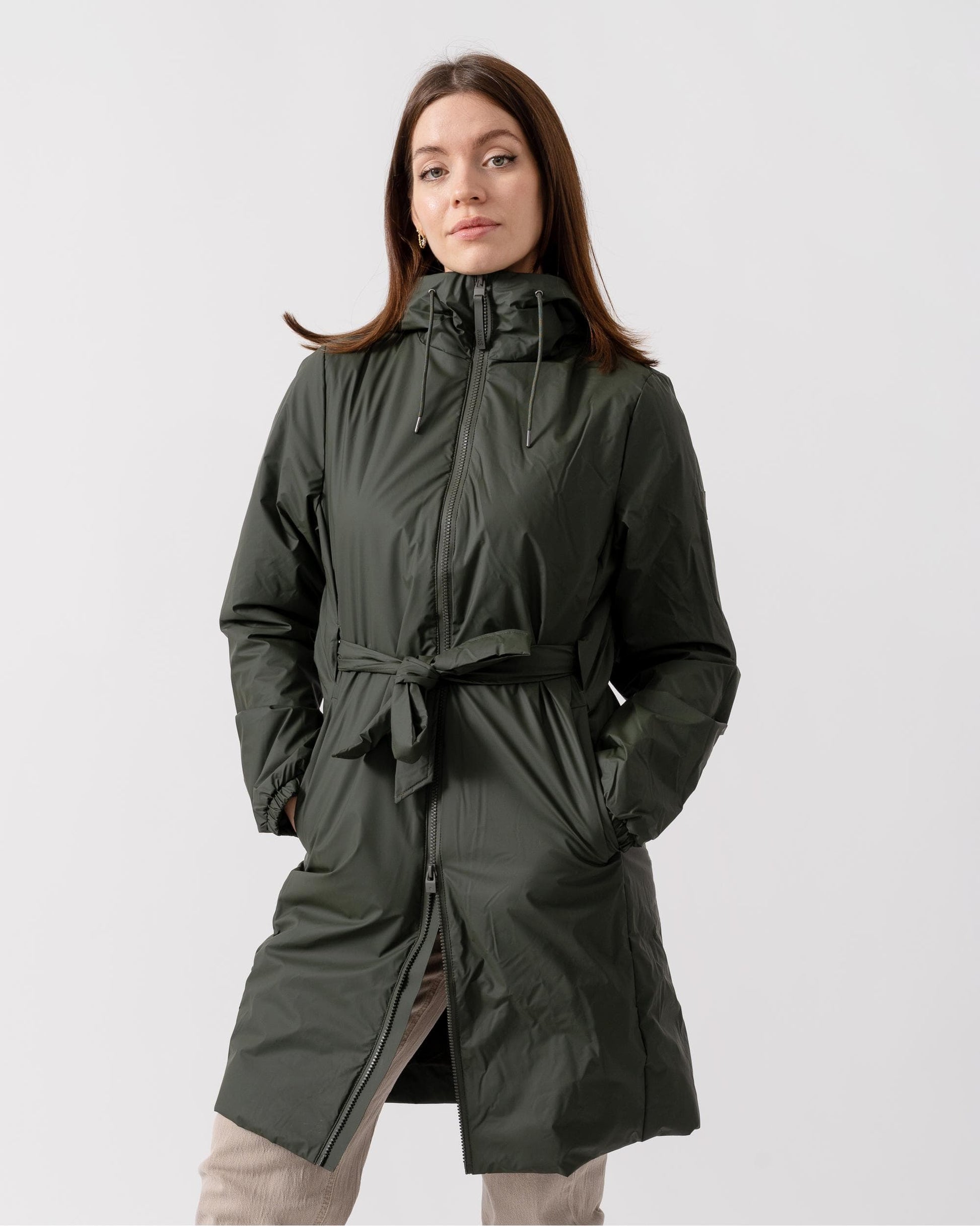 Rains Lohja Long Insulated Curve Jacket in 03 Green