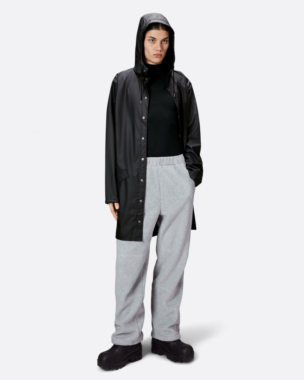 Long Jacket is cut from Rains' signature PU fabric and features welded seams. The finish is lightweight with a smooth feel.