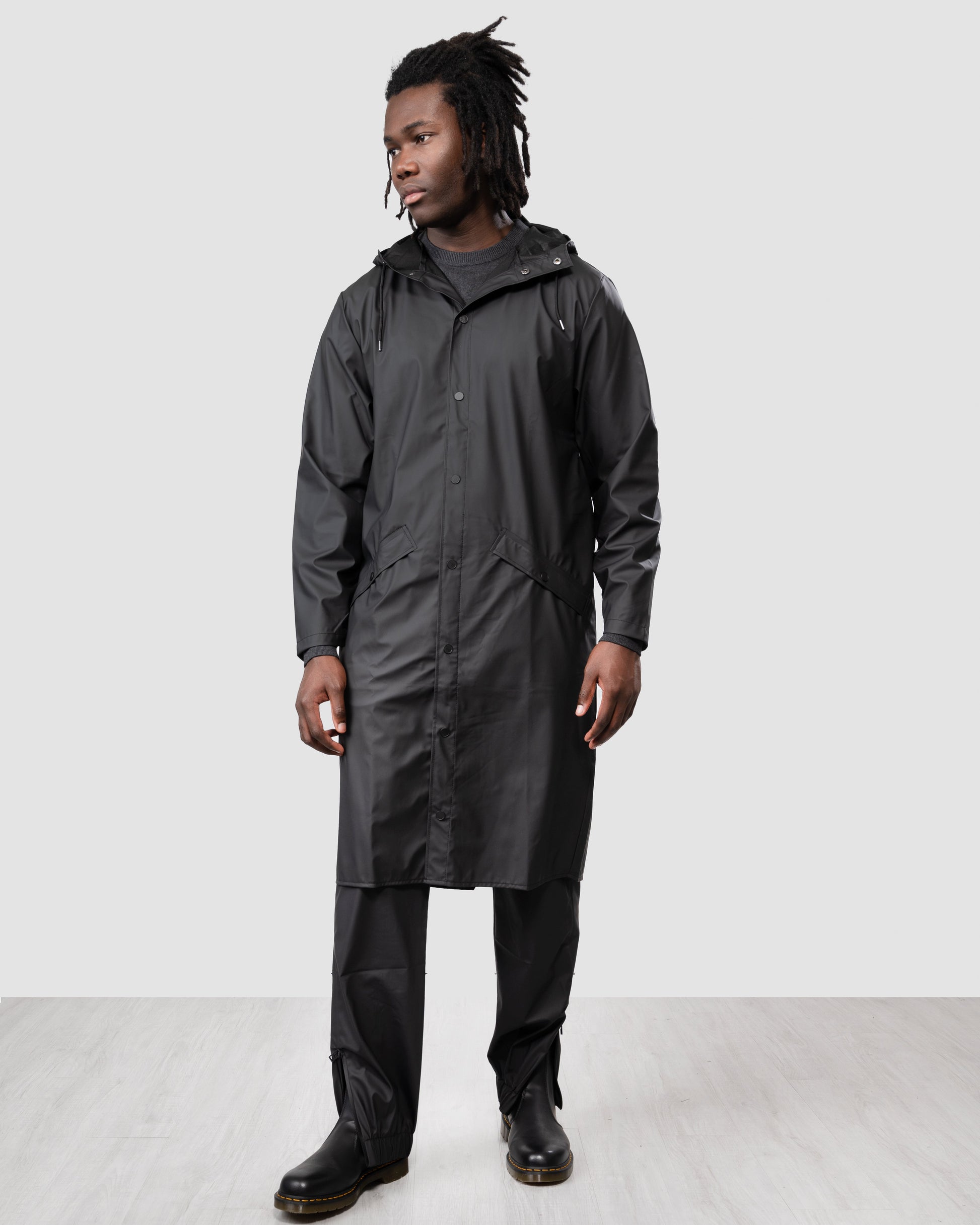 Longer Jacket is cut from Rains' signature PU fabric and features welded seams. The finish is lightweight with a smooth feel.