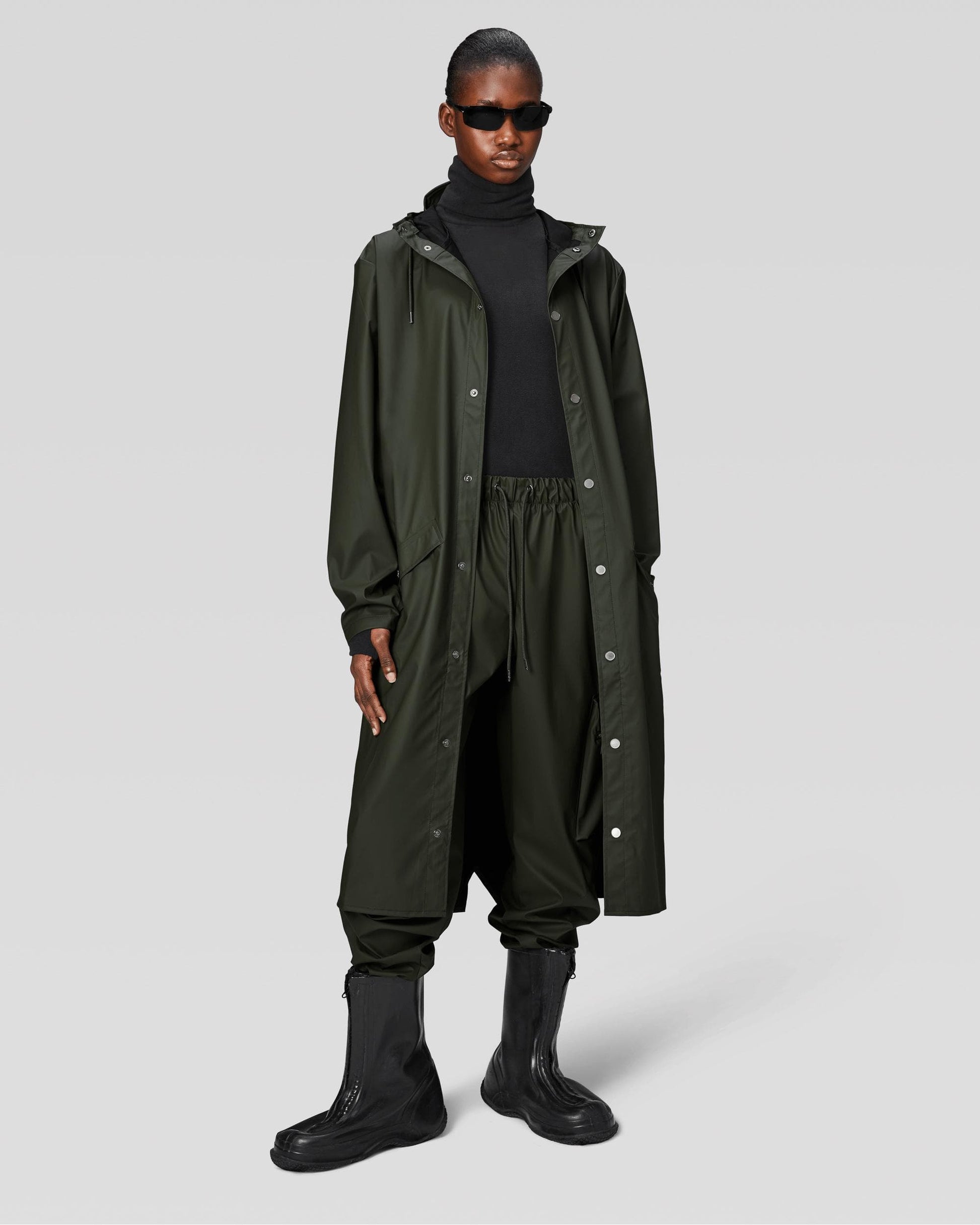 Longer Jacket is cut from Rains' signature PU fabric and features welded seams. The finish is lightweight with a smooth feel.