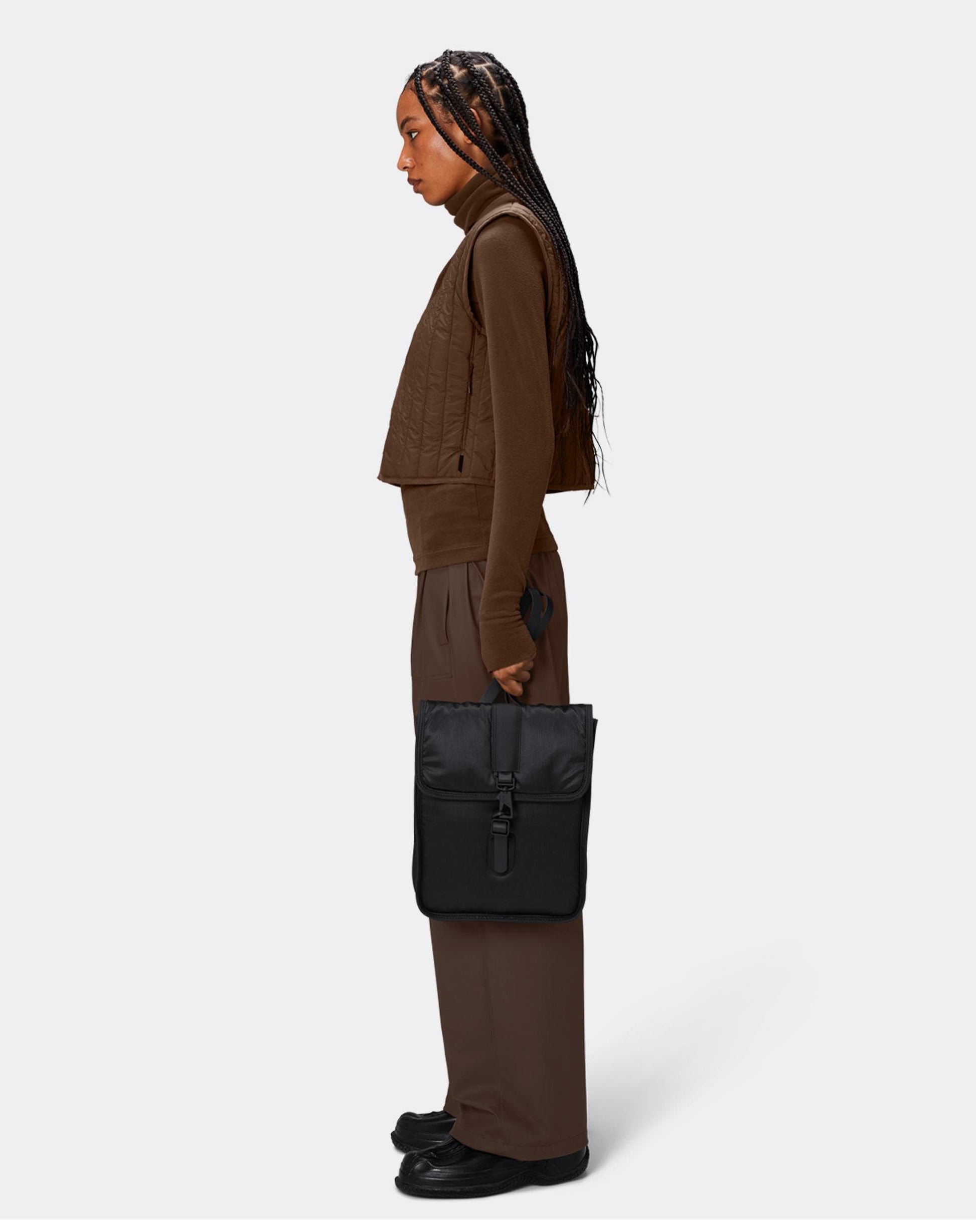 Puffed Backpack Micro is cut from Rains' signature waterproof PU fabric, engineered for carrying strength, durability and a smooth feel.