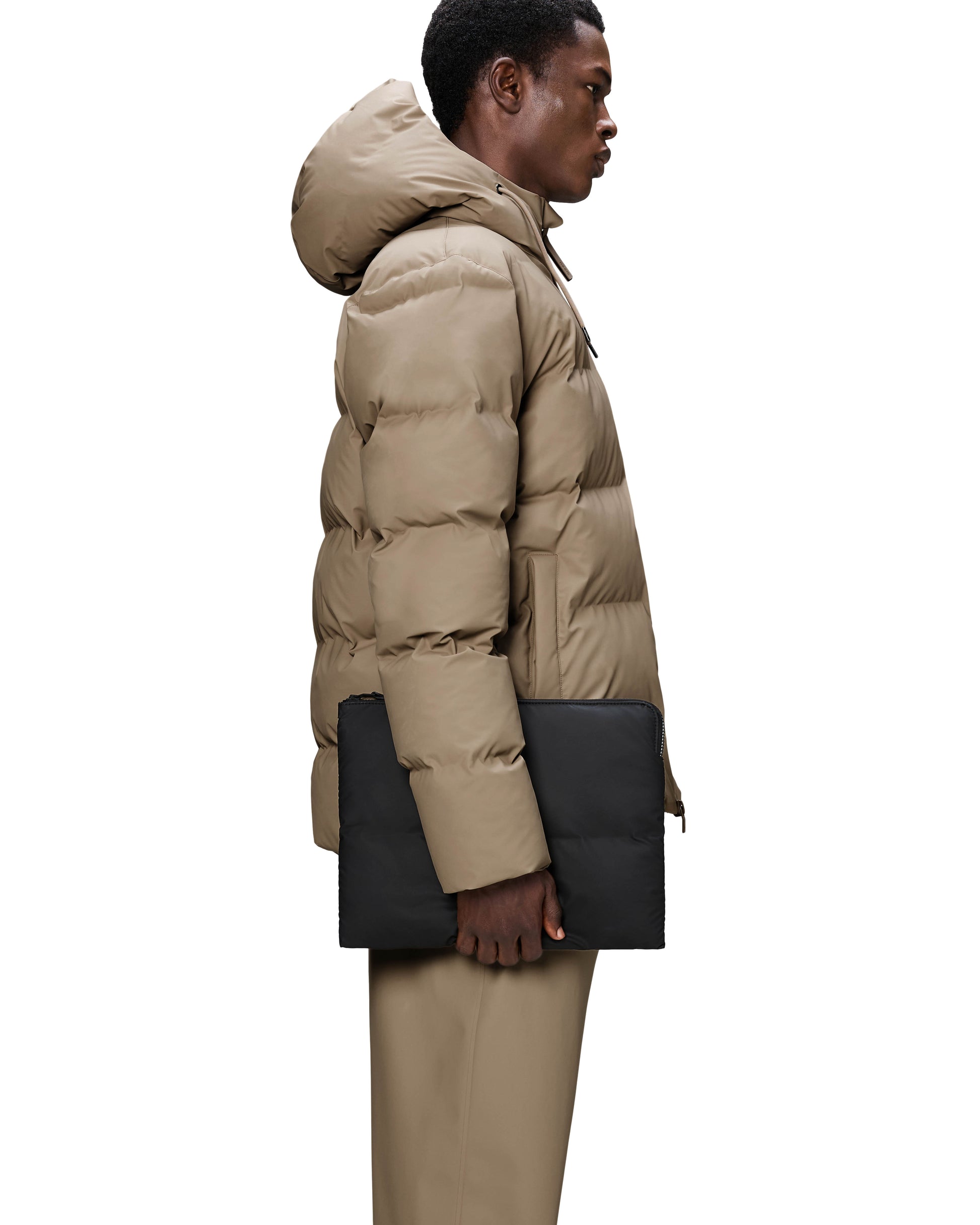 This laptop sleeve is cut from Rains’ signature waterproof PU fabric. Design has a puffed and soft aesthetic with great durability.
