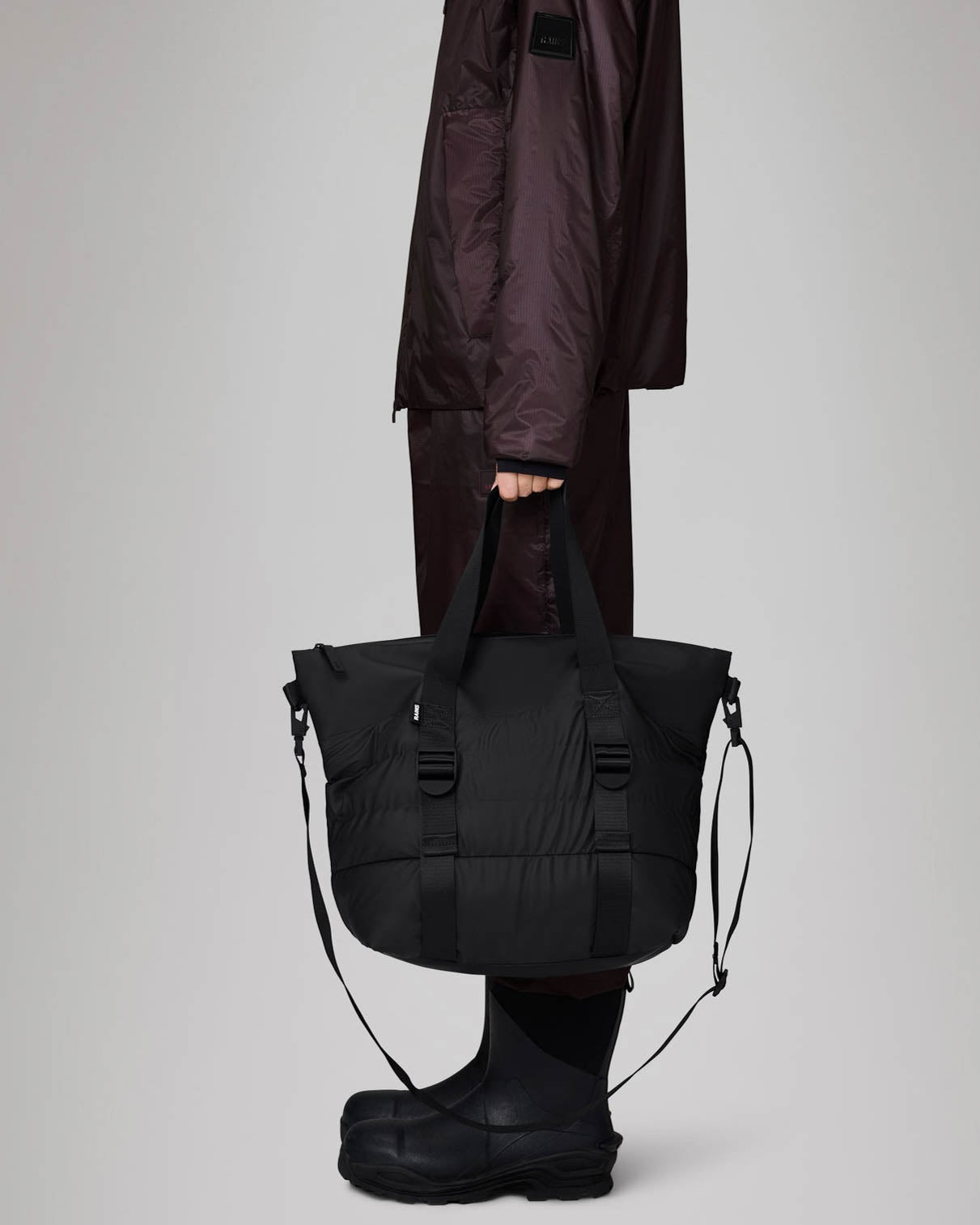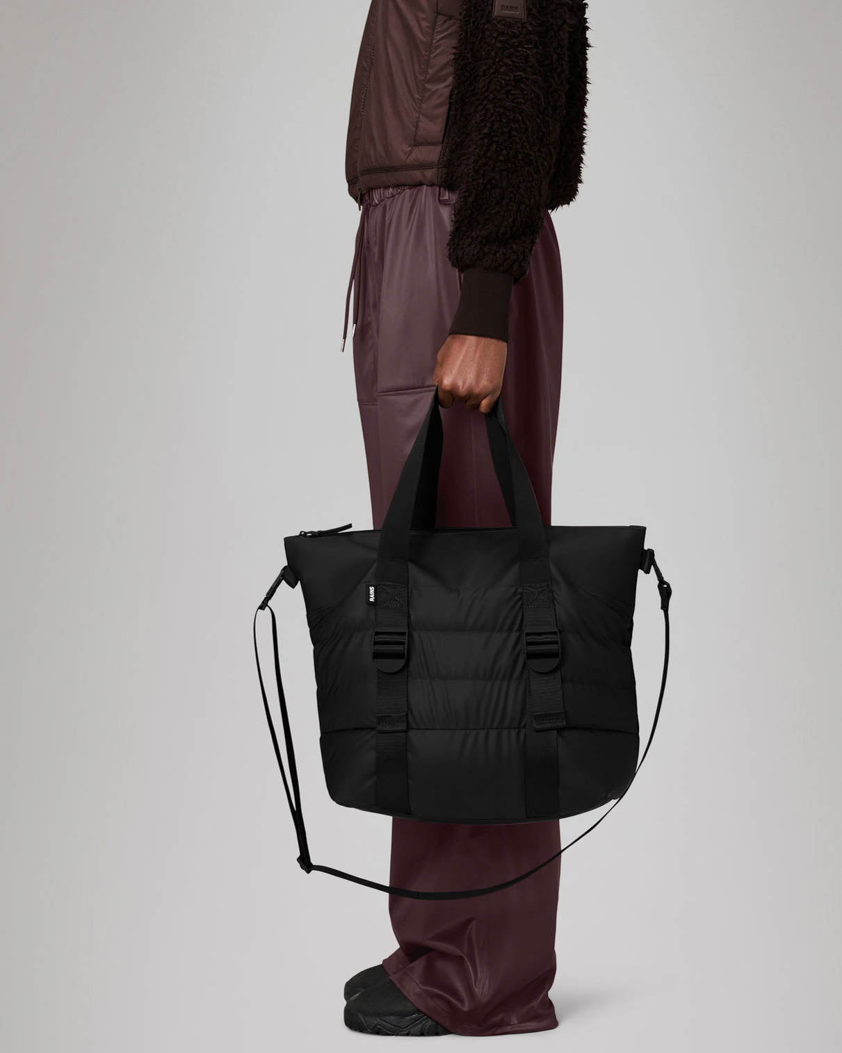 Puffer Mix Tote Bag Mini mixes the iconic puffer aesthetic with Rains’ well-known functionality and durability. It’s cut from signature waterproof PU fabric, engineered for carrying strength and a smooth feel.