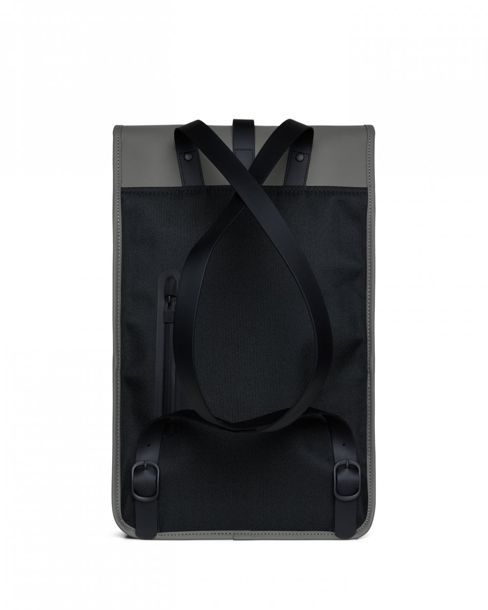 Backpack is cut in Rains’ signature waterproof PU fabric, engineered for carrying strength, durability, and a smooth feel.