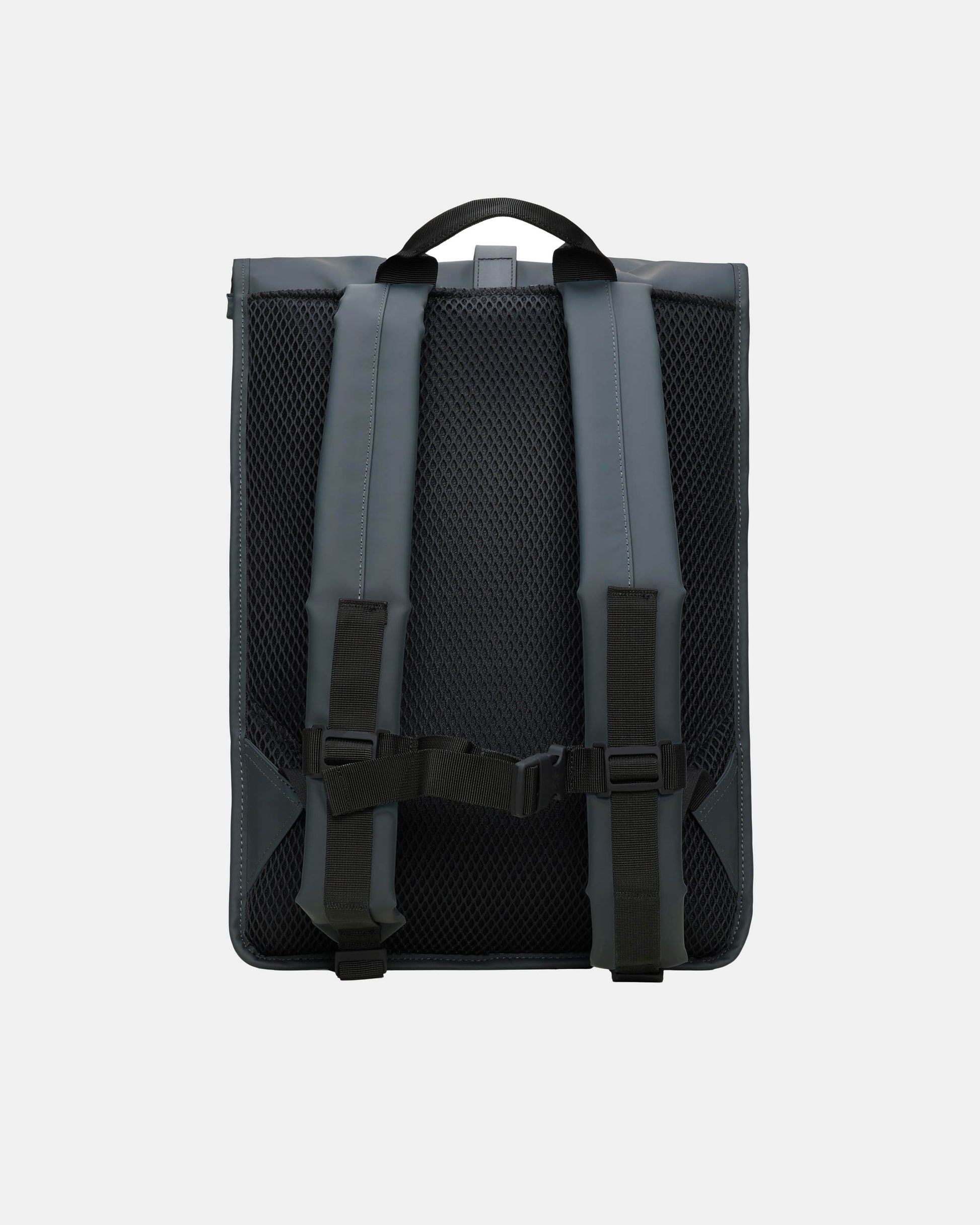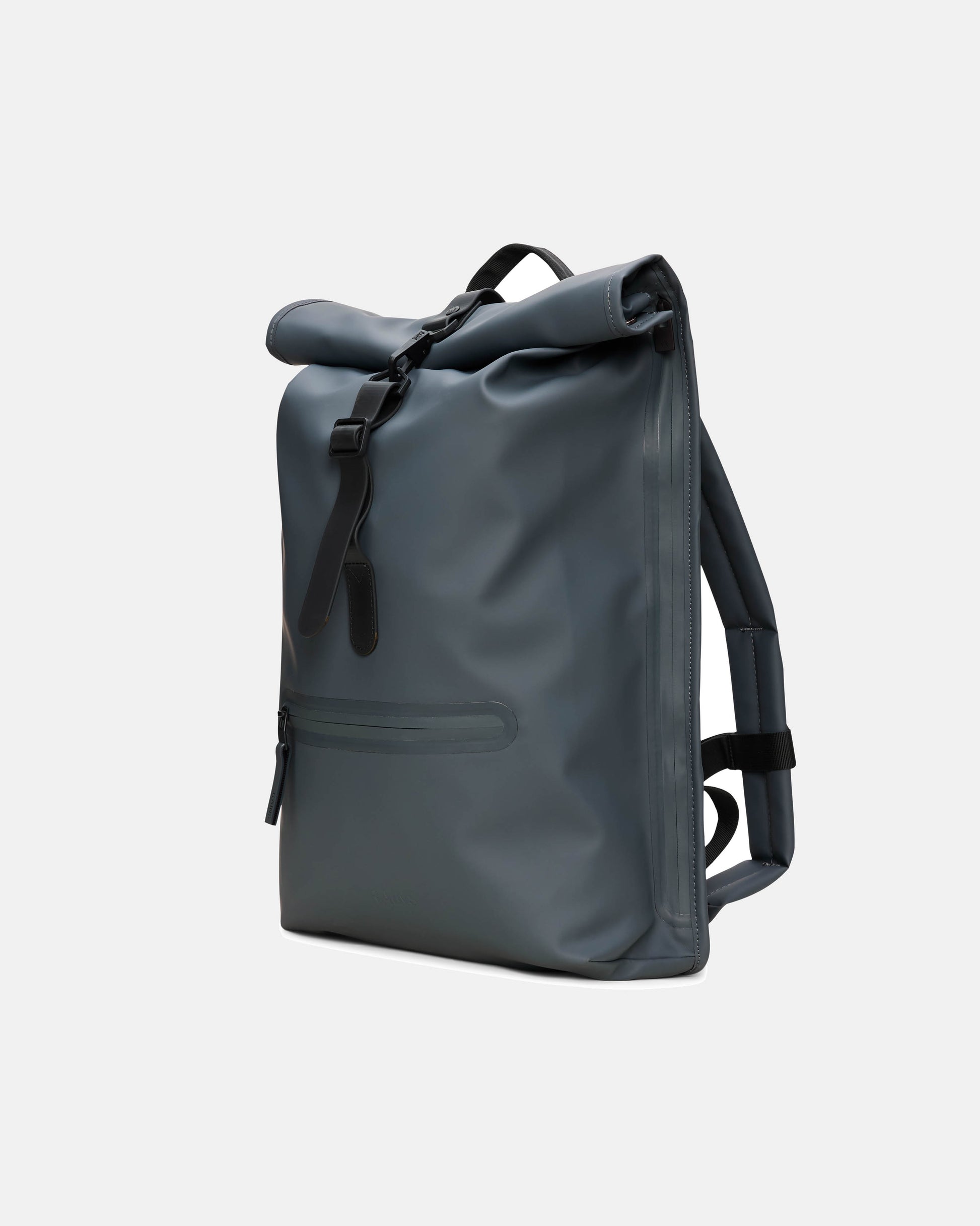 Rolltop Rucksack is cut from Rains' signature PU fabric, engineered for carrying strength, durability and a smooth feel.