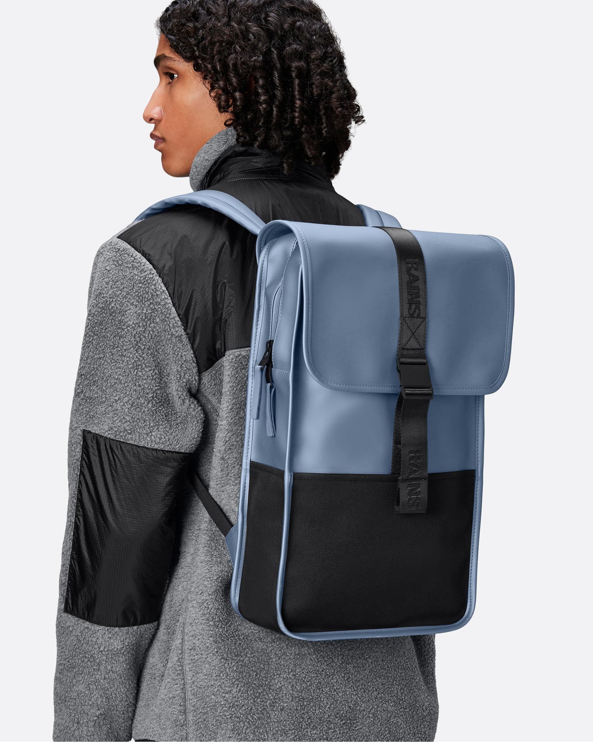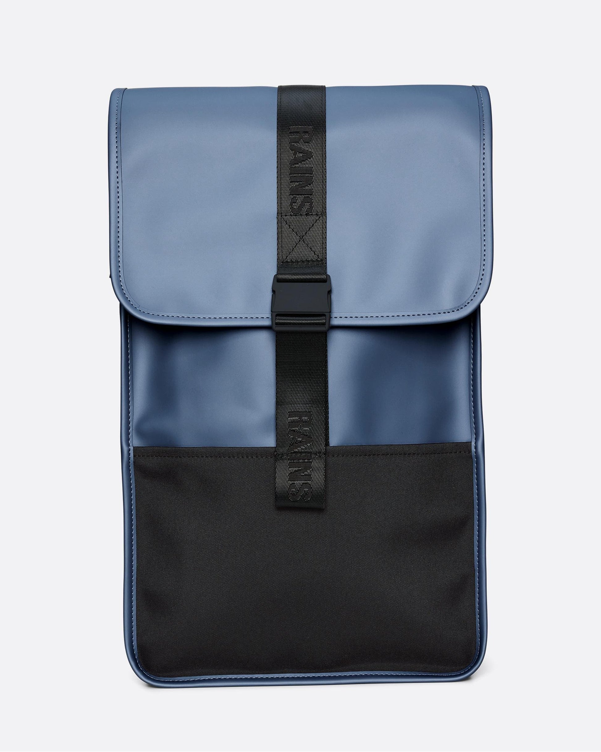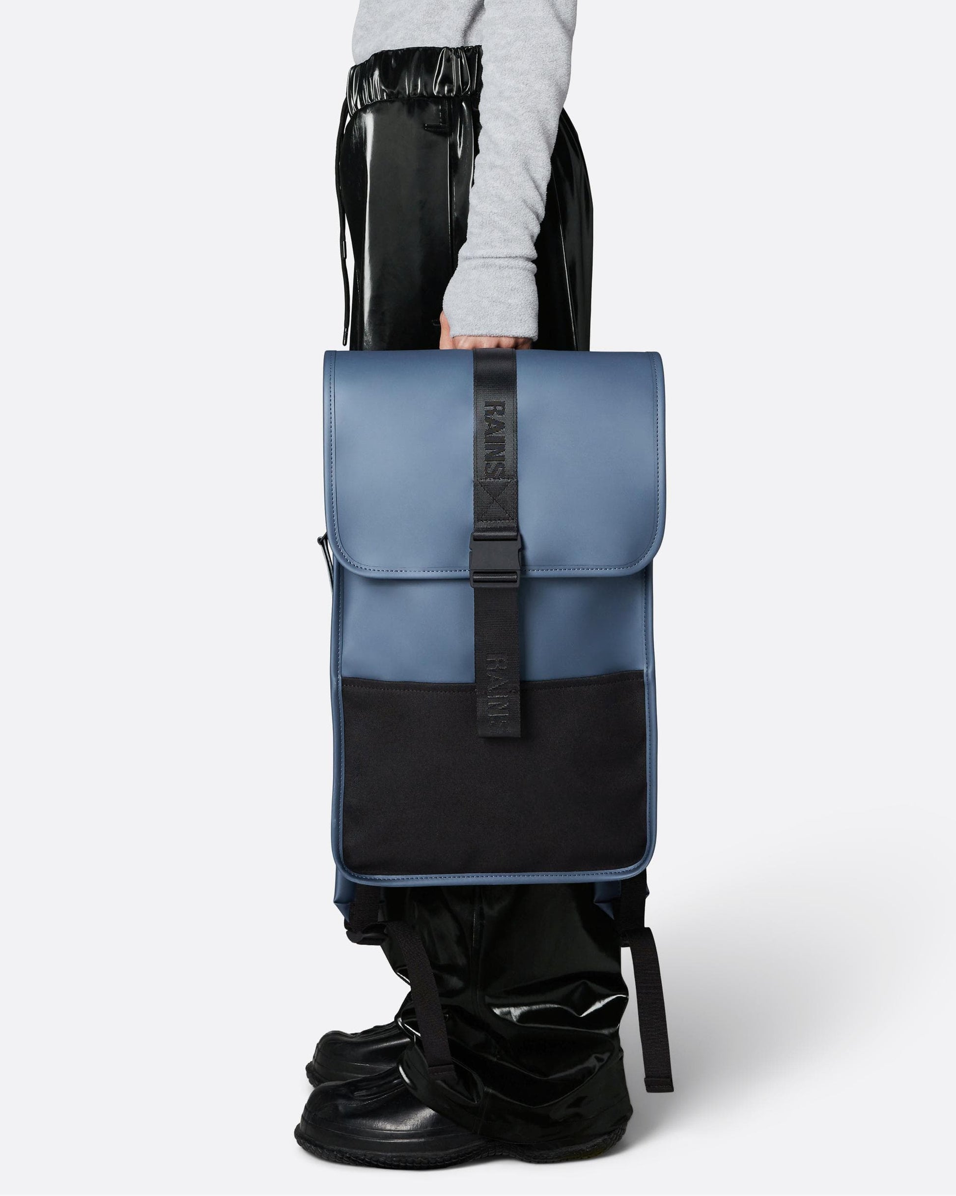 Trail Backpack takes clear inspiration from the Rains classic, Backpack. The design is characterized by its prominent flap and central webbing strap with signature rubberized buckle. This contemporary waterproof backpack has an internal laptop pocket, spacious main compartment, and padded mesh back panel.