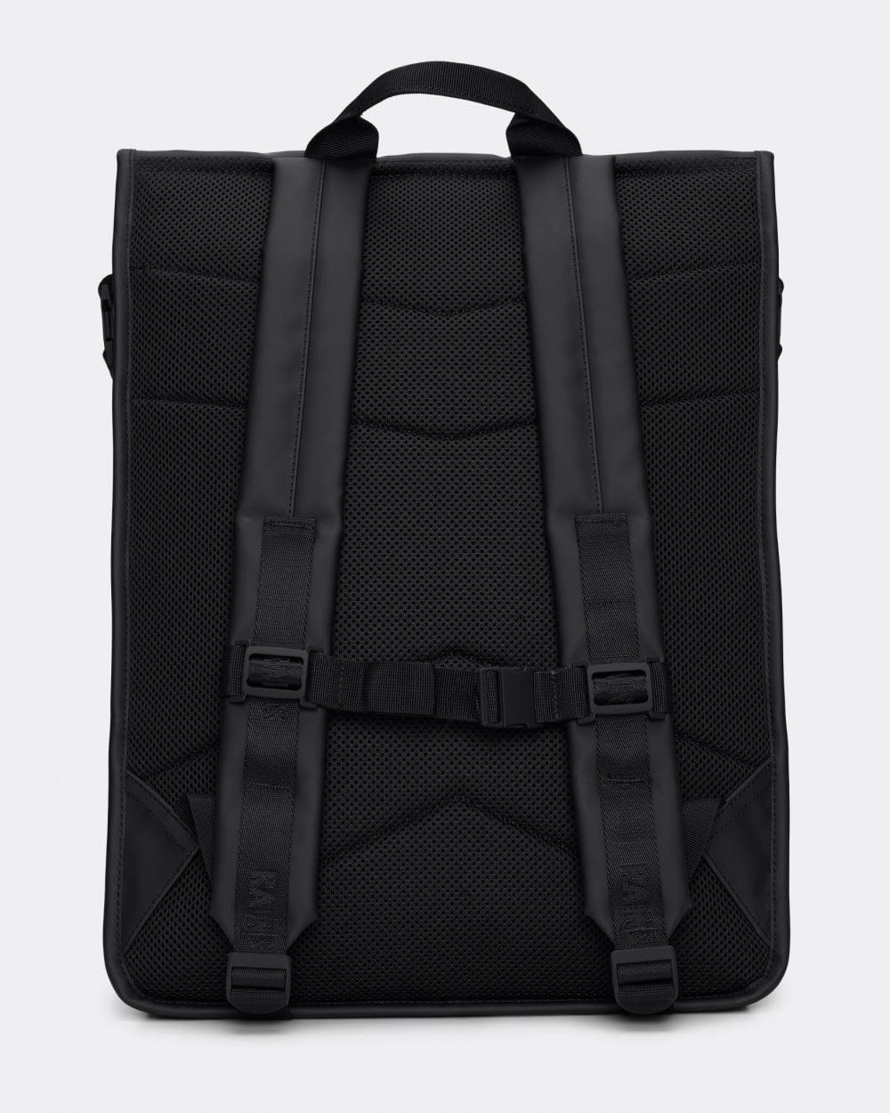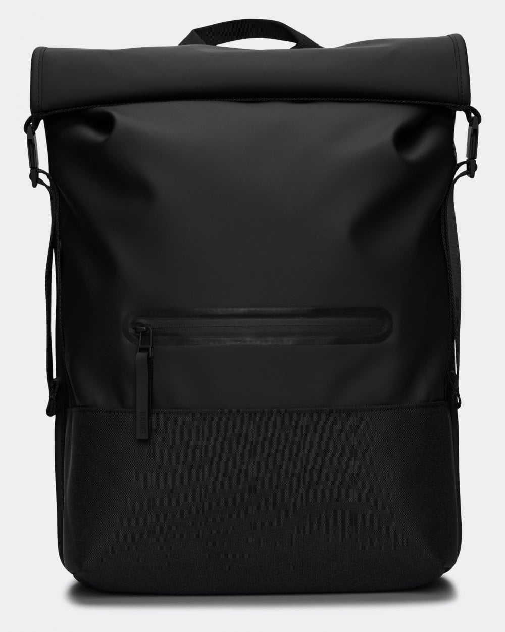 Trail Rolltop Backpack is cut from Rains' signature PU fabric, engineered for carrying strength, durability and a smooth feel.