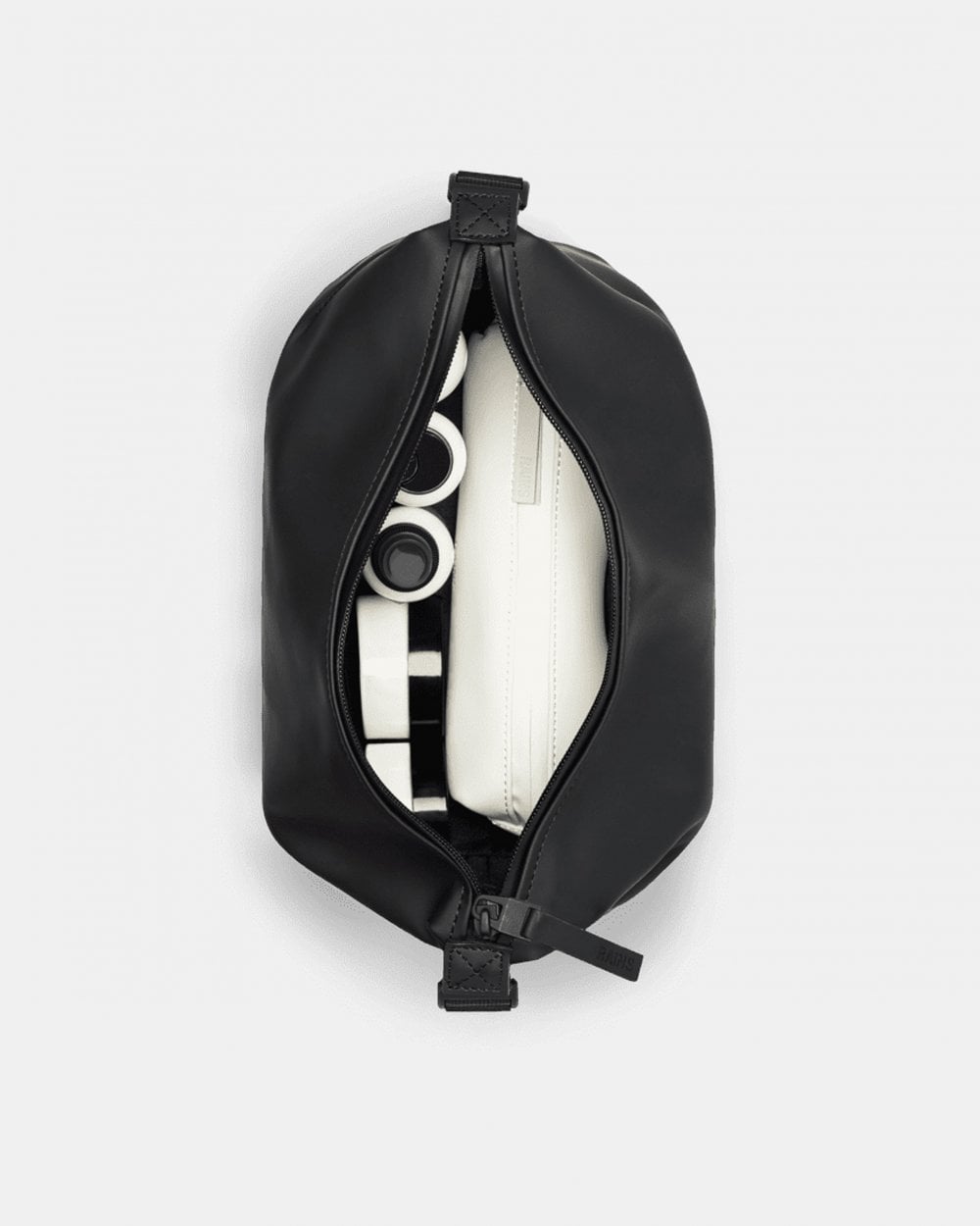 Hilo Wash Bag is cut from Rains’ signature waterproof PU fabric, engineered for carrying strength, durability, and a smooth feel.