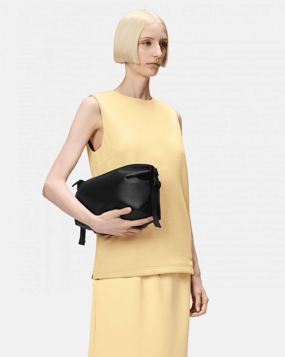 The waterproof design is characterized by its minimal silhouette, yet large main compartment accented by side-mounted buckles. The buckles can be adjusted to compress the design and keep contents in place, while helping to make the best use of luggage space.