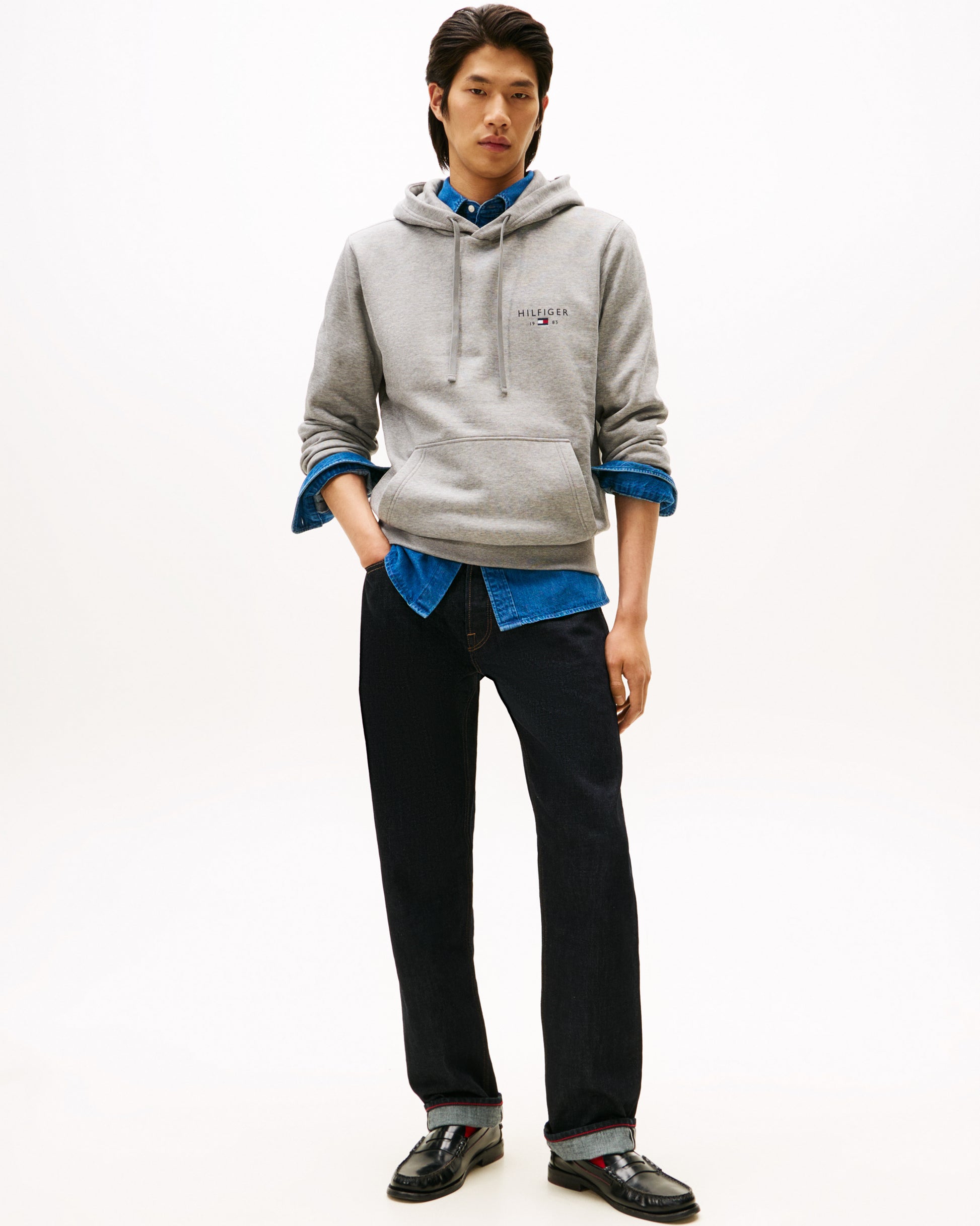 Tommy Hilfiger Brand Love Mens Small Hilfiger Logo Hoodie in Medium Grey Heather