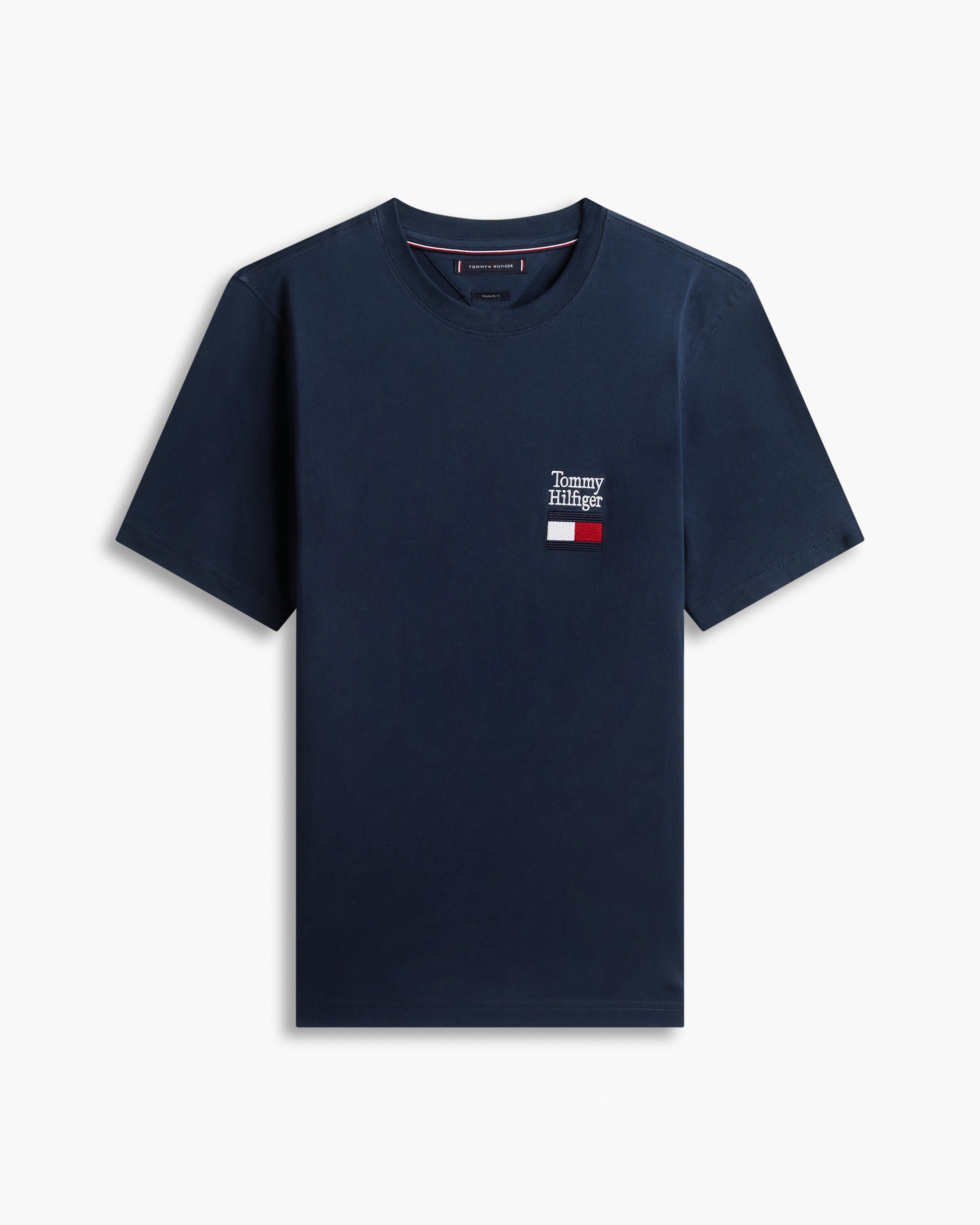 Discover designer mens short sleeve t-shirts & tops with Tommy Hilfiger's Brand Love Text Stack Mens T-Shirt in Desert Sky