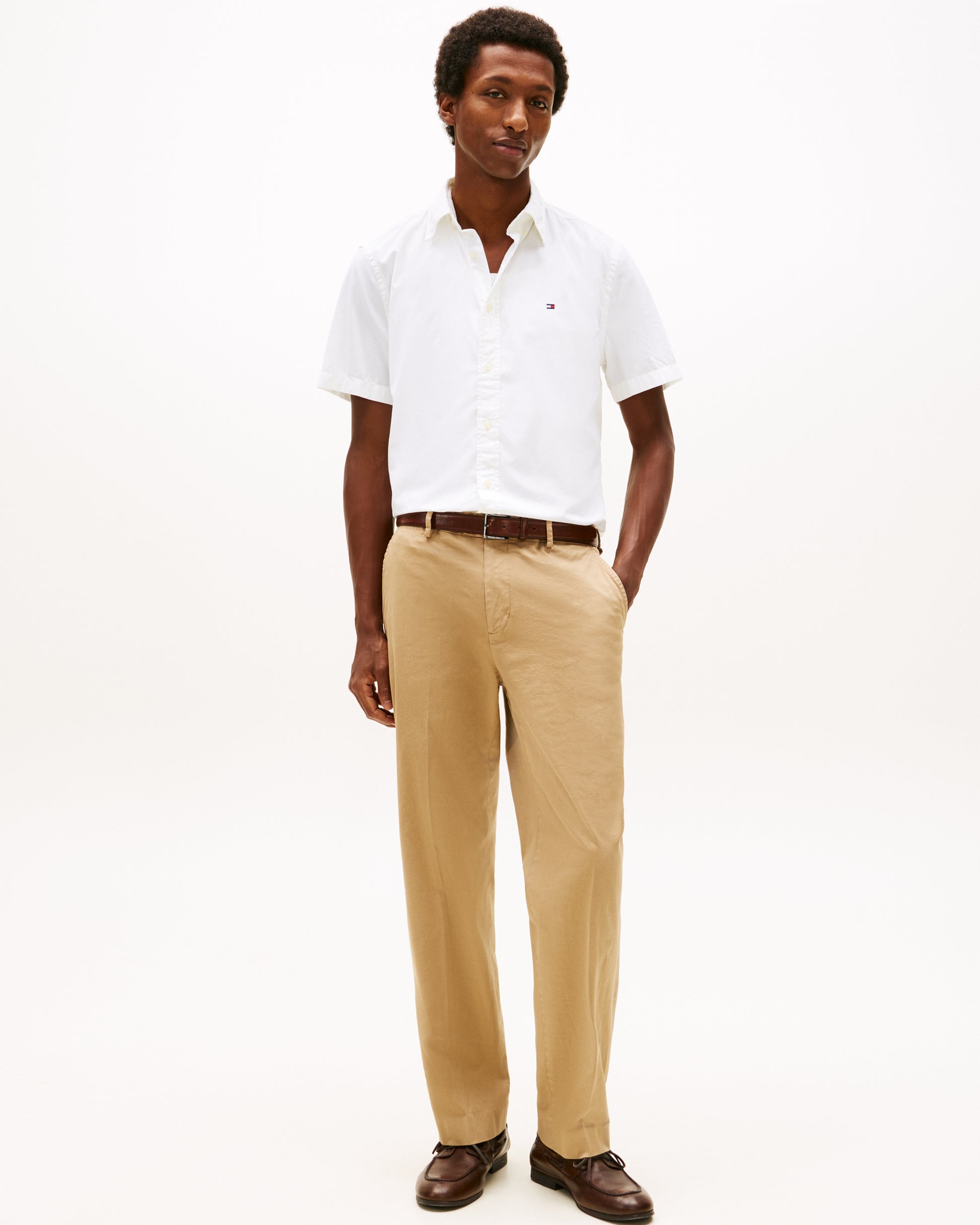 Tommy Hilfiger Core Flex Poplin Solid Mens Short Sleeve Shirt in Optic White