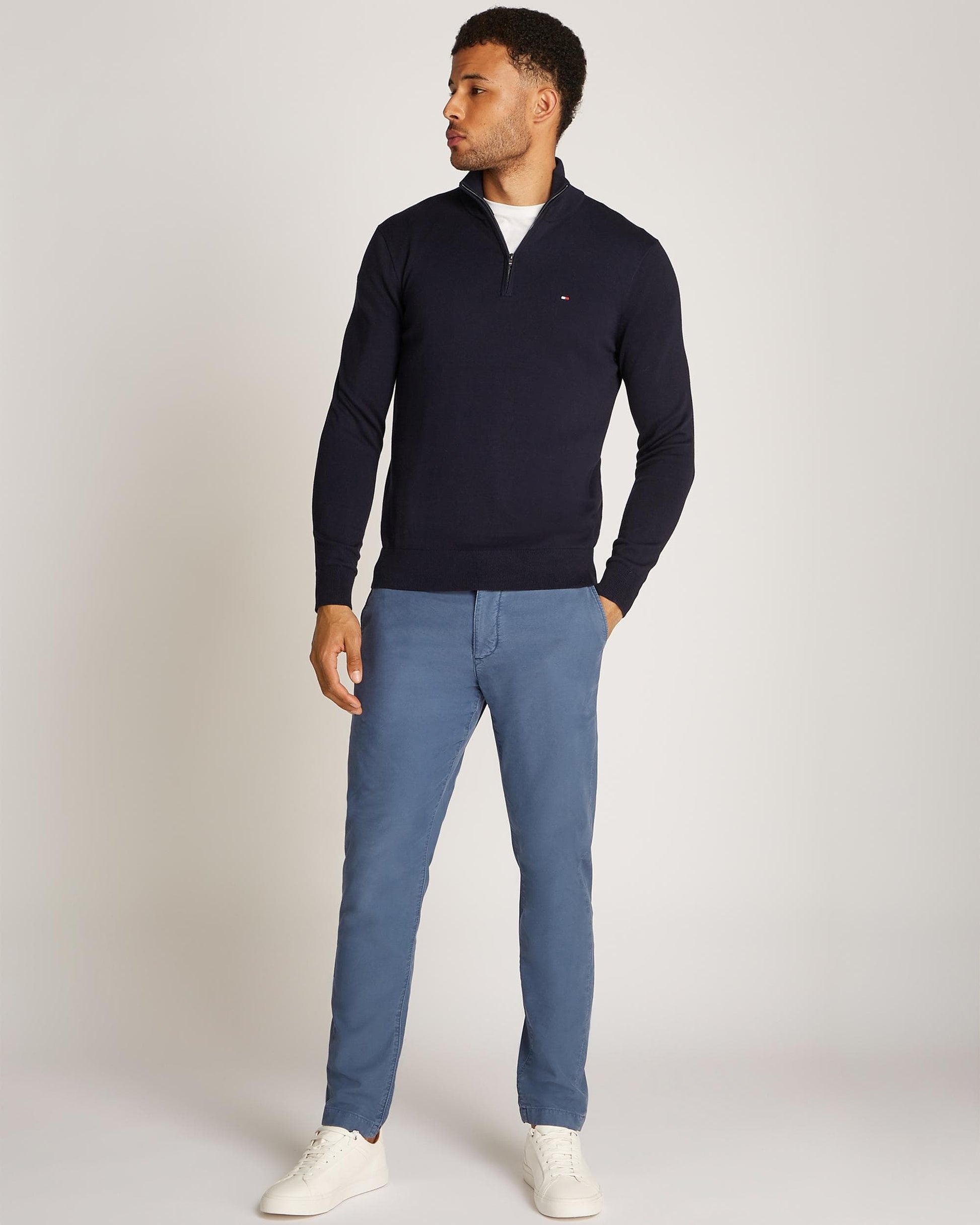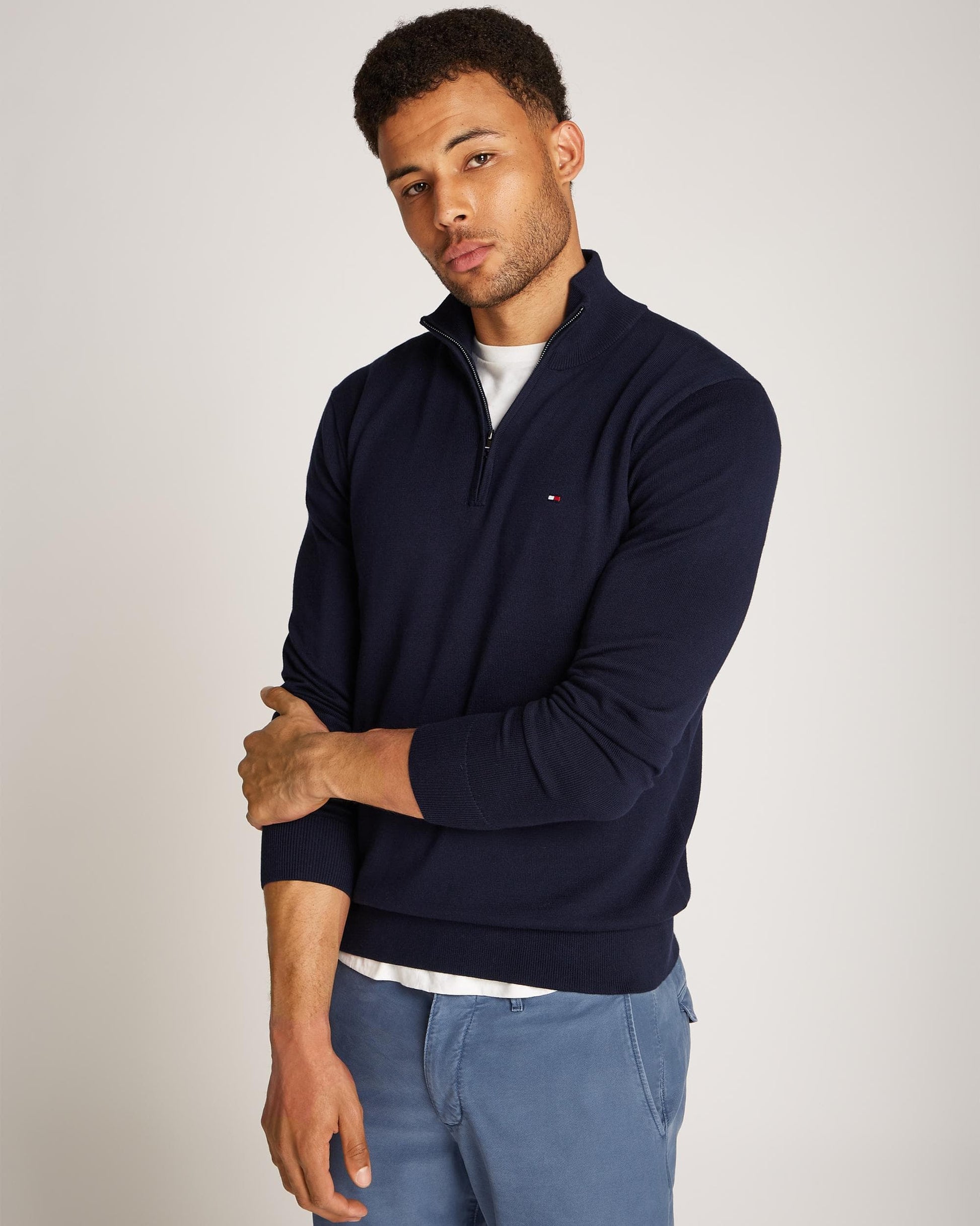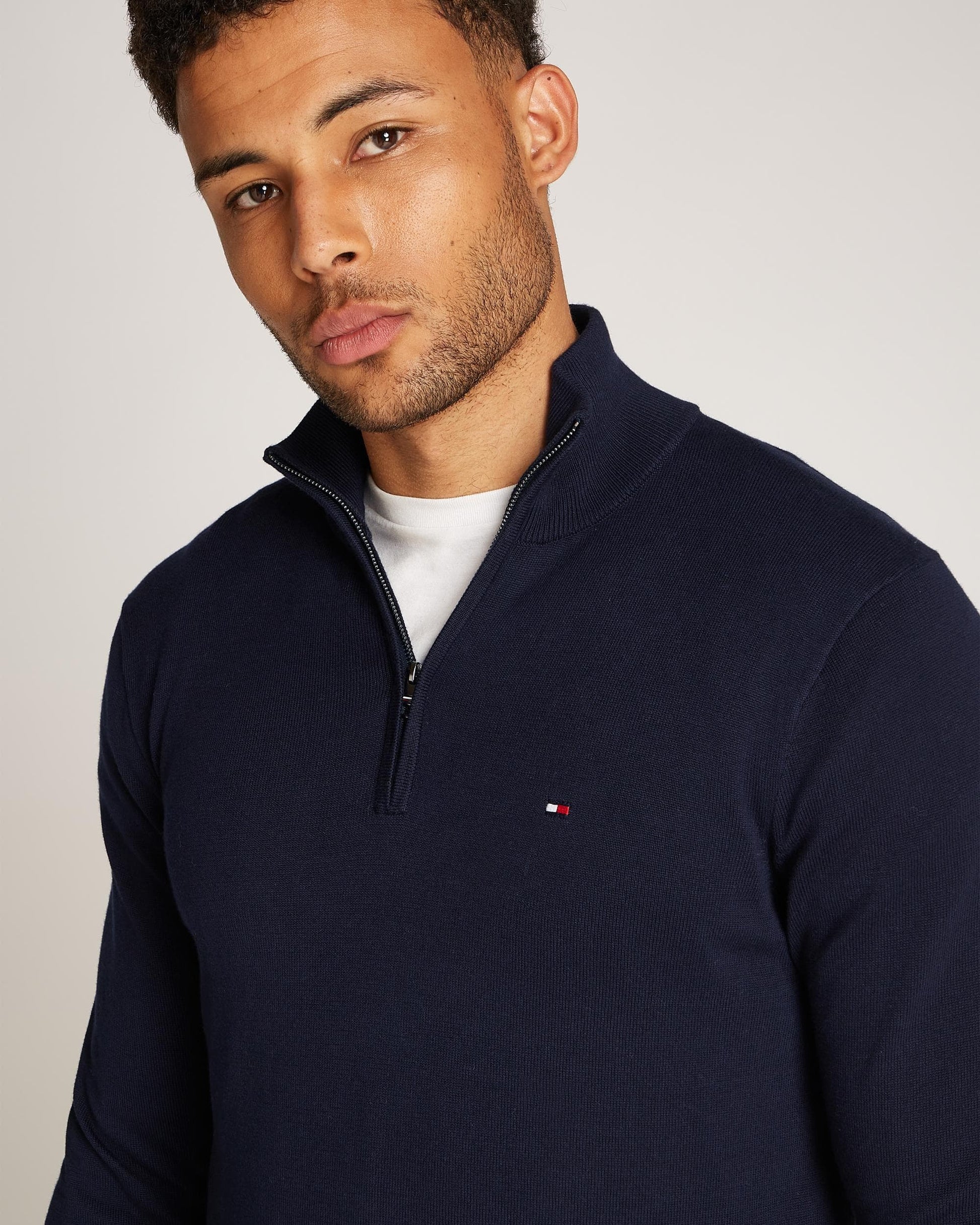 Tommy Hilfiger Essential Cotton 1/4 Zip Mock Mens Sweatshirt in Desert Sky