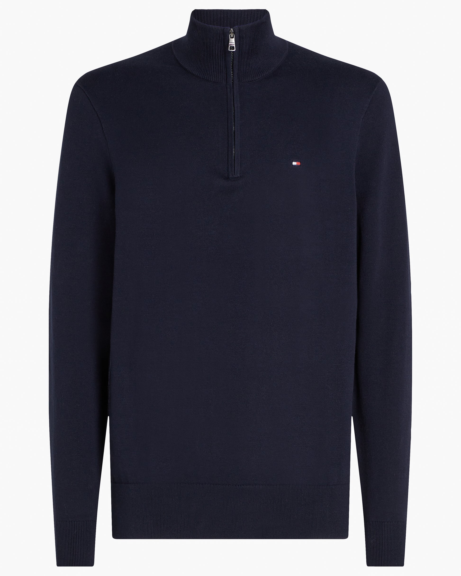Tommy Hilfiger Essential Cotton 1/4 Zip Mock Mens Sweatshirt in Desert Sky