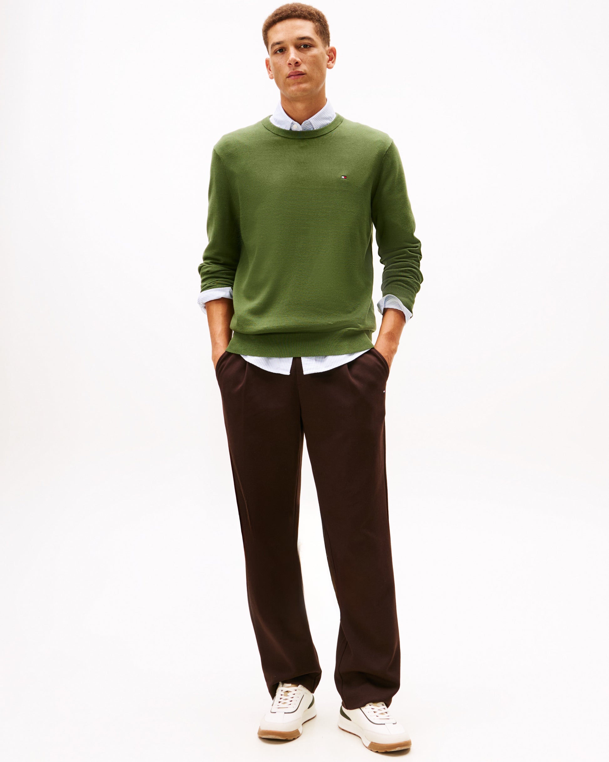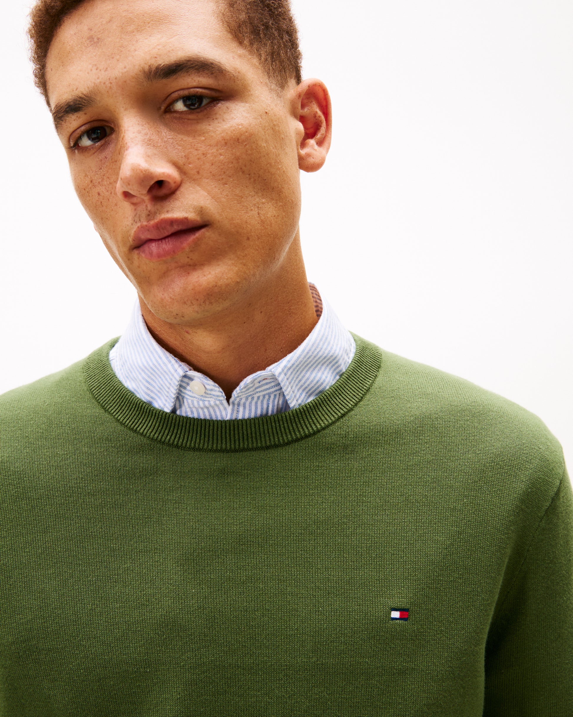 Tommy Hilfiger Essential Cotton Crew Neck Mens Sweatshirt in Mountain Pine