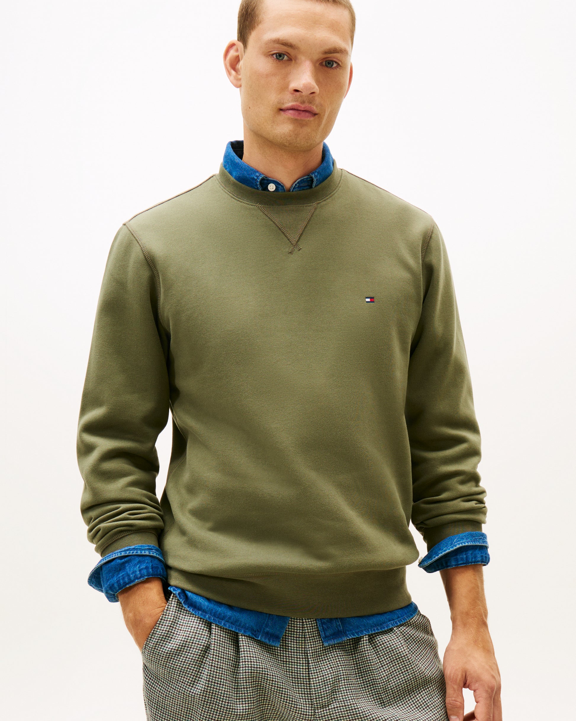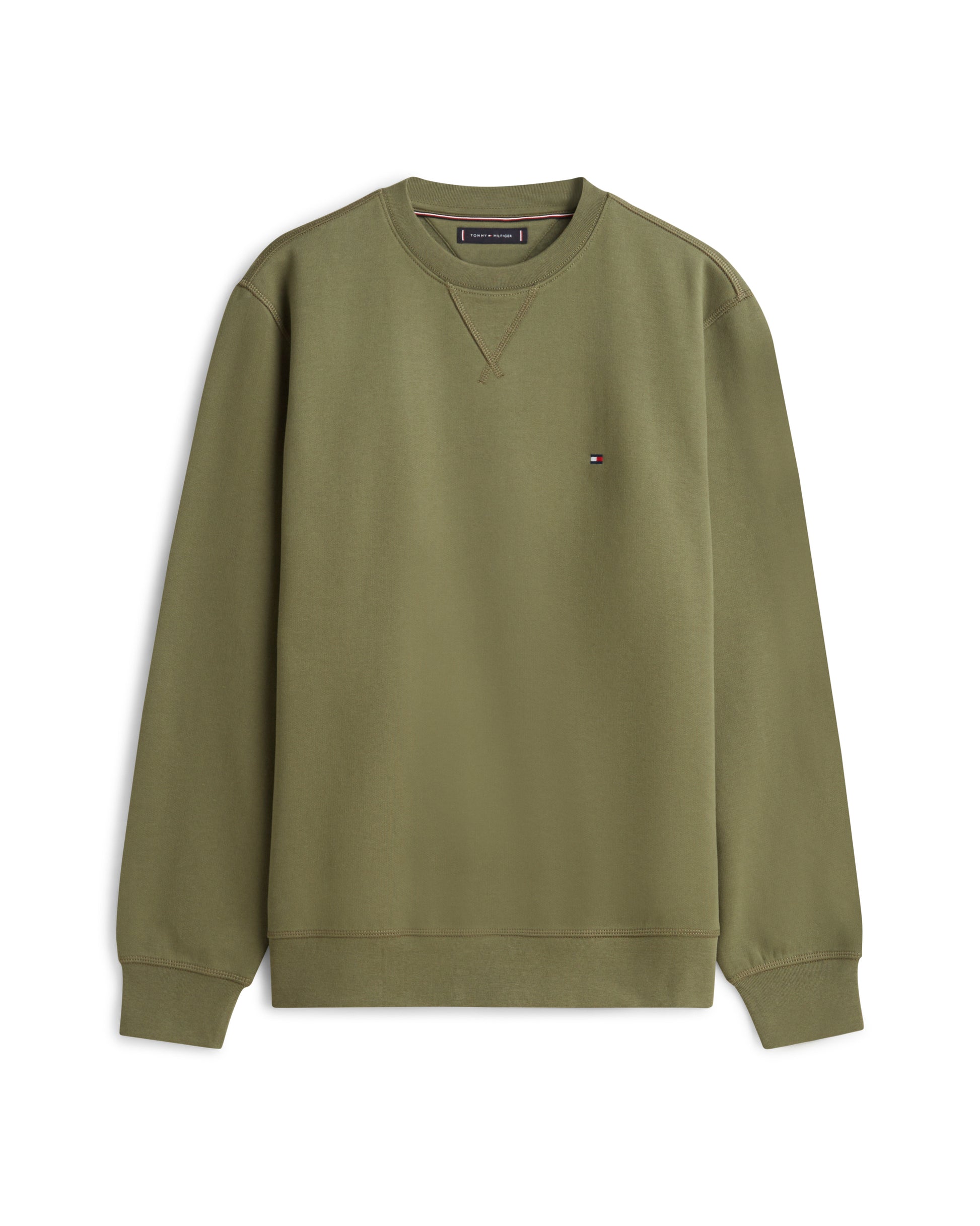 Tommy Hilfiger Essential Flag Embroidery Mens Fleece Crew Sweatshirt in Battle Green