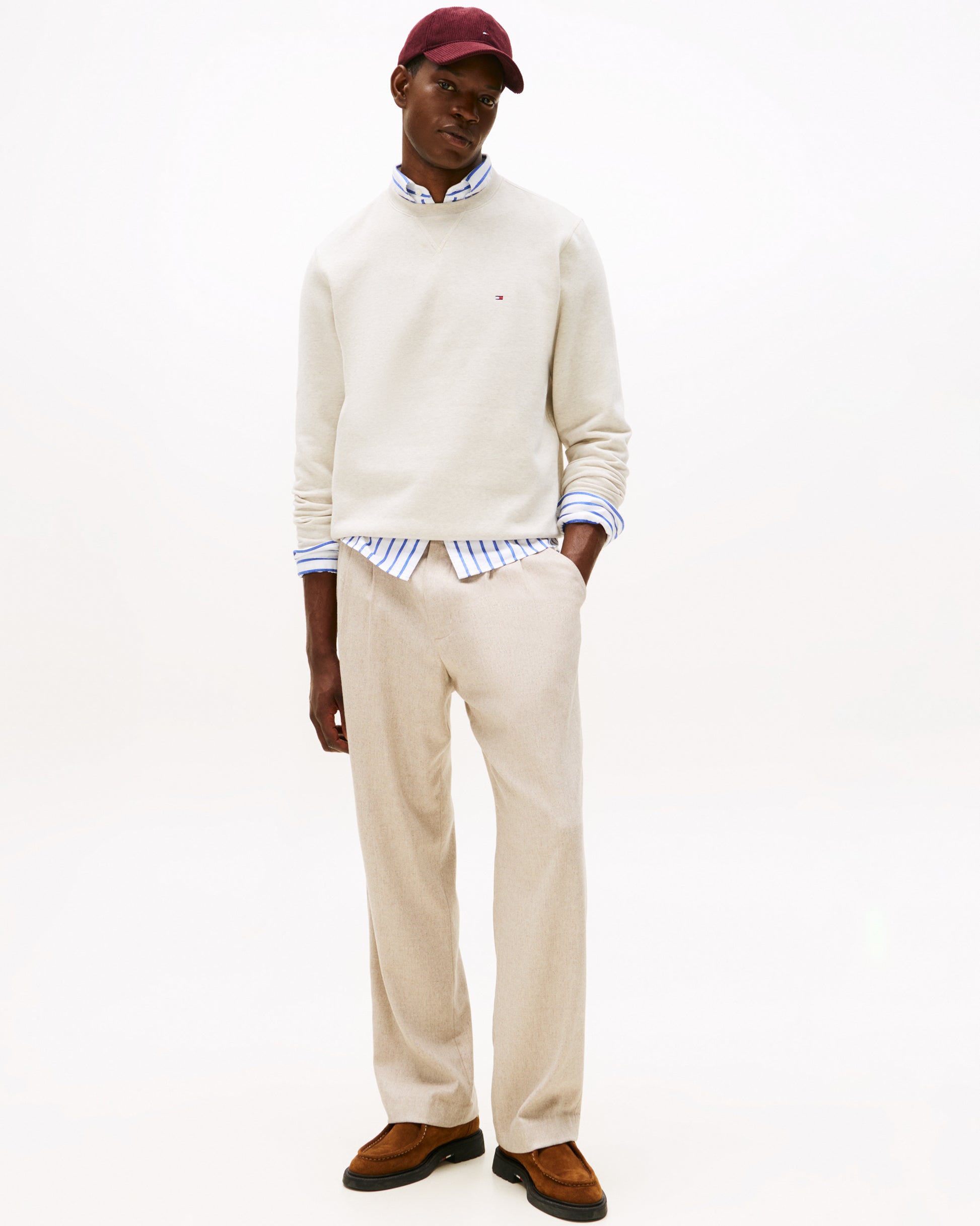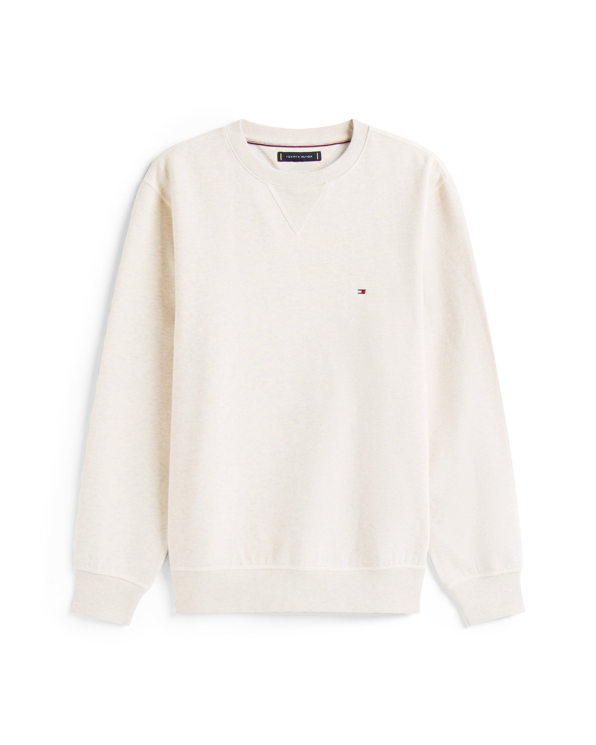 Tommy Hilfiger Essential Flag Embroidery Mens Fleece Crew Sweatshirt in Heathered Oatmilk